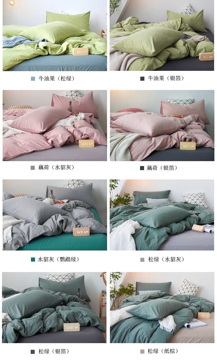 双拼全棉水洗棉纯棉四件套ins简约北欧纯色床笠款套件,双拼白+浅蓝,双拼白+薇薇紫,双拼海蓝+浅蓝,双拼琥珀+鹅黄,双拼焦糖+奶茶,双拼螺旋藻绿+鹅黄,双拼奶茶+鹅黄,双拼牛油果+鹅黄,双拼浅蓝+鹅黄,双拼树莓红+杏仁白,双拼水绿+螺旋藻绿,双拼豌豆青+杏仁白,双拼杏仁白+螺旋藻绿,薇薇紫+杏仁白,浅灰+杏仁白,双拼藏青+浅灰,双拼花青灰+浅灰,双拼霁色+浅灰
