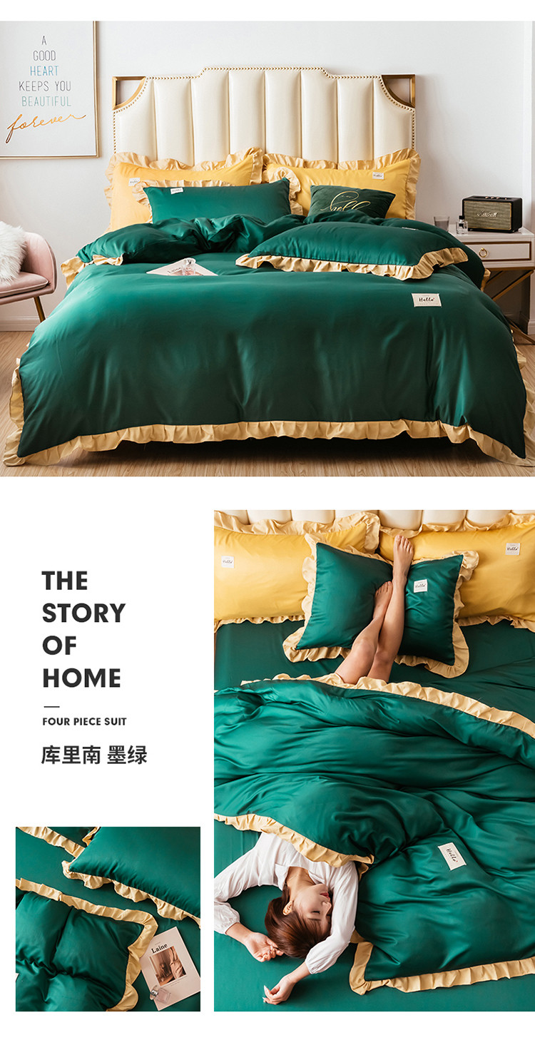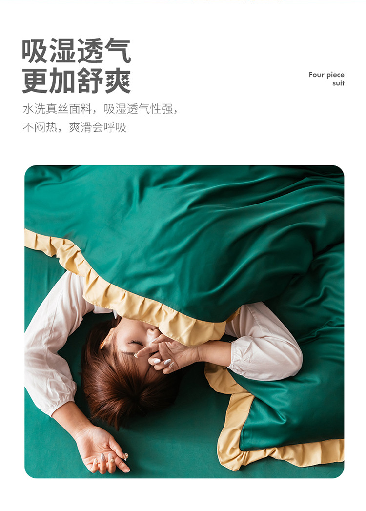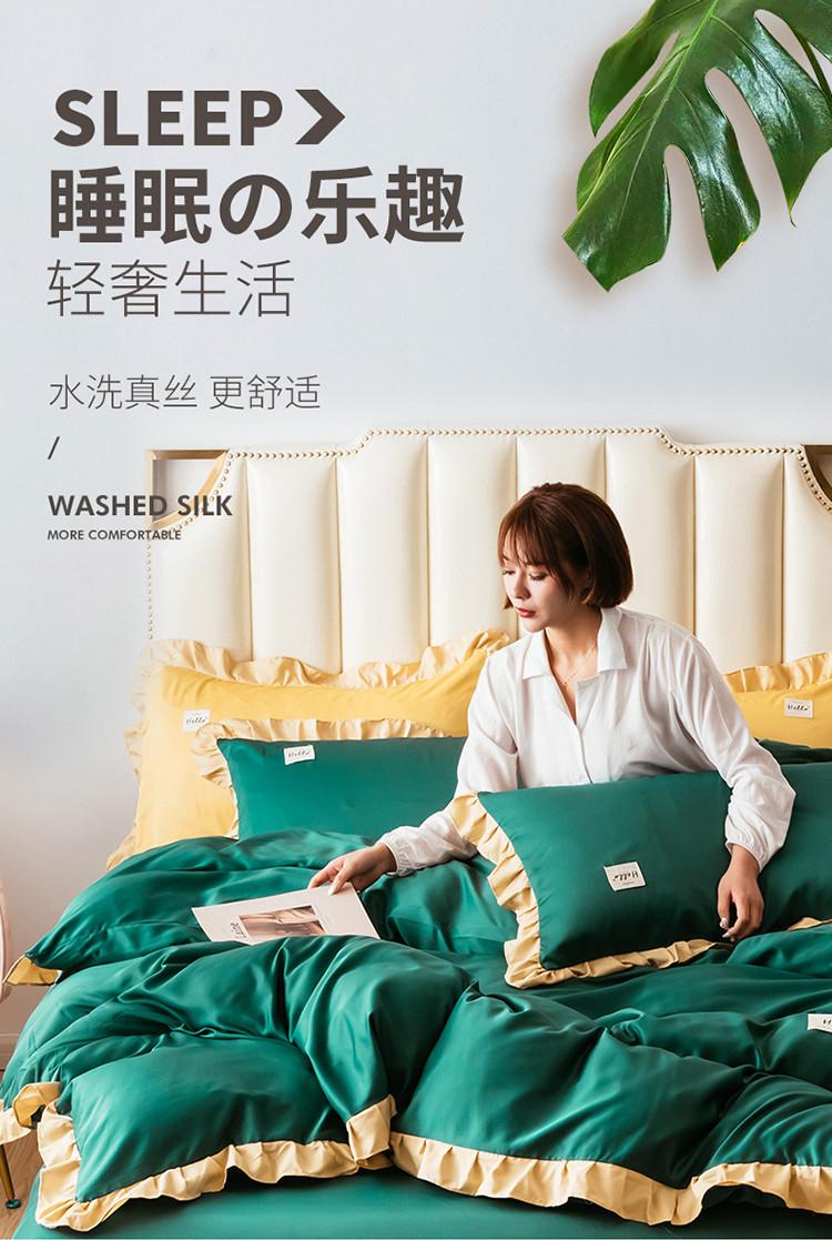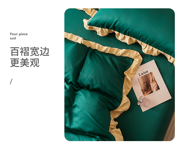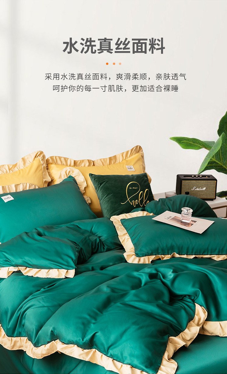 商品名称:芃成 2020新款水洗真丝库里南花边四件套 库里南-墨绿