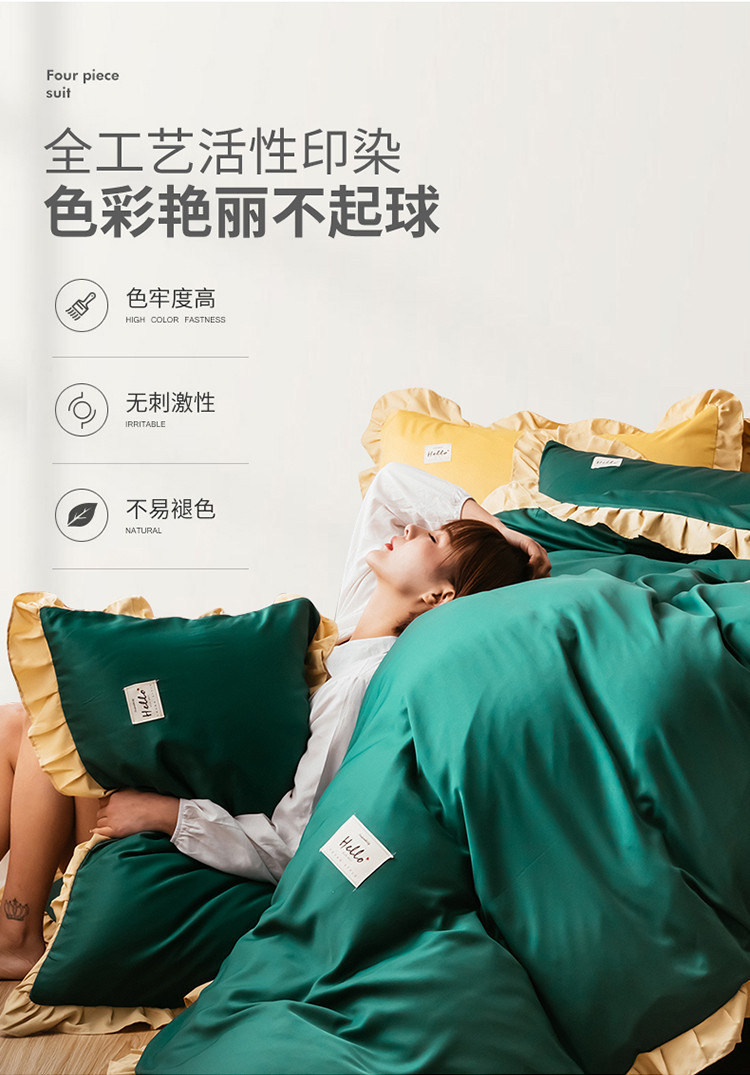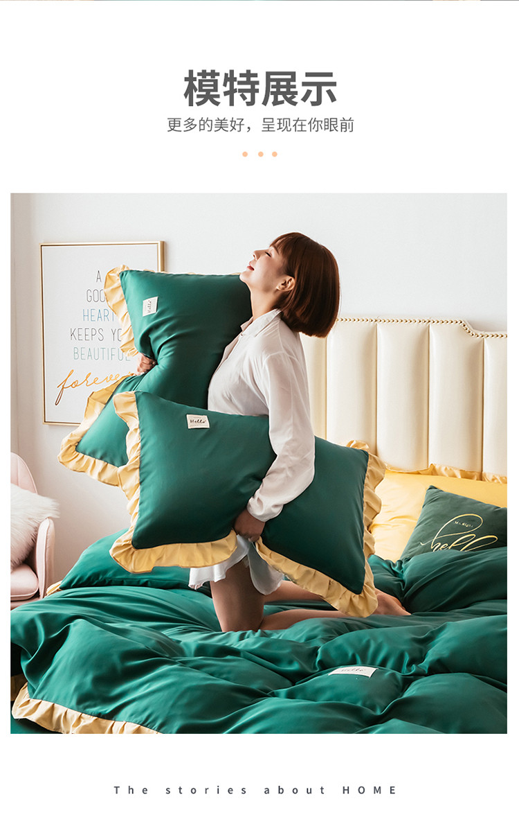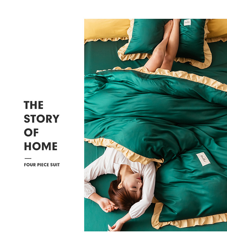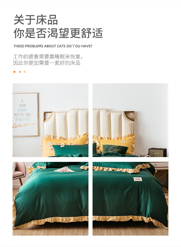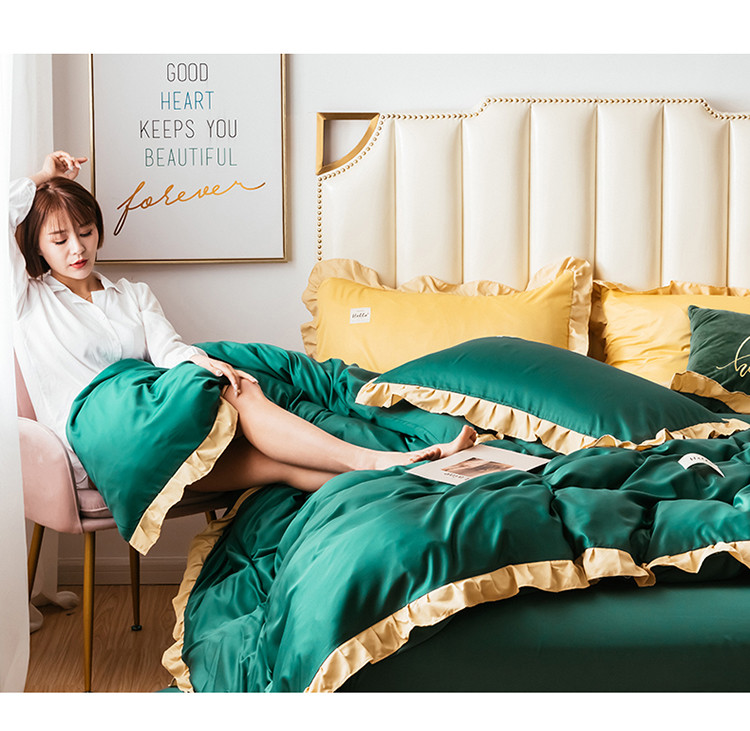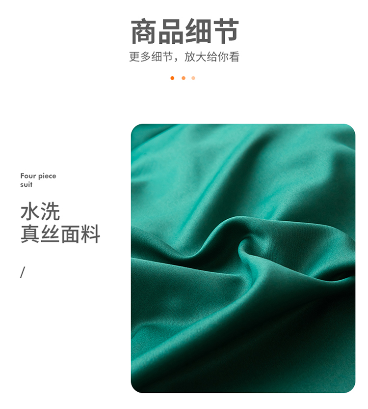 商品名称:芃成 2020新款水洗真丝库里南花边四件套 库里南-墨绿