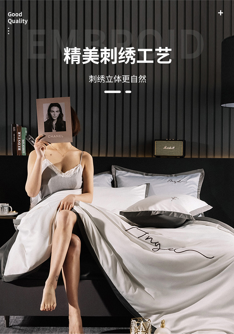 (总)芃成 2020新款水洗真丝天使宽边绣花四件套
