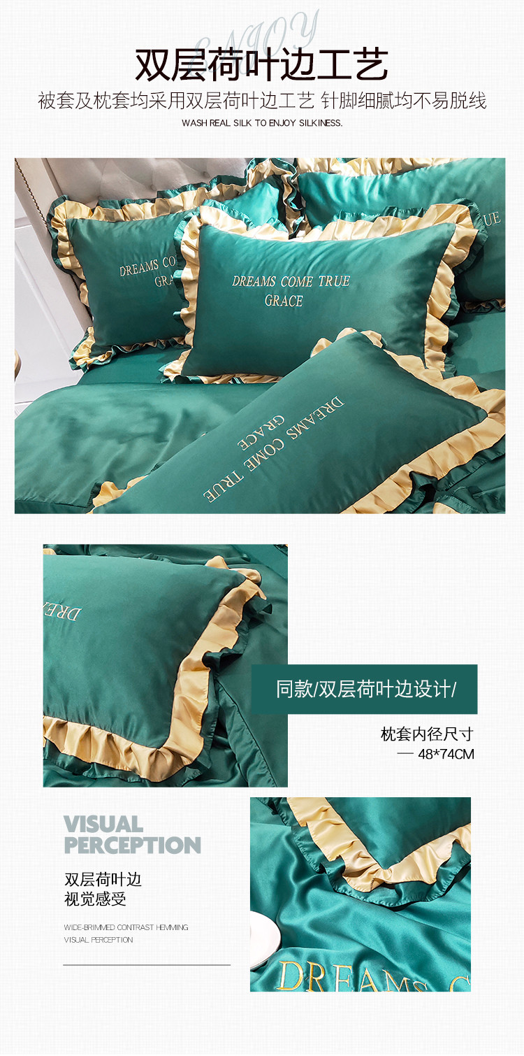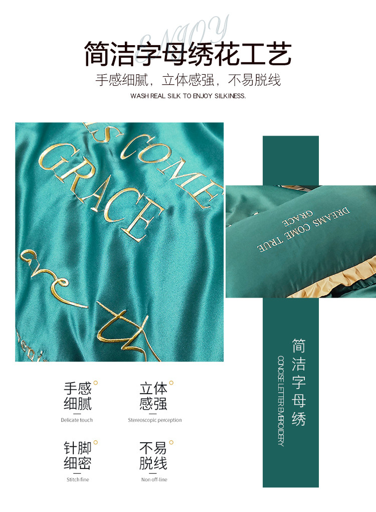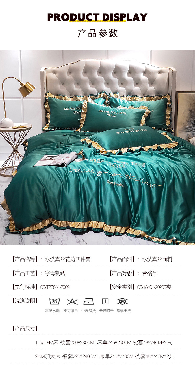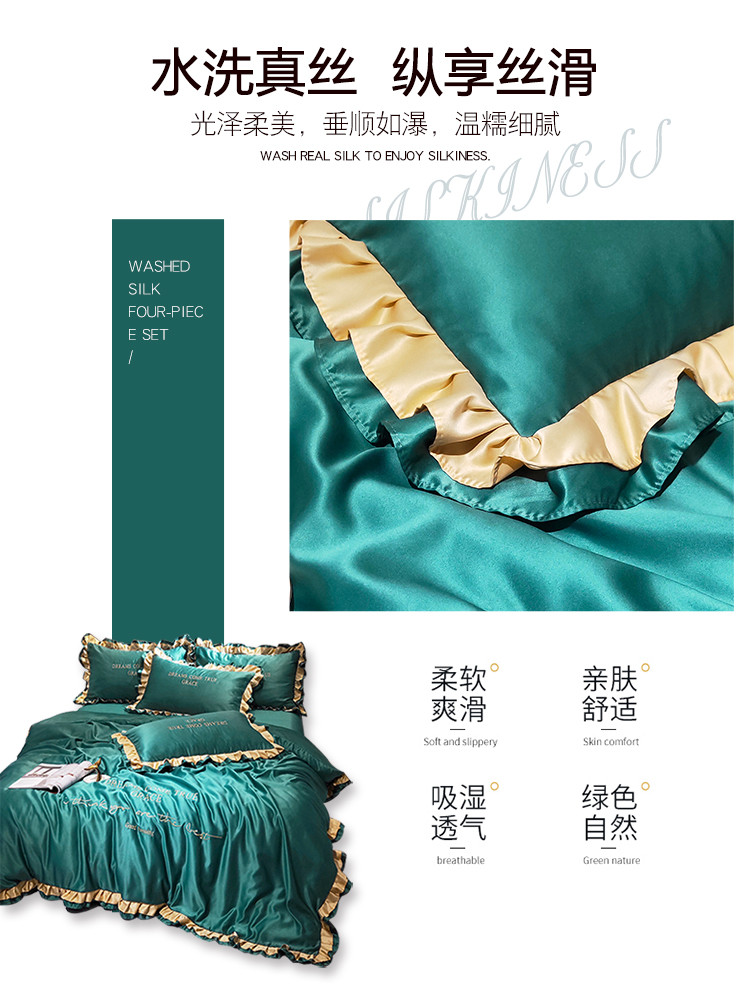 商品名称:米奈 2020新品水洗真丝四件套诺曼系列 墨绿