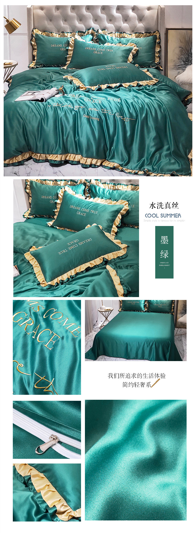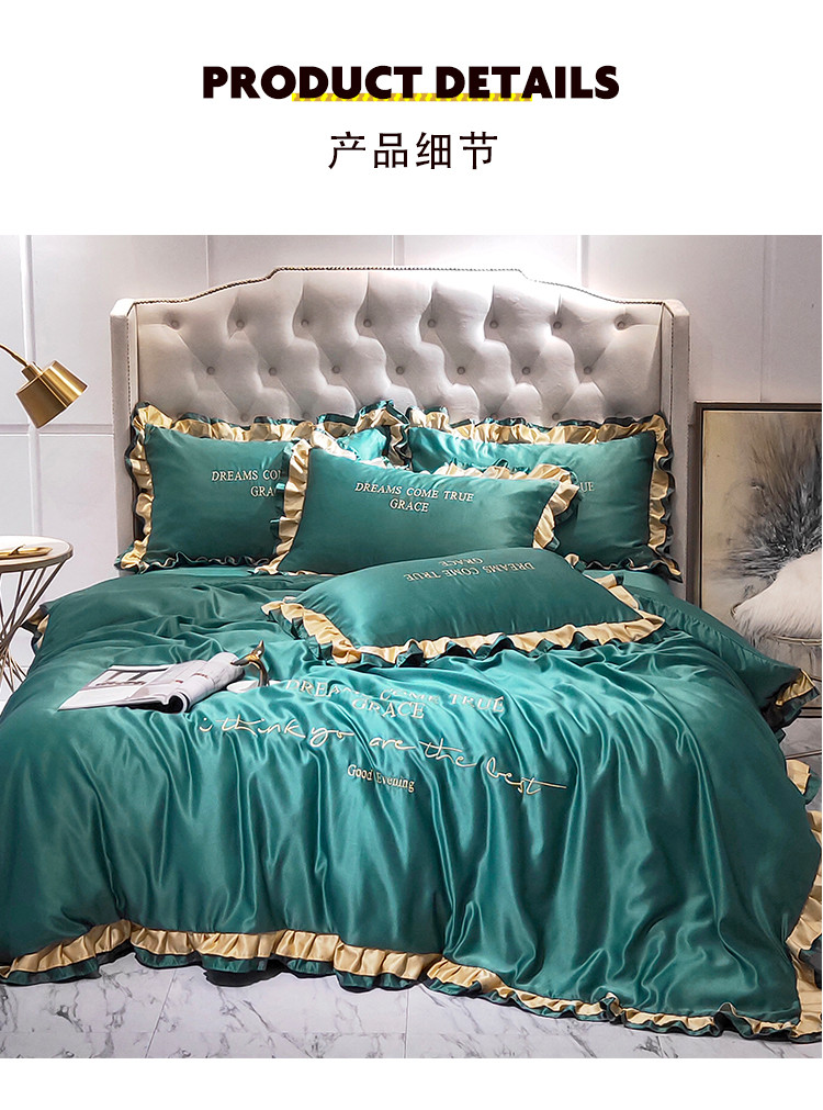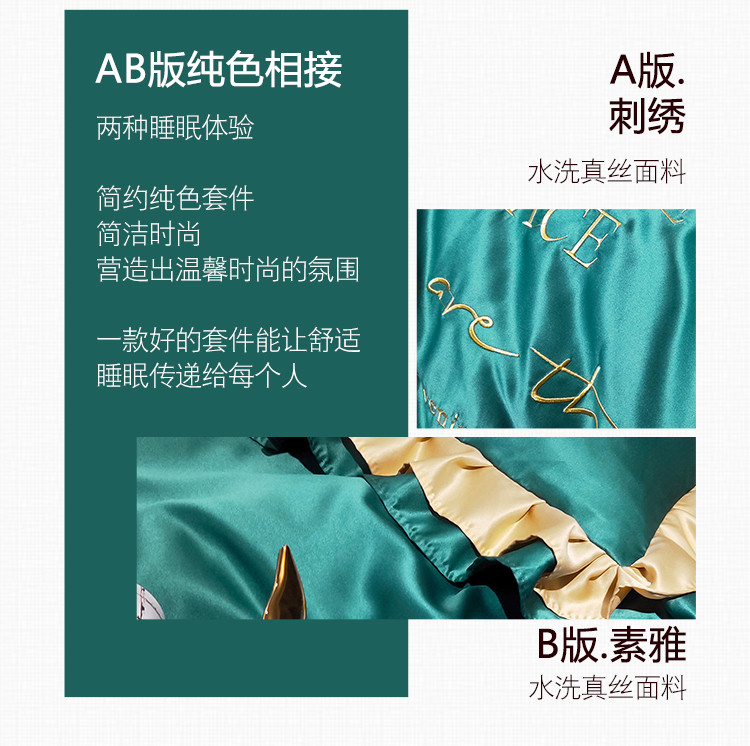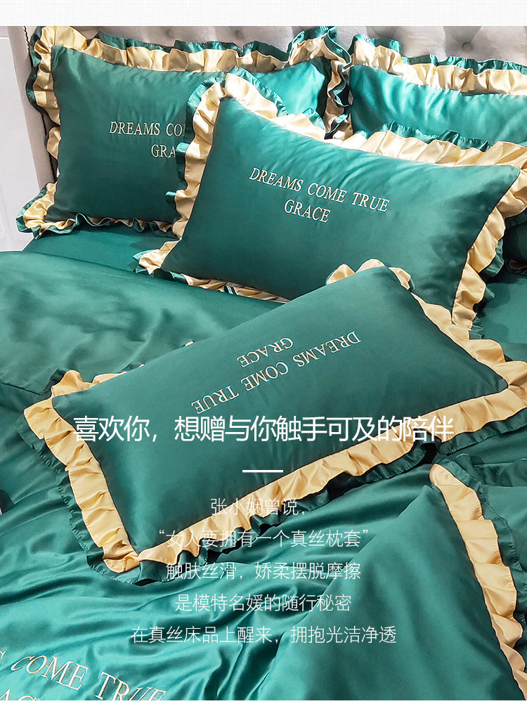 商品名称:米奈 2020新品水洗真丝四件套诺曼系列 墨绿