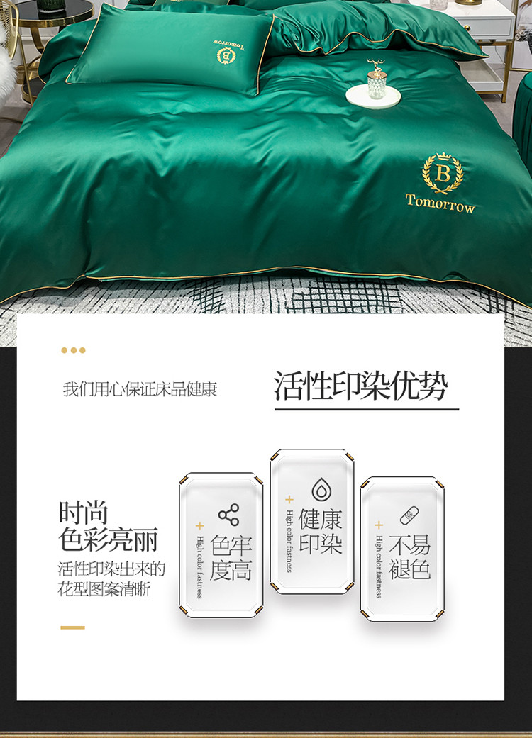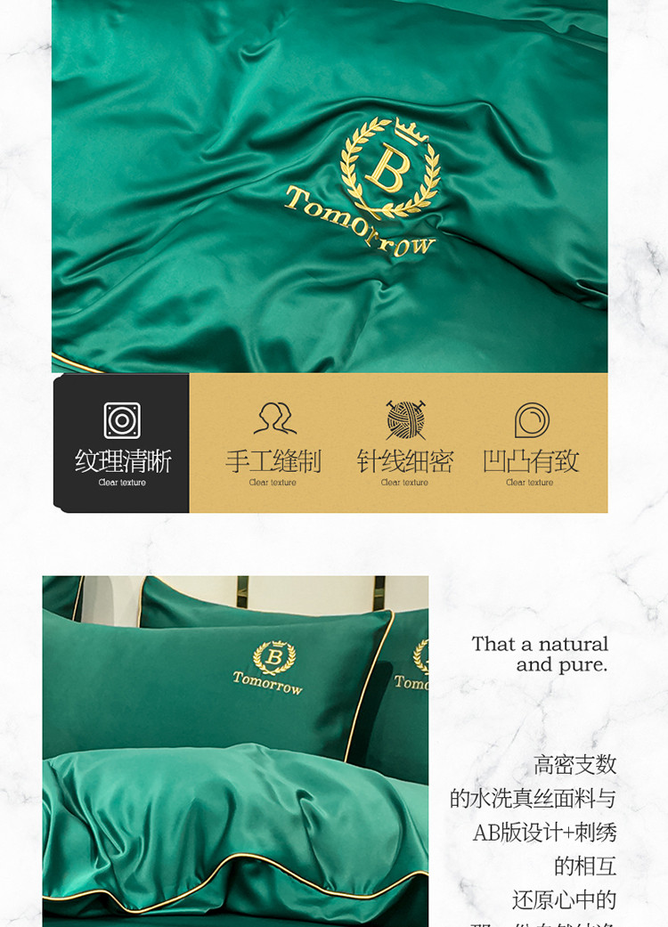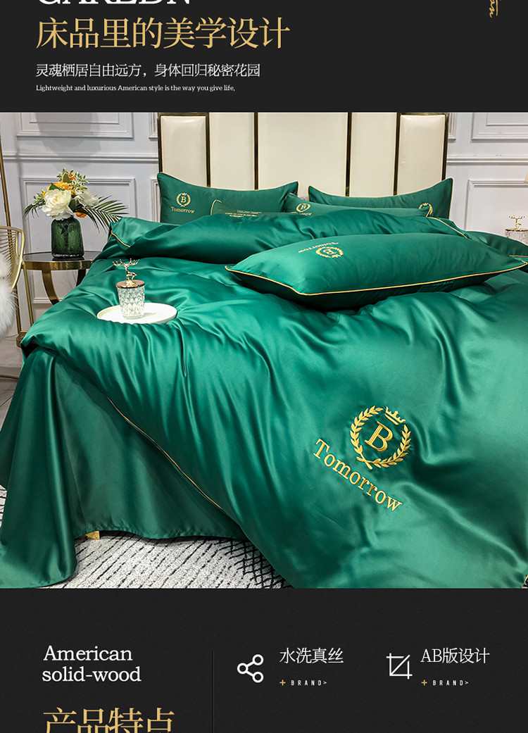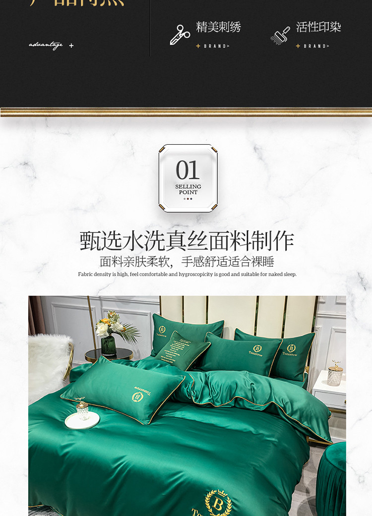 商品名称:琪格格 2022新款水洗真丝刺绣四件套 A新都市魅惑绿