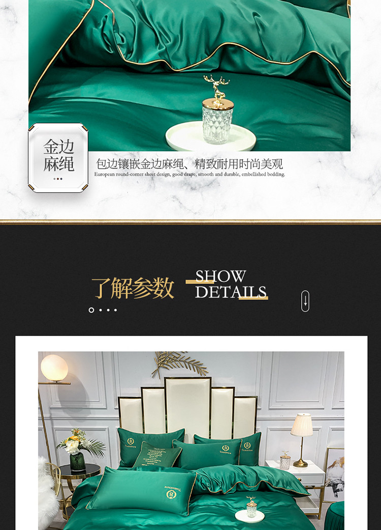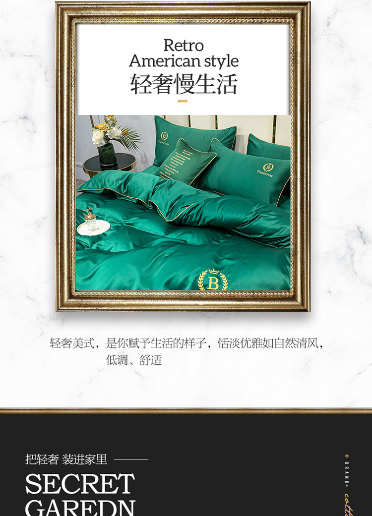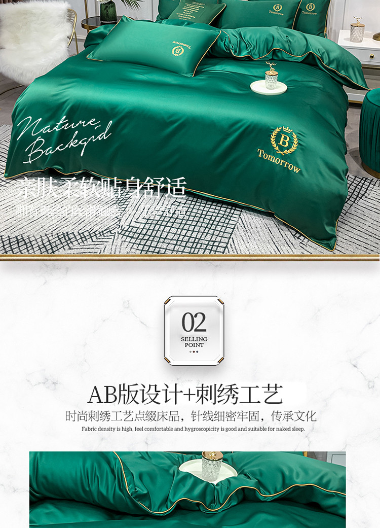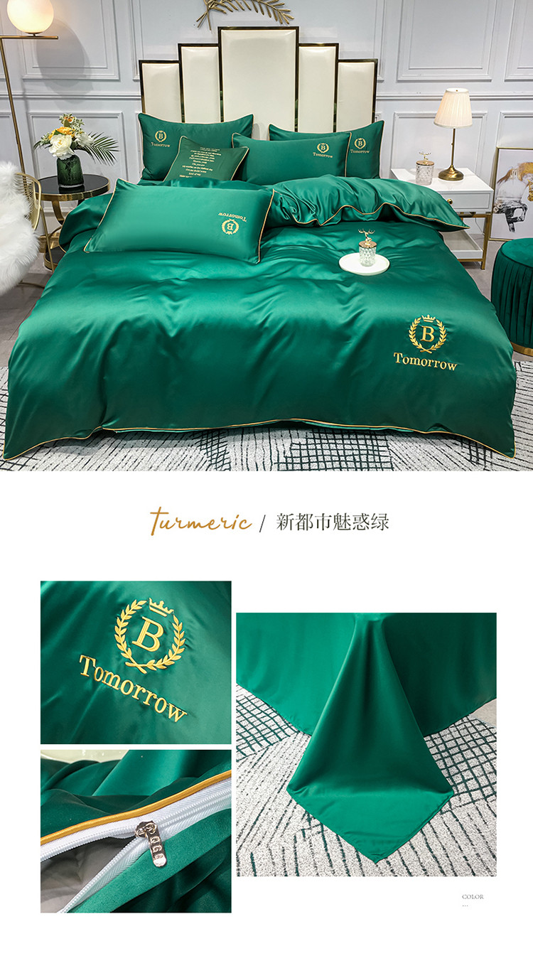 商品名称:琪格格 2022新款水洗真丝刺绣四件套 A新都市魅惑绿