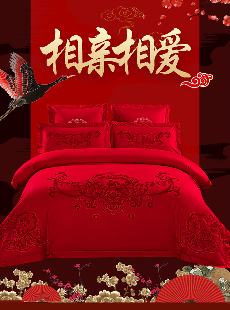 皇潮婚庆馆2021新款全棉贴绒绣婚庆四件套多件套相亲相爱