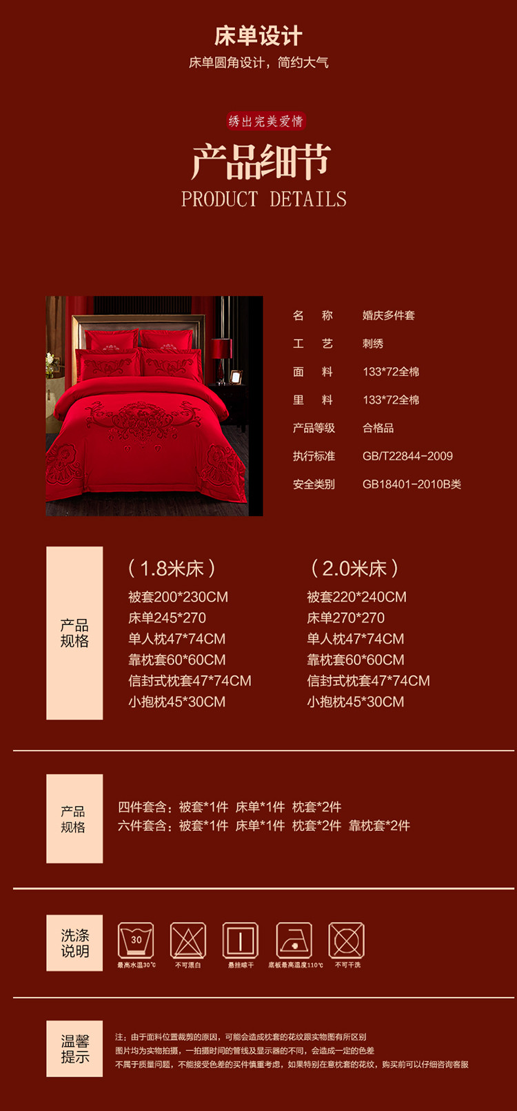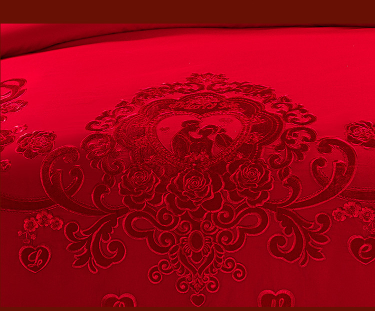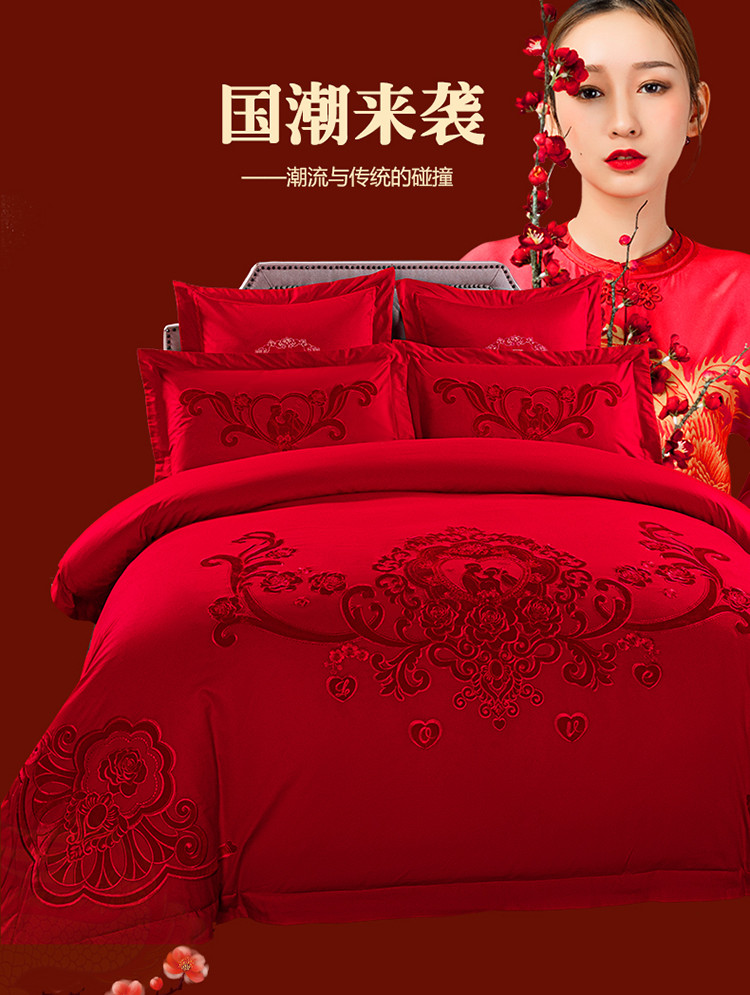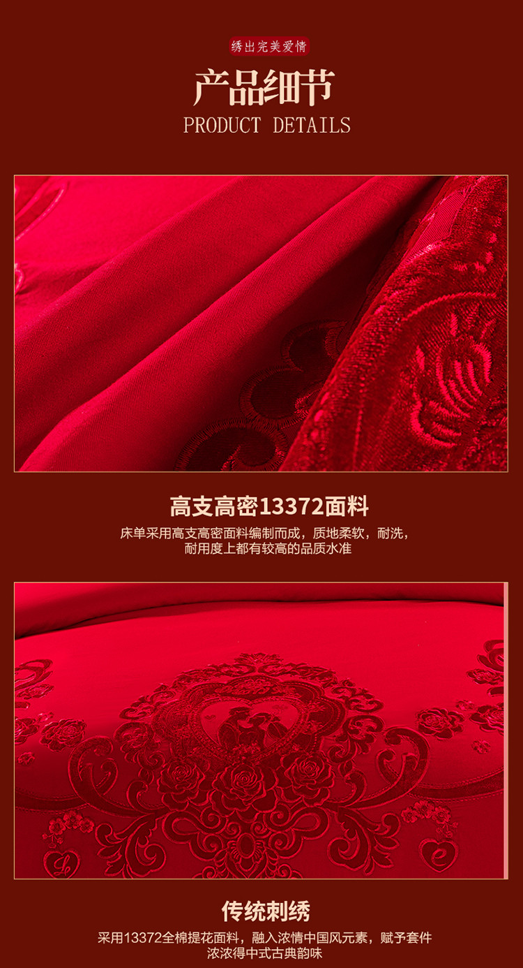 商品名称:皇潮婚庆馆2021新款全棉贴绒绣婚庆四件套多件套相亲相爱
