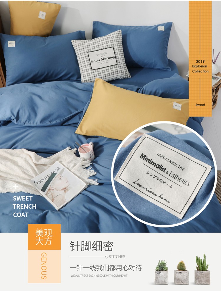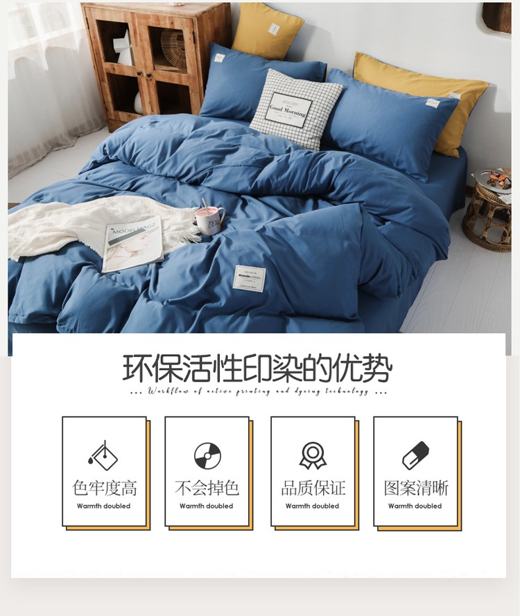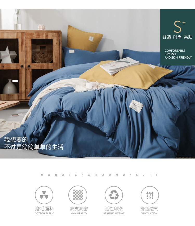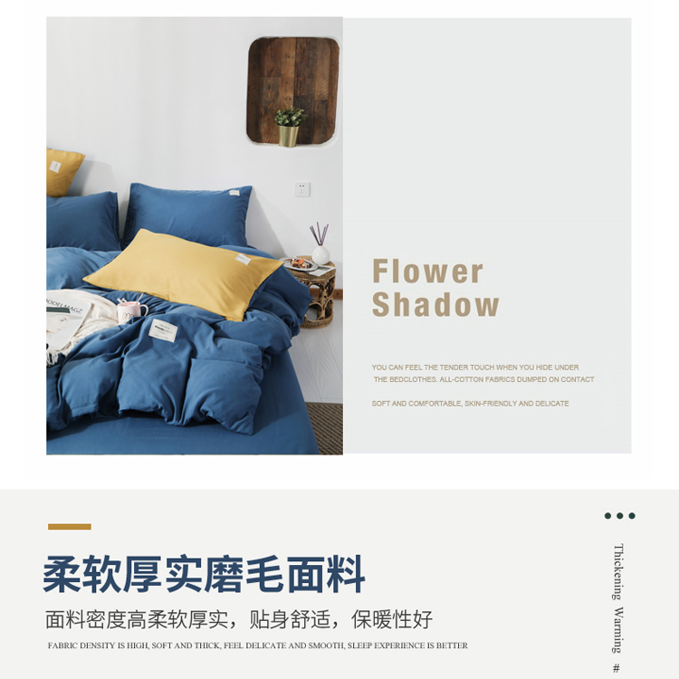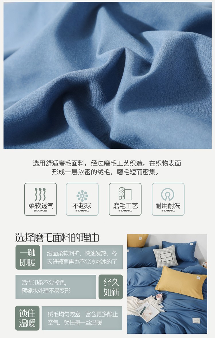 商品名称:米粒 2020新款纯色磨毛四件套 宝蓝