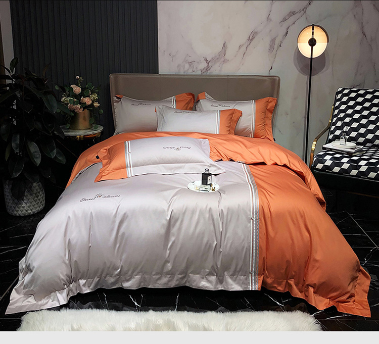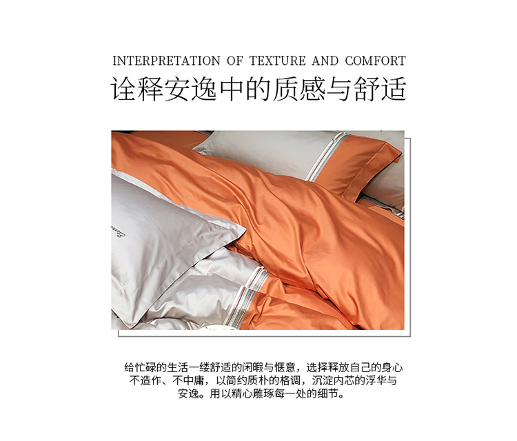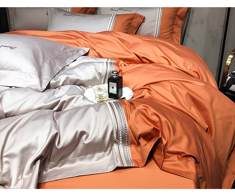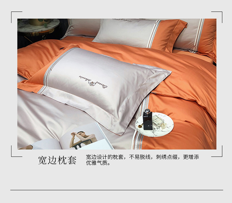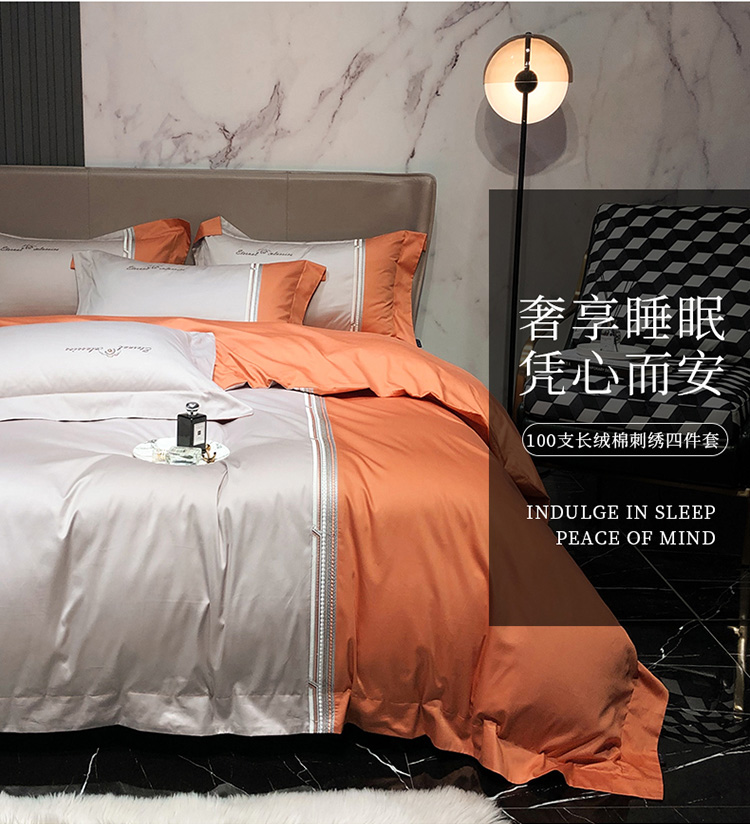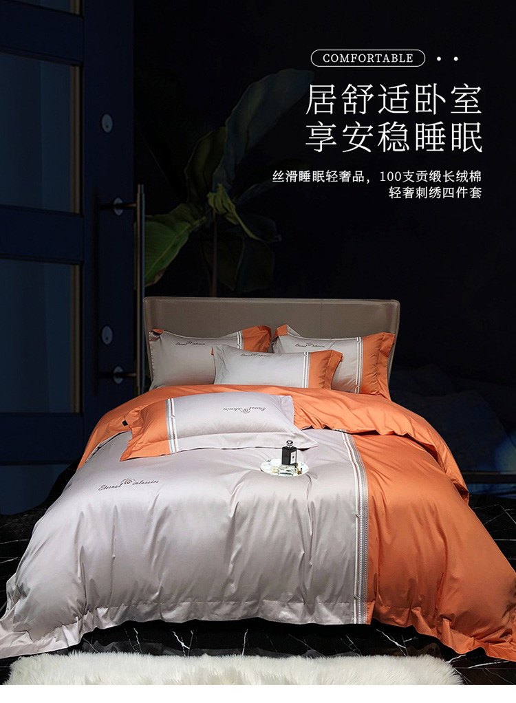 商品名称:爱缦 2020新款100支长绒棉橘彩四件套 爱马橙-魔法灰