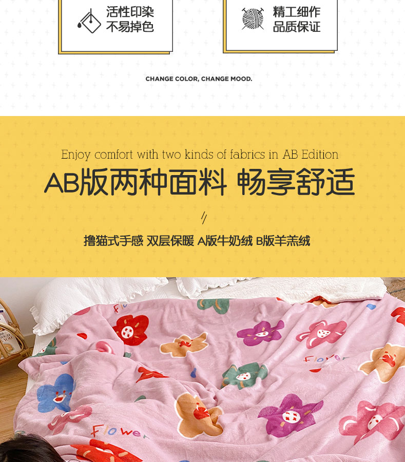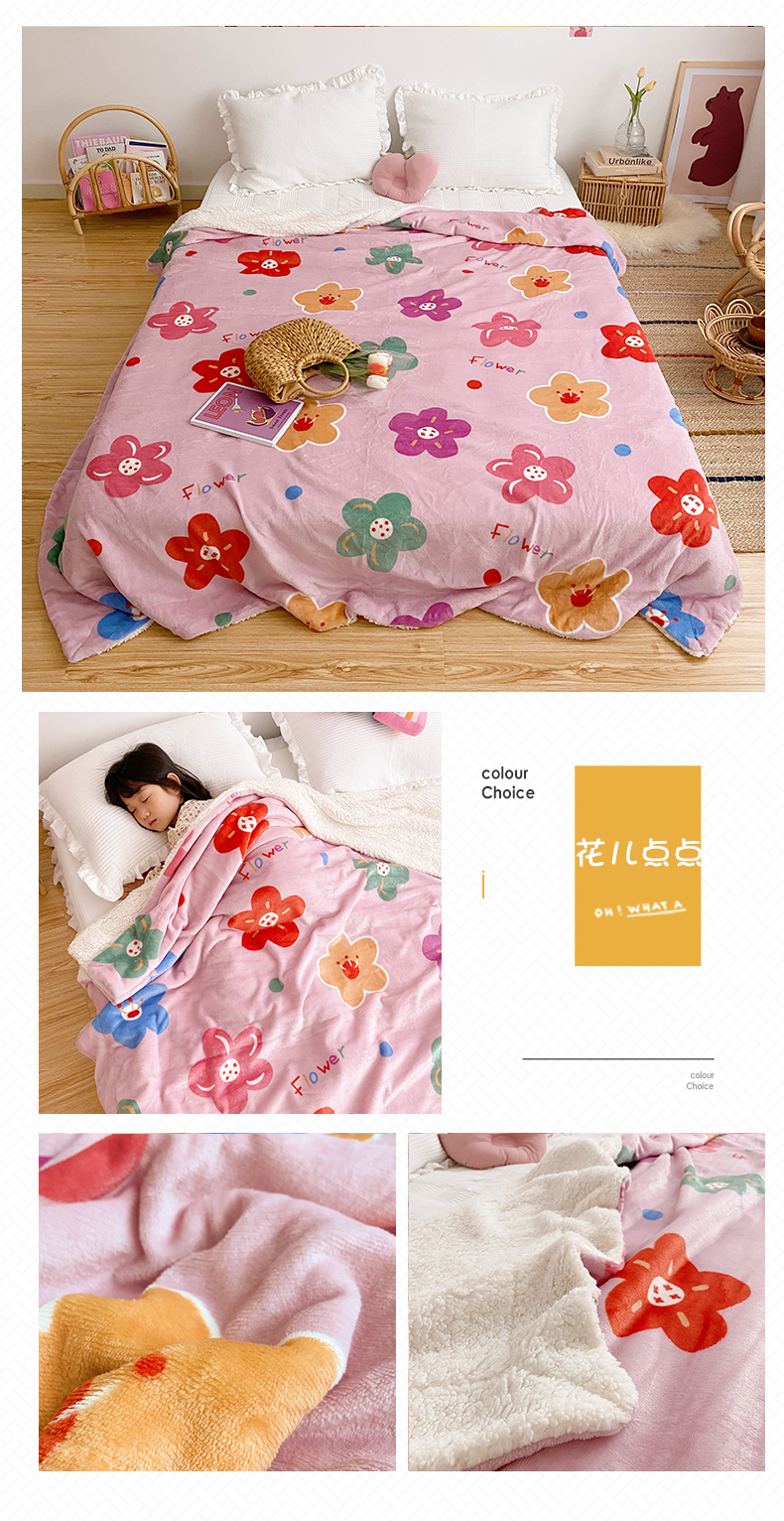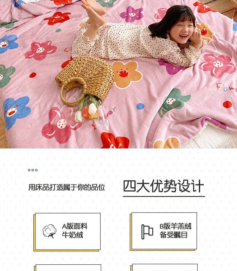 商品名称:川悦生活2020新款羊羔绒毯子卡通亲肤牛奶绒毛毯 花儿点点