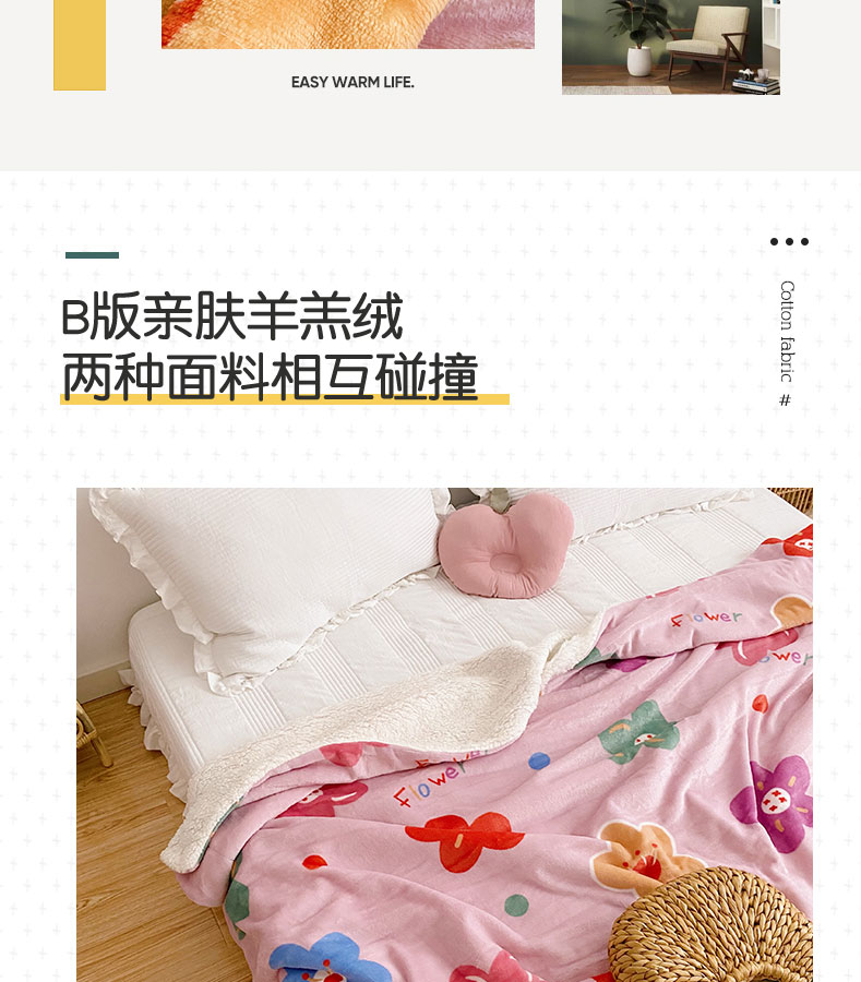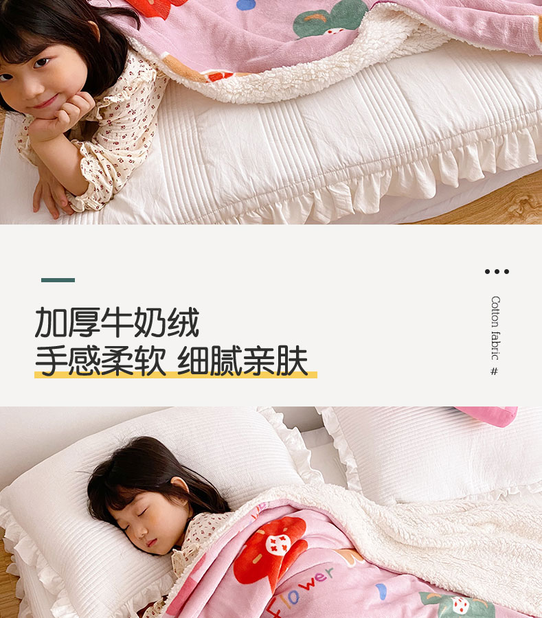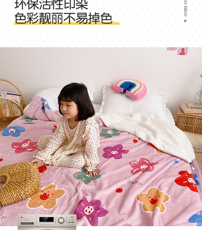 川悦生活2020新款羊羔绒毯子卡通亲肤牛奶绒毛毯 花儿点点