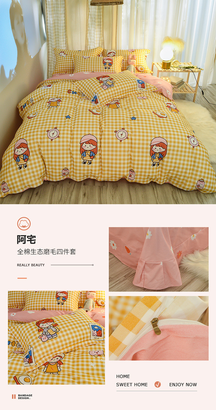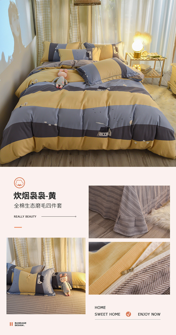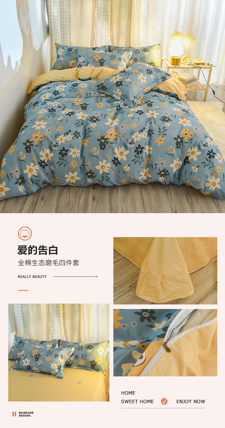 (总)雲归梦 2020新款小清新全棉生态磨毛四件套