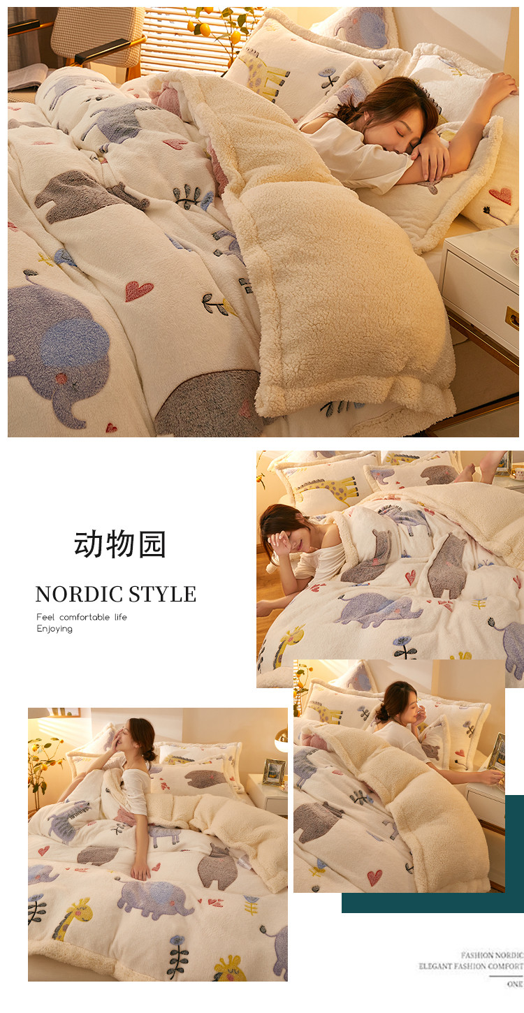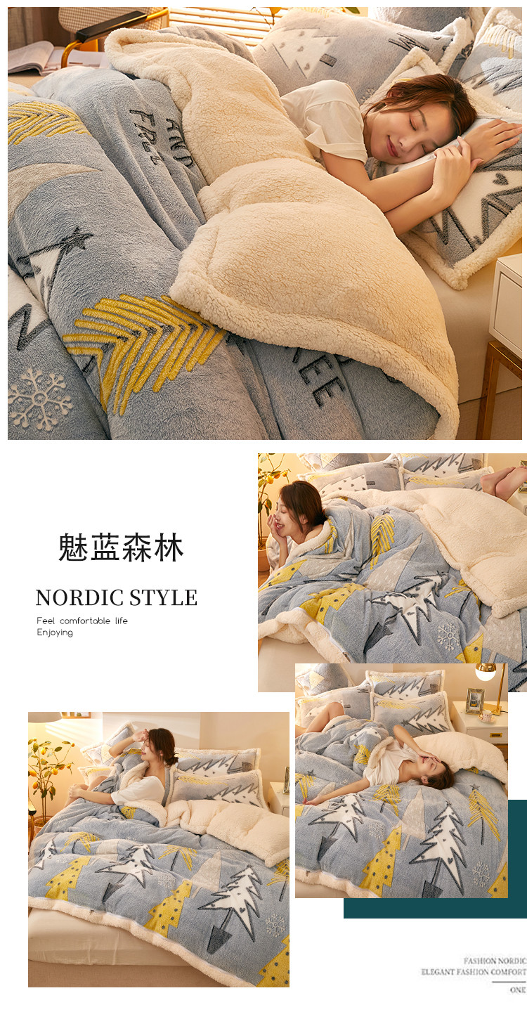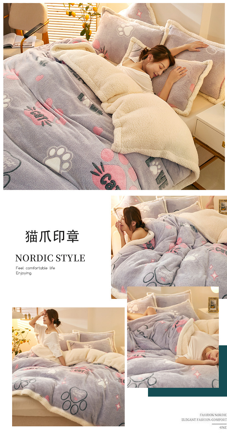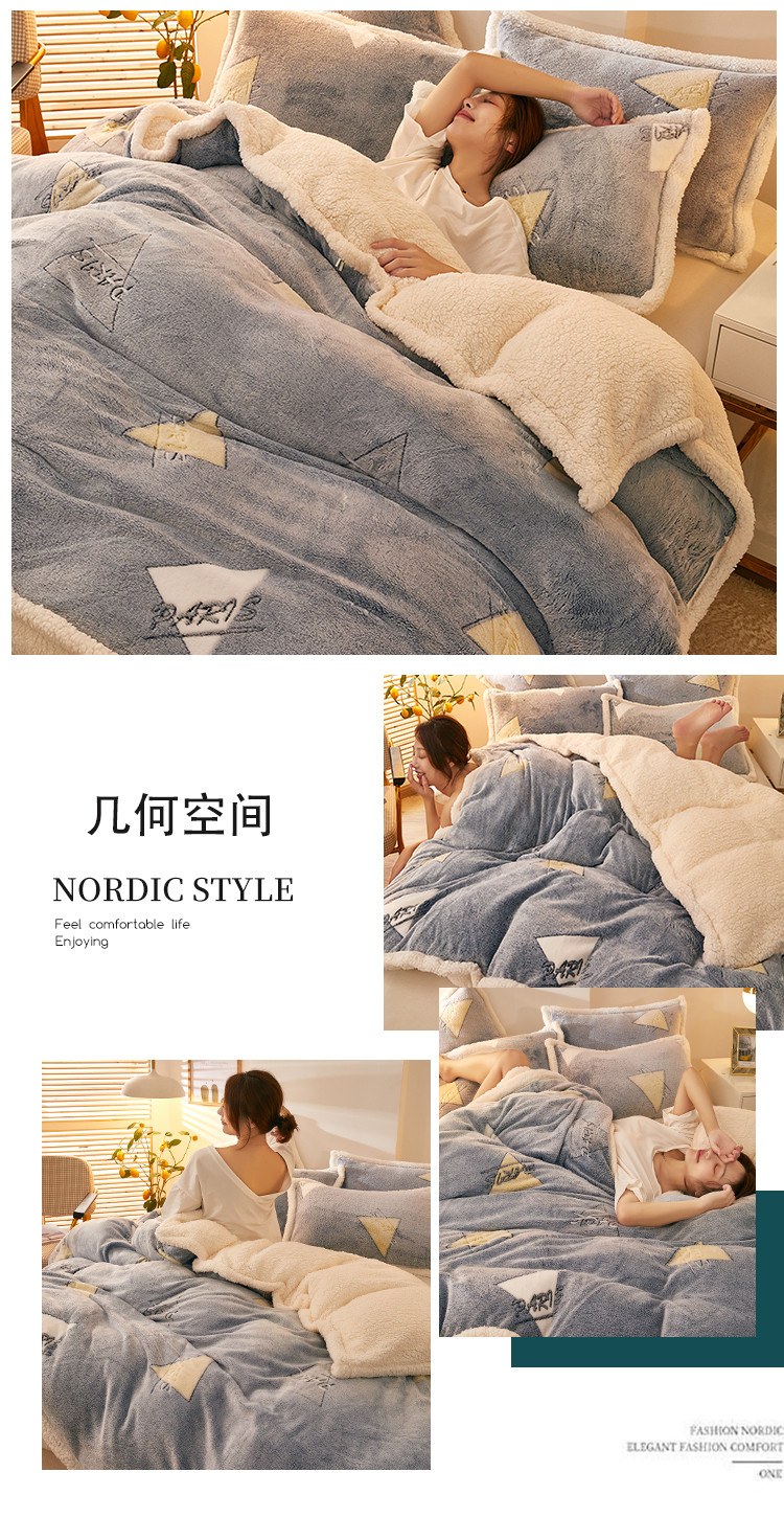 (总)网客家纺 2025新款羊毛绒牛奶绒夹棉床盖四件套,豹点-深灰,简格-黑色,简格-咖色,空间-红色,泥点-灰色,泥点-咖色,维奥-灰色,斜格-灰色,斜格-墨绿