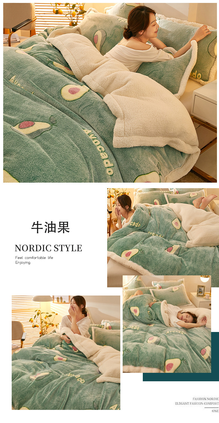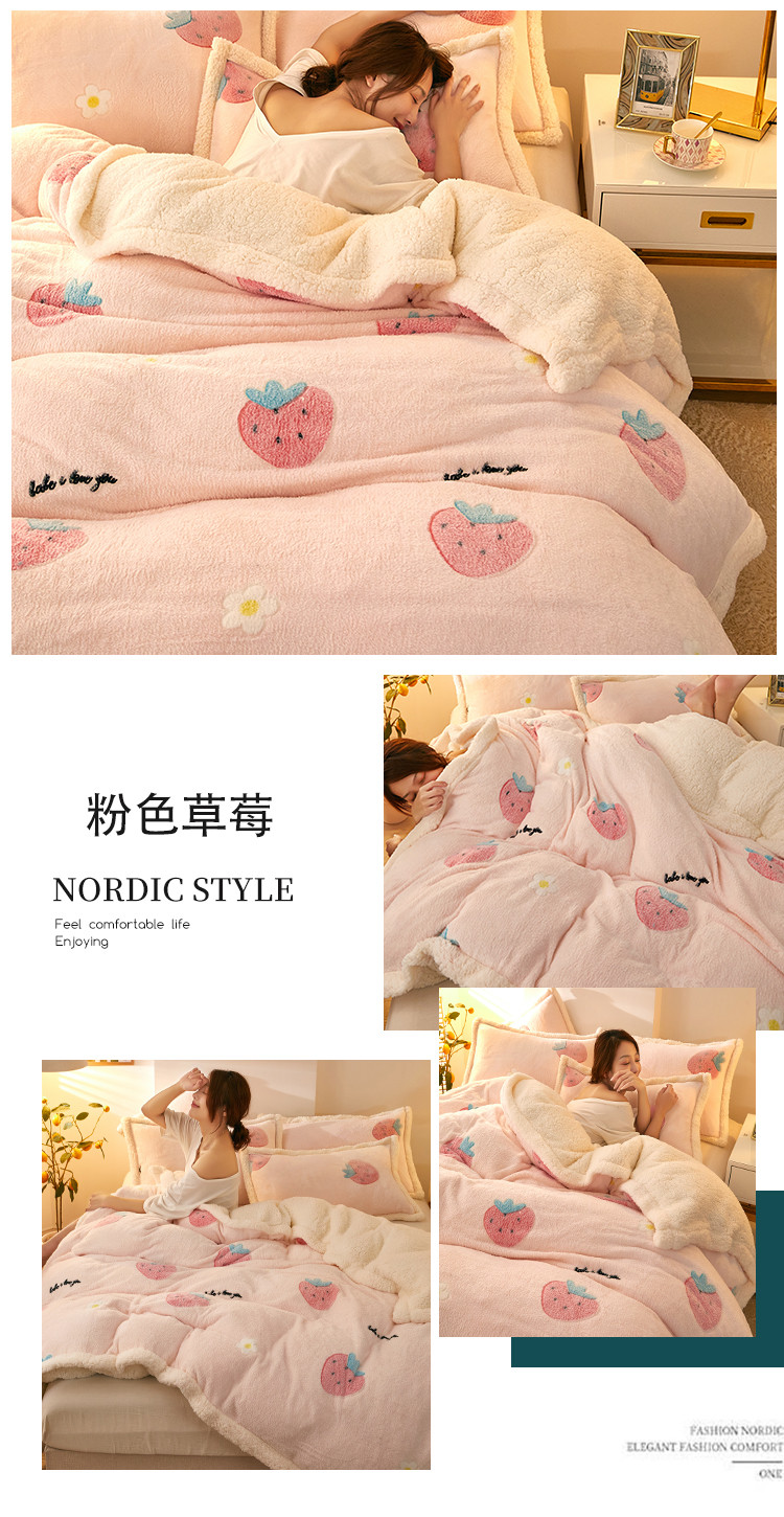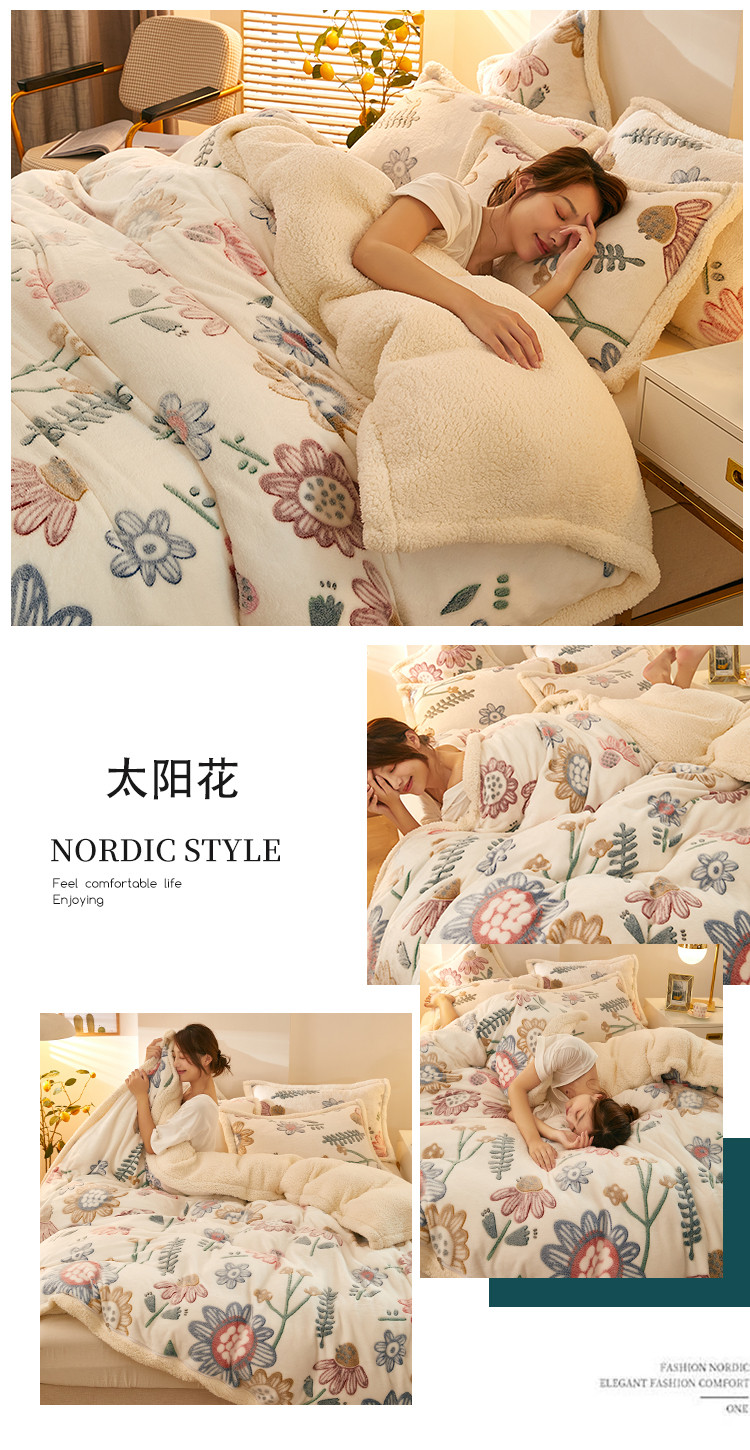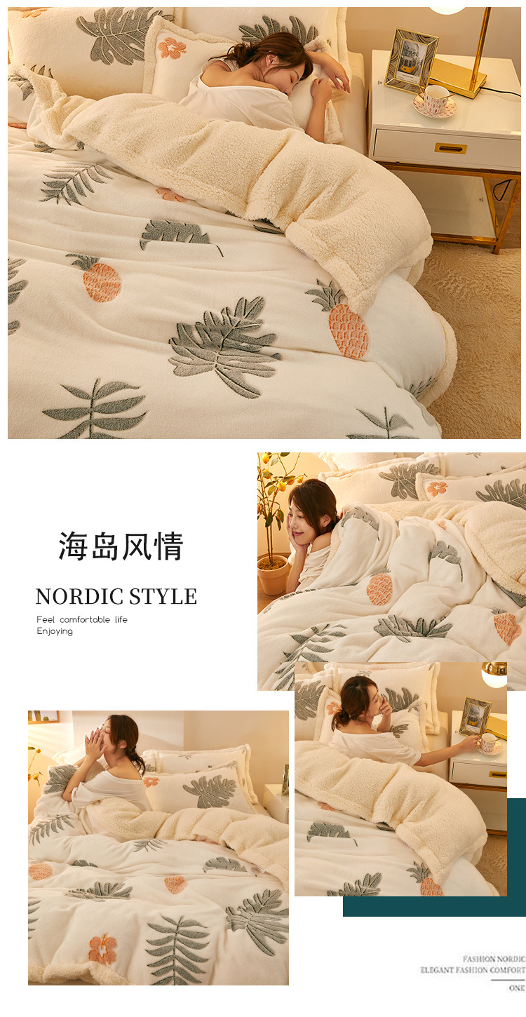(总)网客家纺 2025新款羊毛绒牛奶绒夹棉床盖四件套,豹点-深灰,简格-黑色,简格-咖色,空间-红色,泥点-灰色,泥点-咖色,维奥-灰色,斜格-灰色,斜格-墨绿