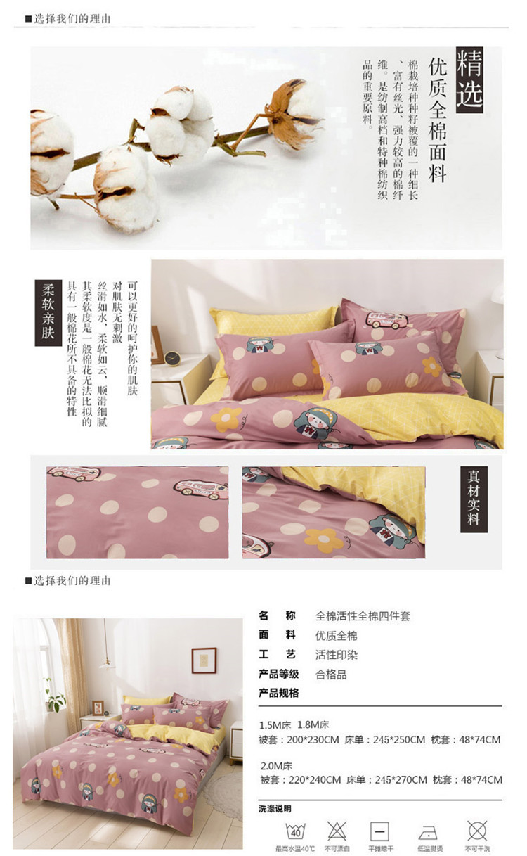商品名称:星期三 2020年秋冬新款全棉13372四件套(加老板微信有会员价) 清新校园