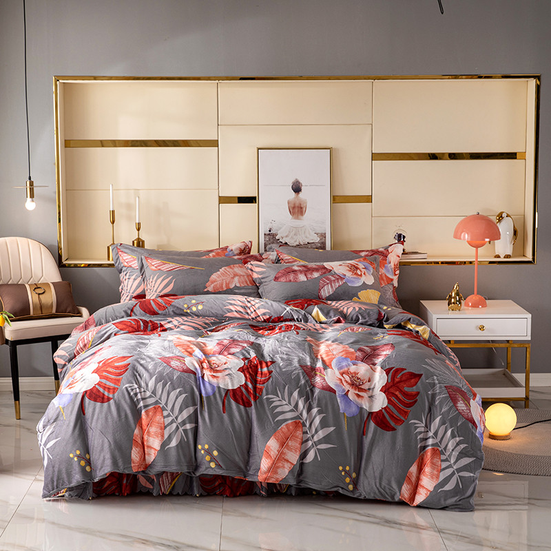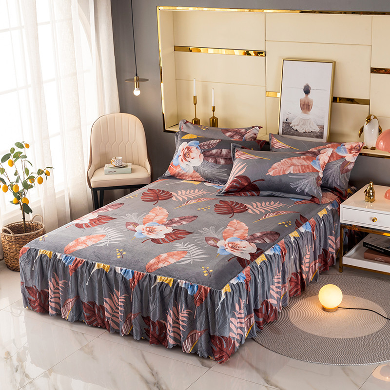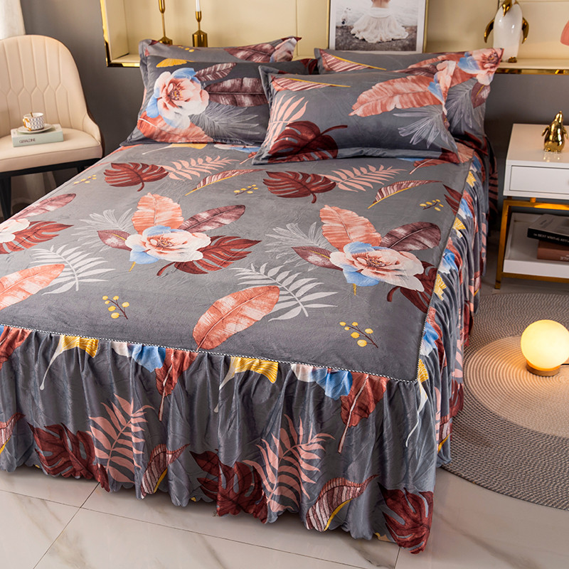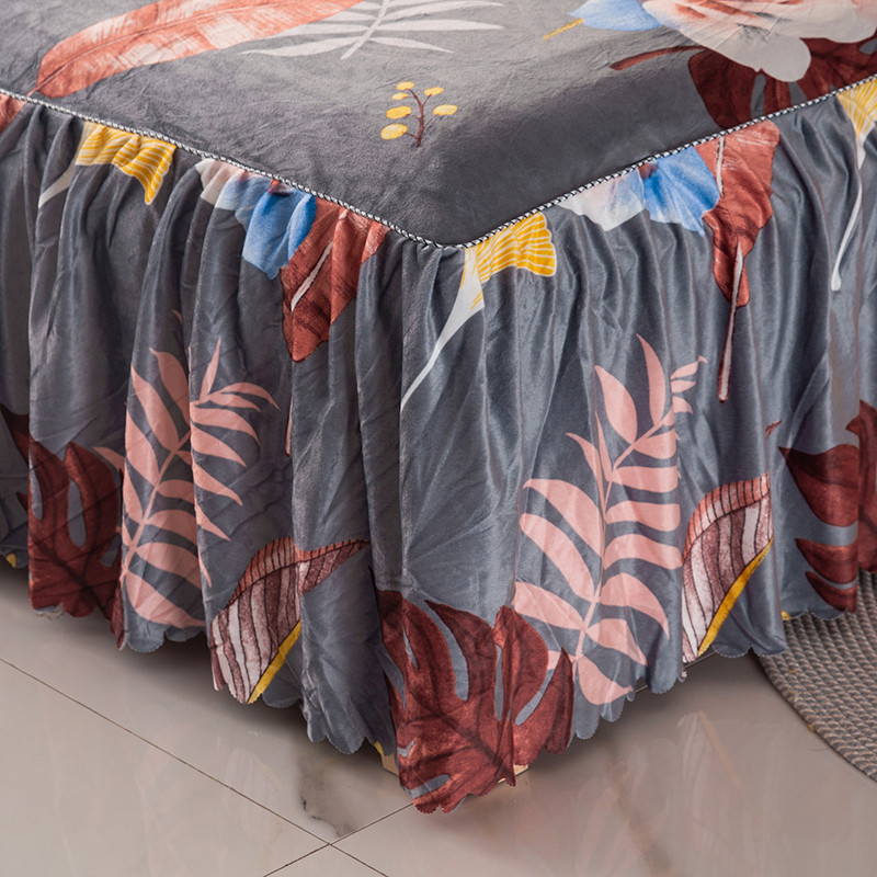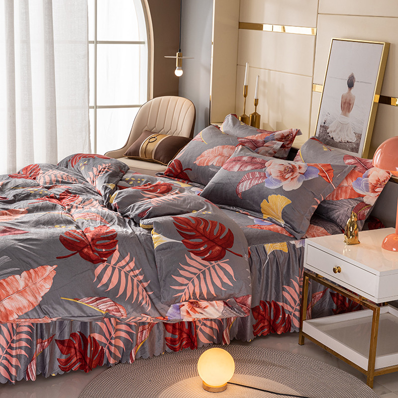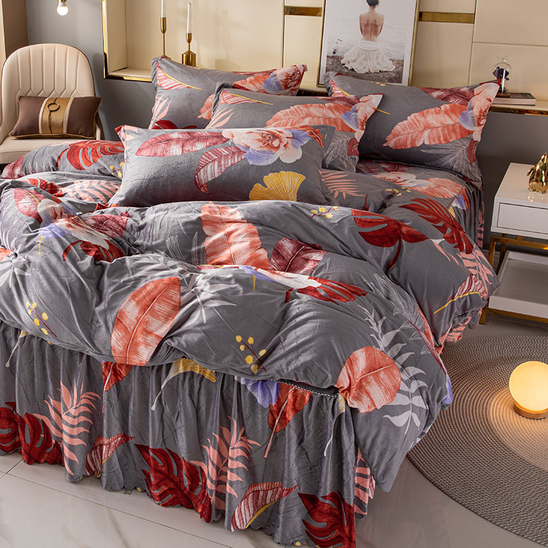 纽缦 2020新款绒单层床裙四件套 花语灰
