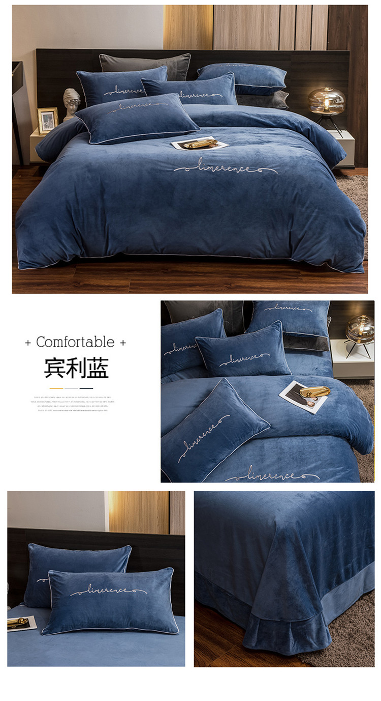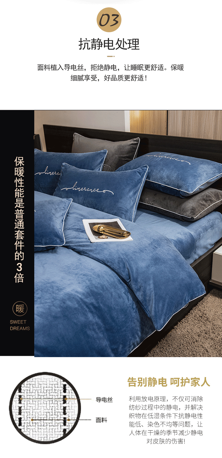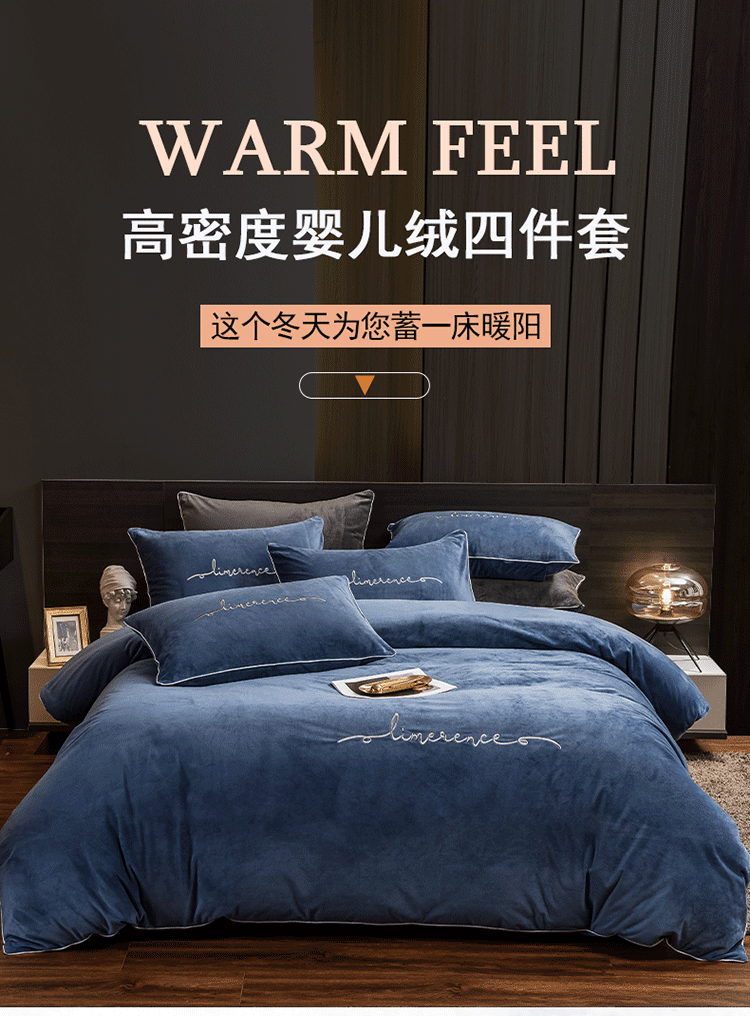 瑞驰 2022新款A类婴儿绒保暖四件套 宾利蓝
