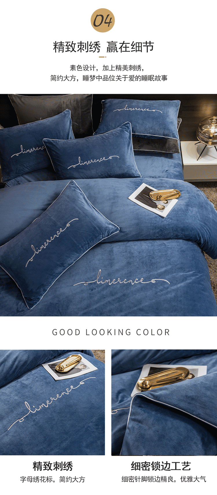 (总)瑞驰家纺 2023新款A类达标加厚保暖婴儿绒四件套 艾丽莎系列,艾丽莎-宾利蓝,艾丽莎-豆沙红,艾丽莎-姜黄,艾丽莎-卡其,艾丽莎-罗马灰,艾丽莎-珊瑚橙,艾丽莎-深湖绿,艾丽莎-叶脉绿,艾丽莎-优雅紫