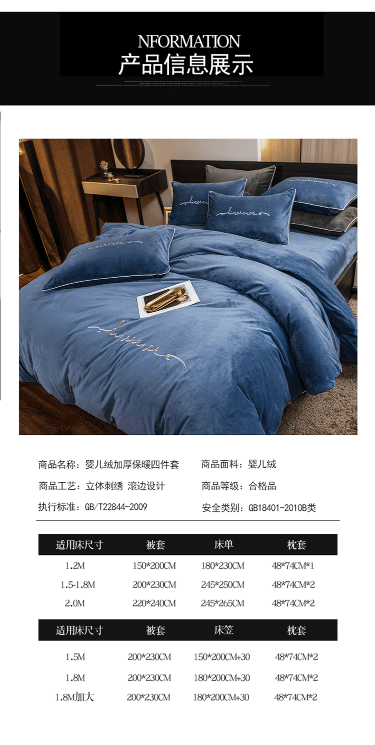 商品名称:瑞驰 2022新款A类婴儿绒保暖四件套 宾利蓝