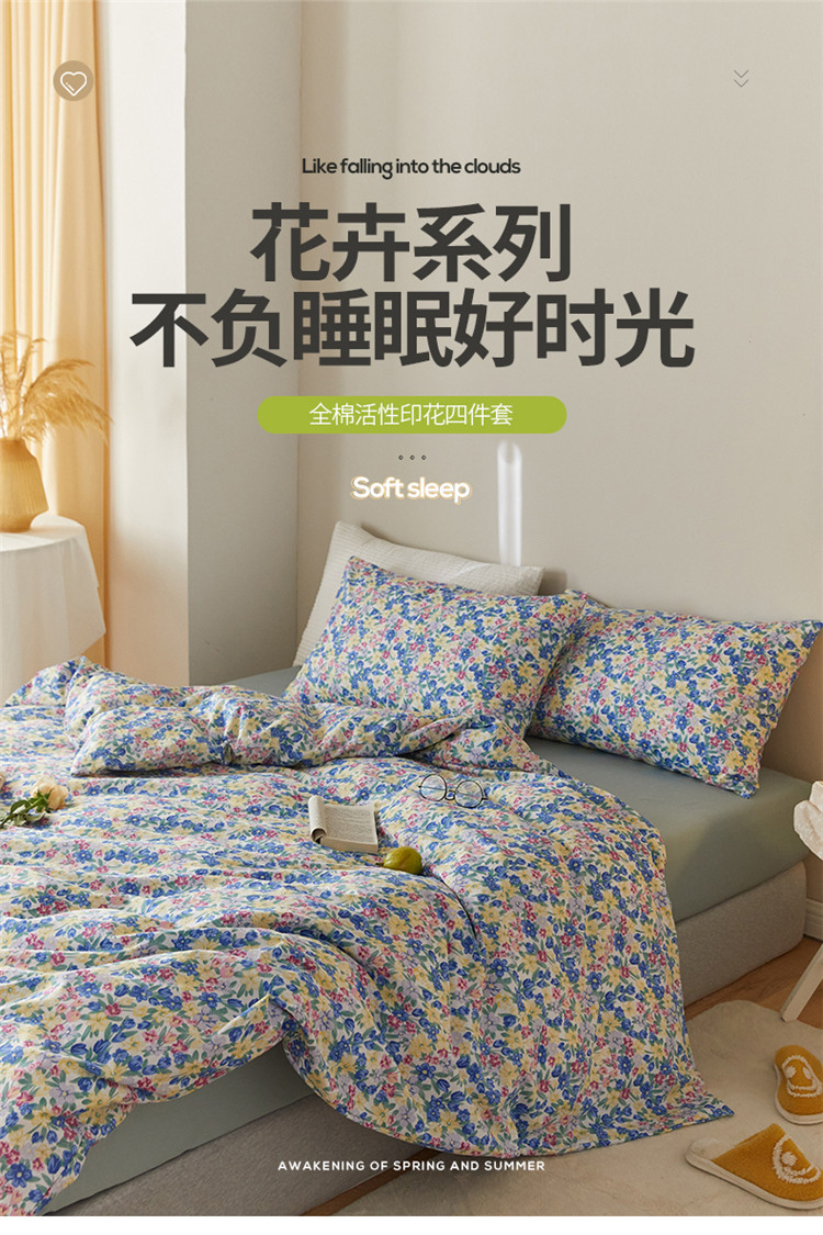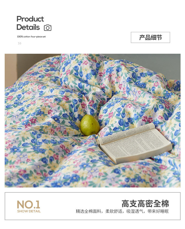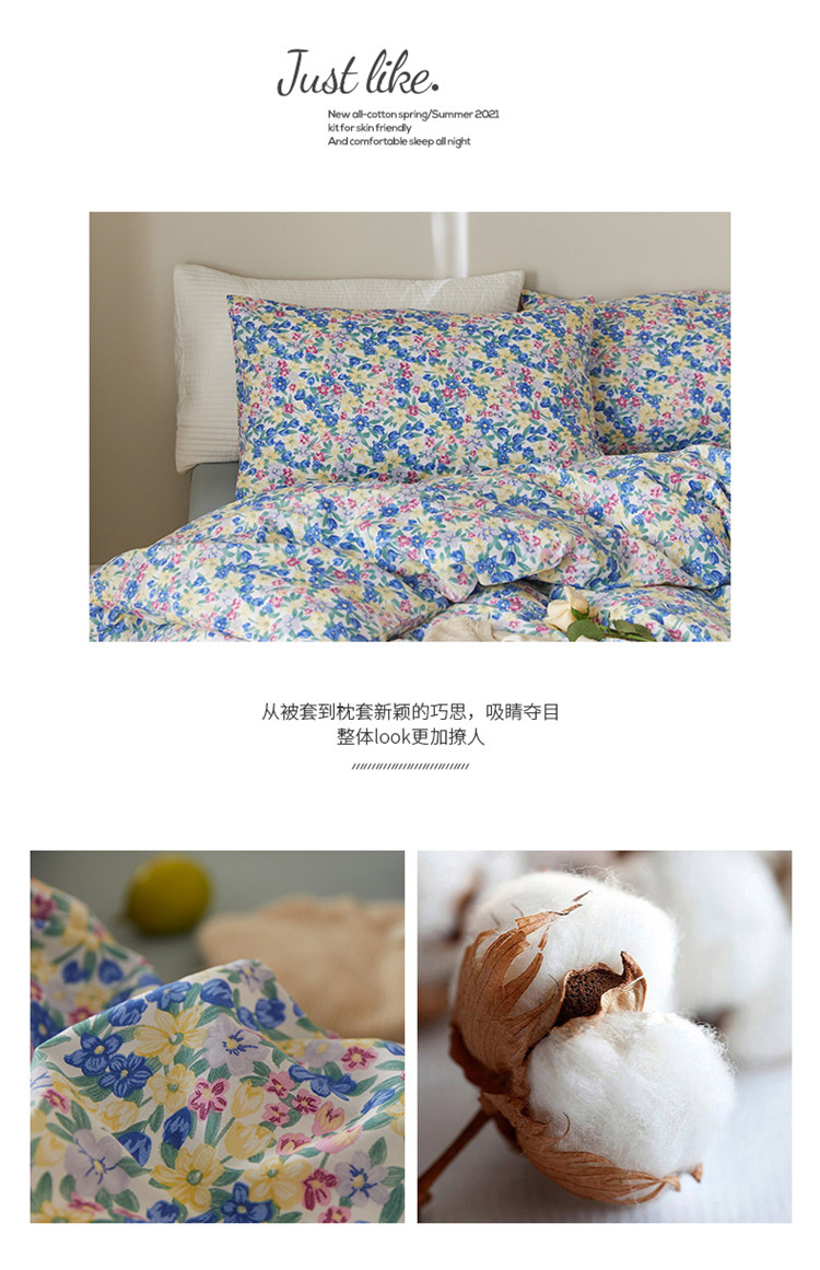 窝米 2020春夏新品全棉13372四件套小波西风系列小花花,小花花