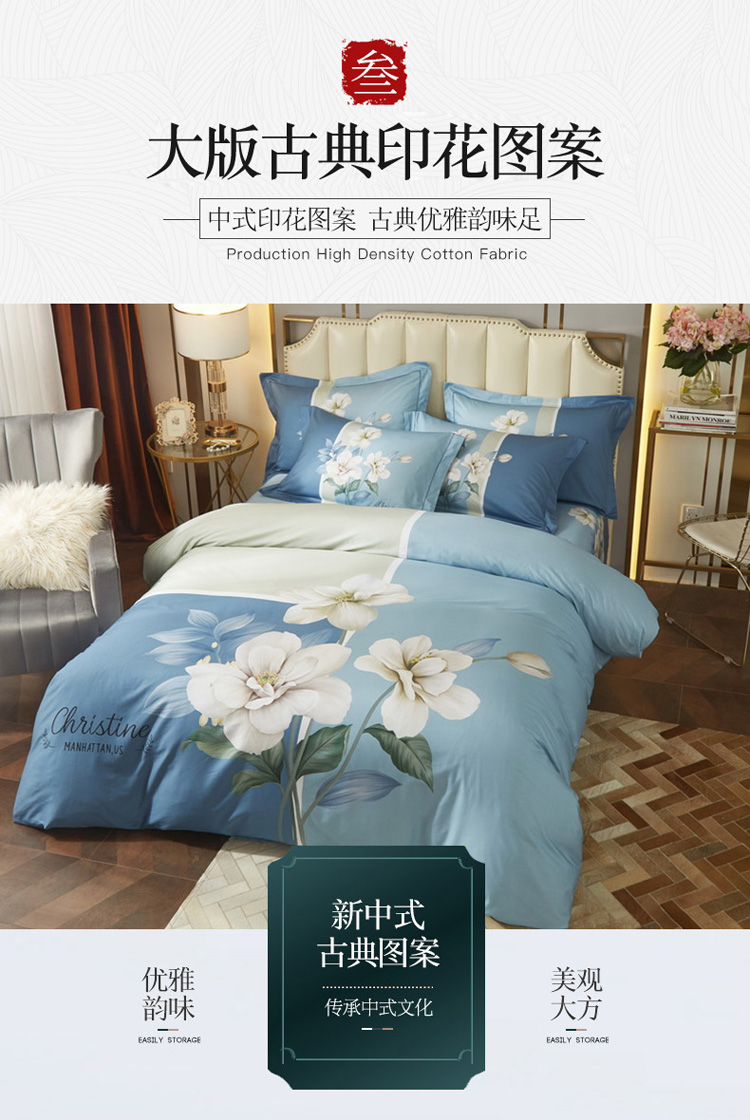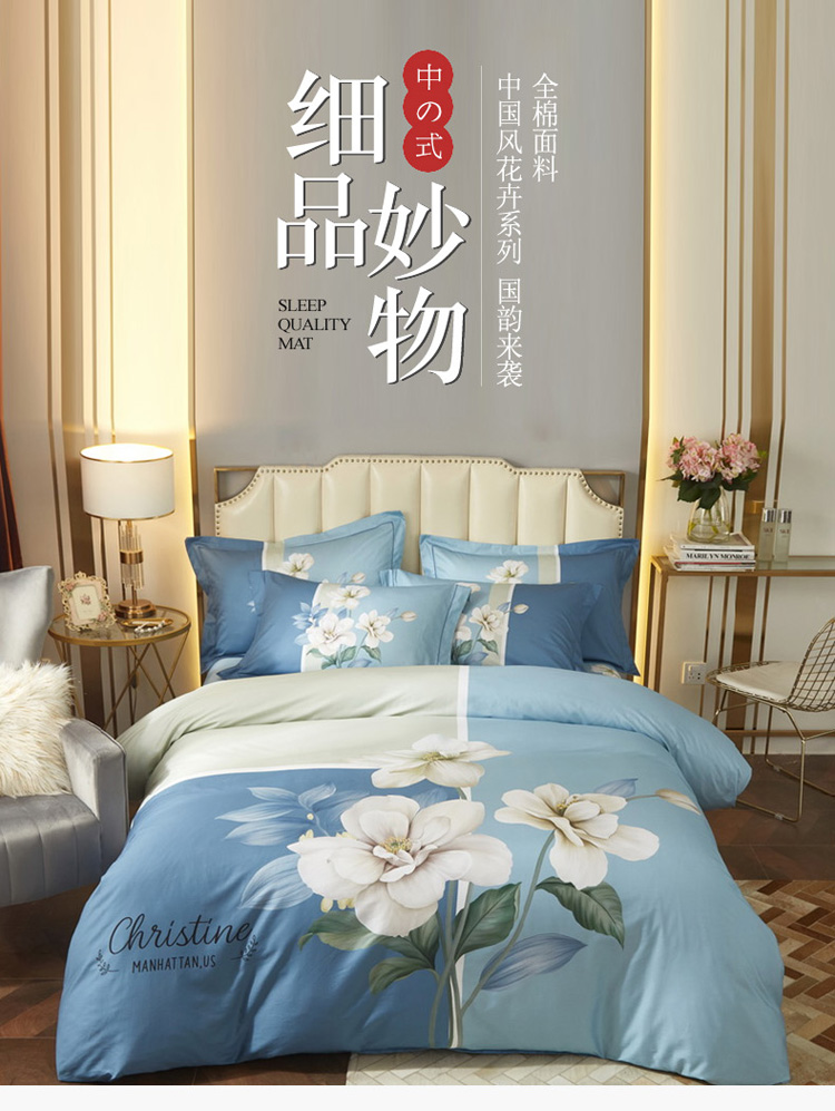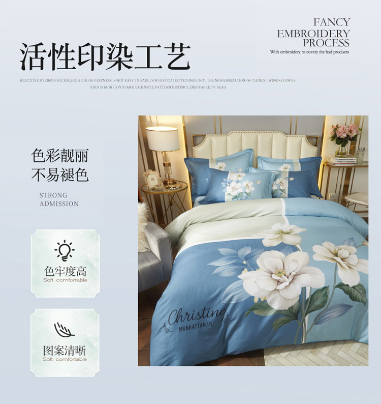 商品名称:启航 2021年爆款全棉春夏新品四件套 伊莲娜蓝