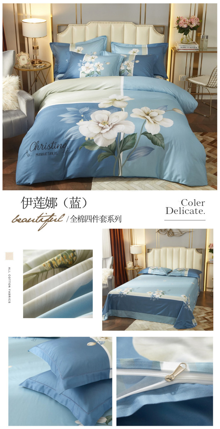 启航 2021年爆款全棉春夏新品四件套 伊莲娜蓝