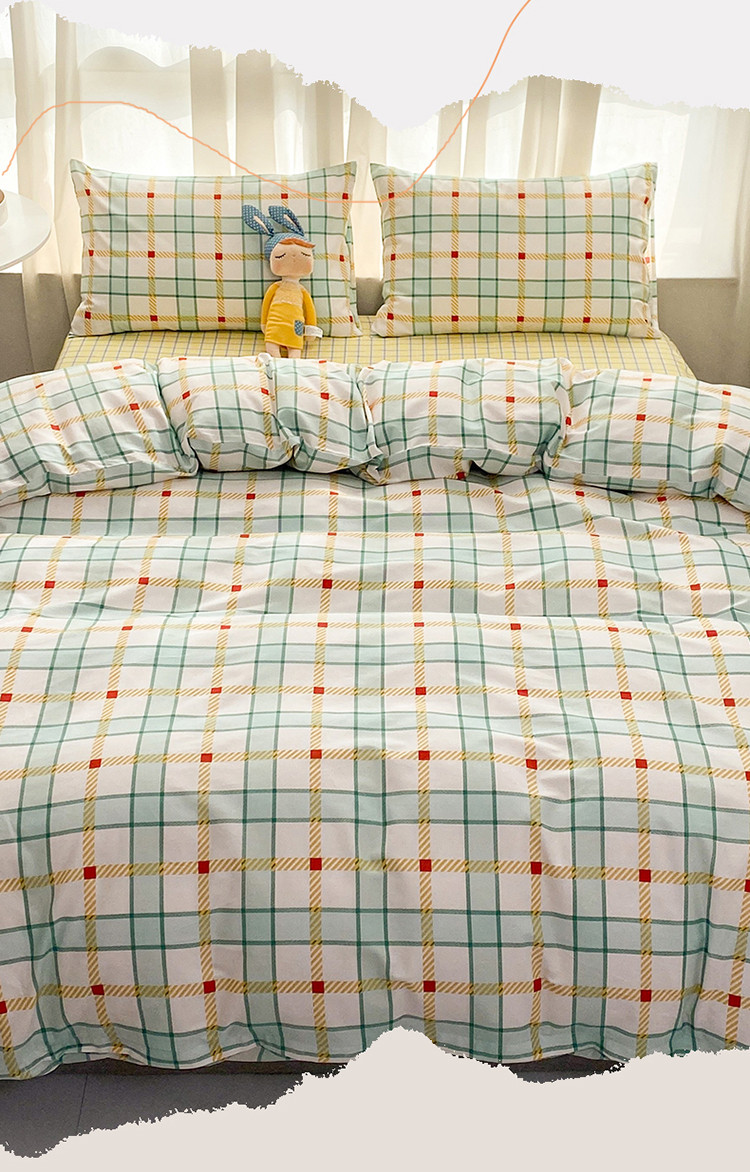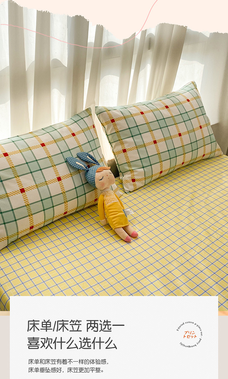 (总)2023新款40支纱全棉13070锁边工艺款四件套系列,格子爱心,嘉兰,咖条,朗尼,小兔兔,星星兔