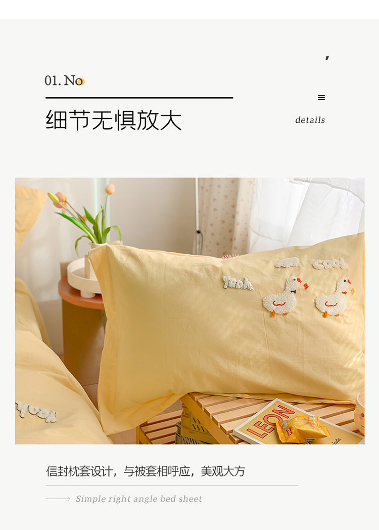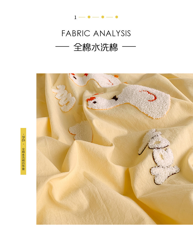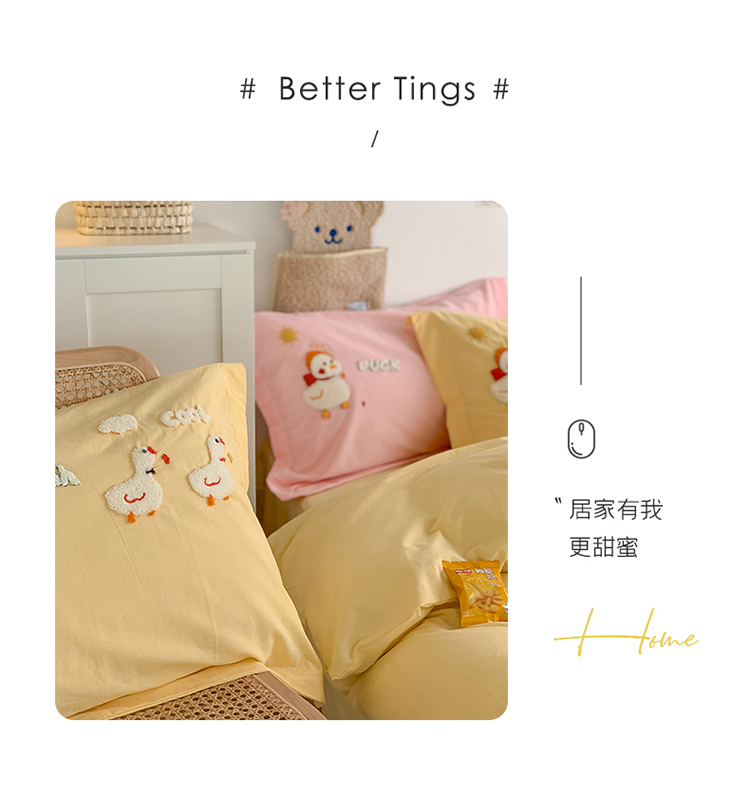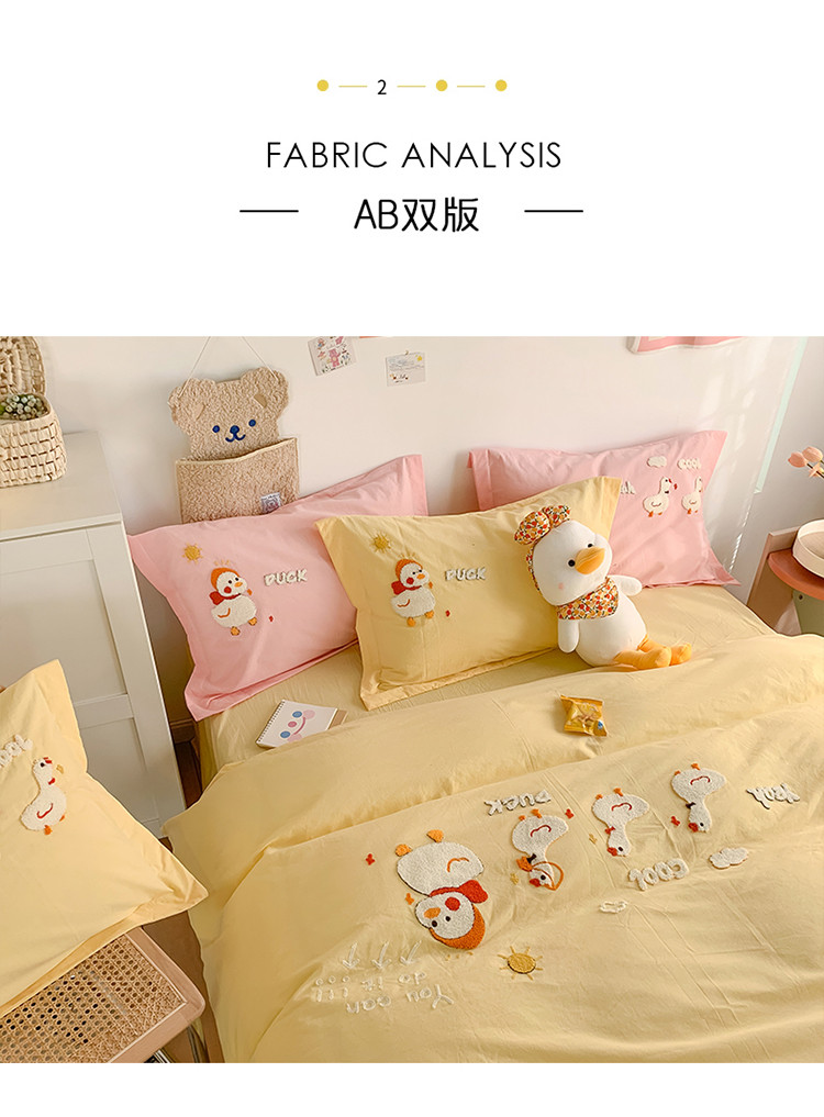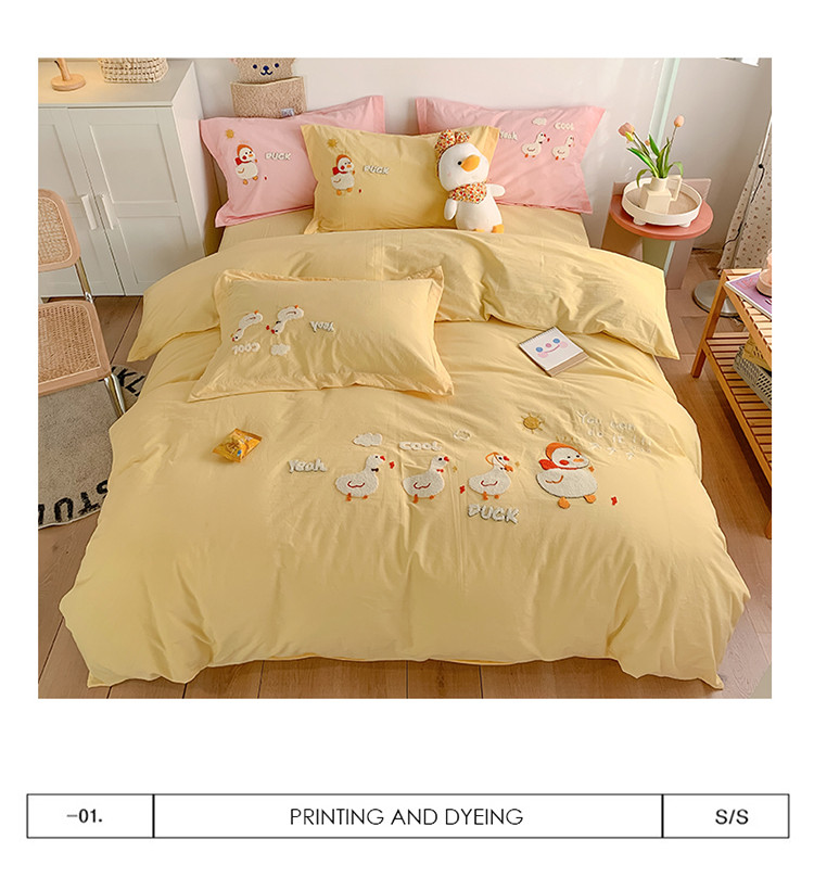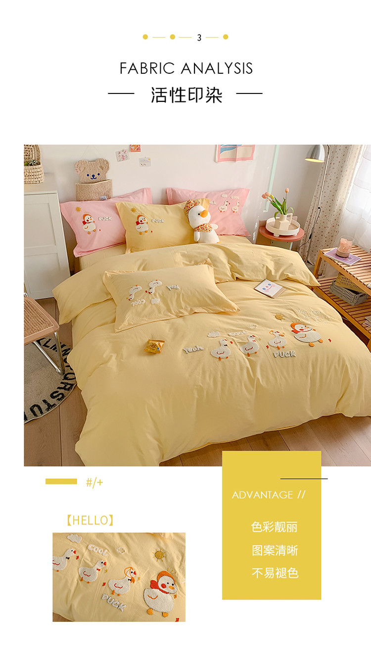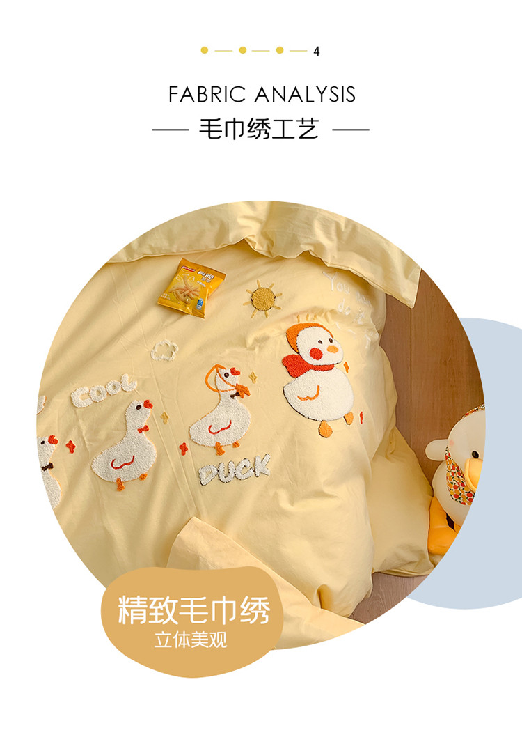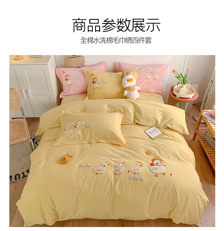 商品名称:蜜柚2021全棉水洗棉卡通毛巾绣小清新床单四件套 可爱鸭黄