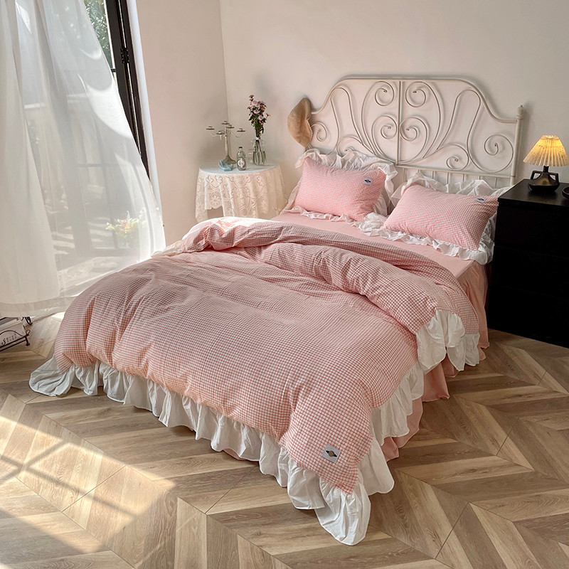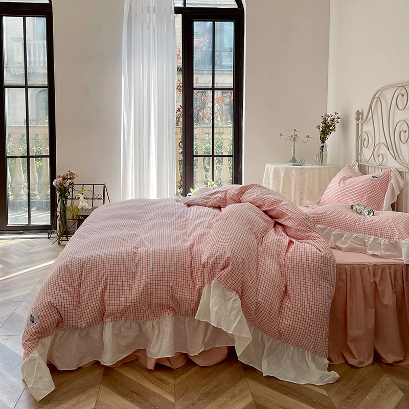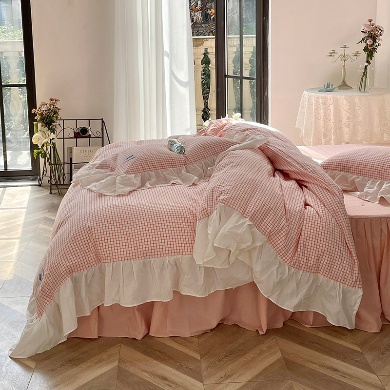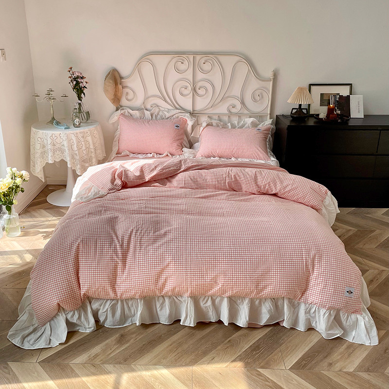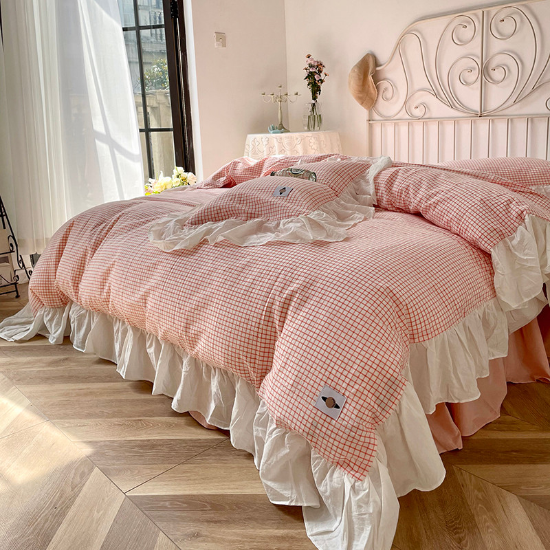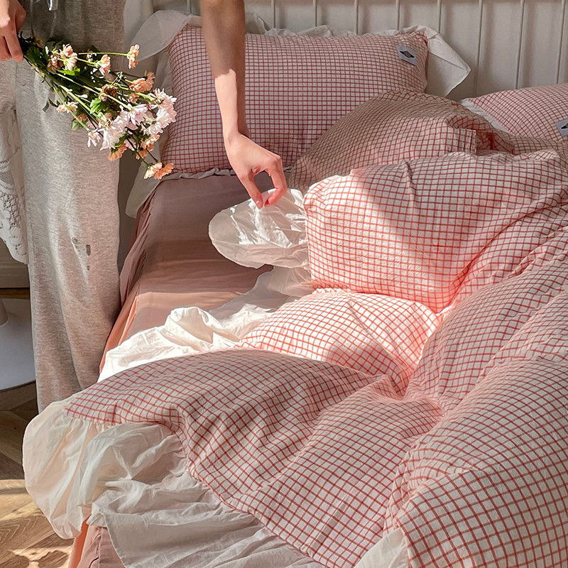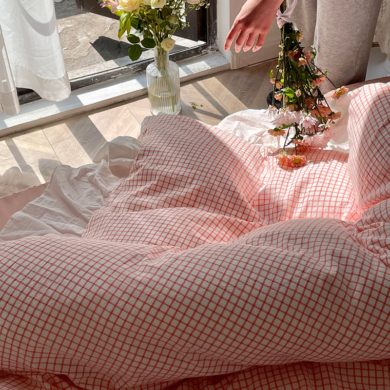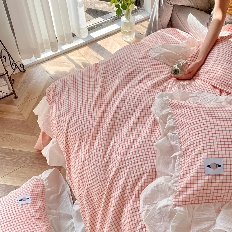 洋铭区 2021新款法式清新水洗棉四件套 香橙格