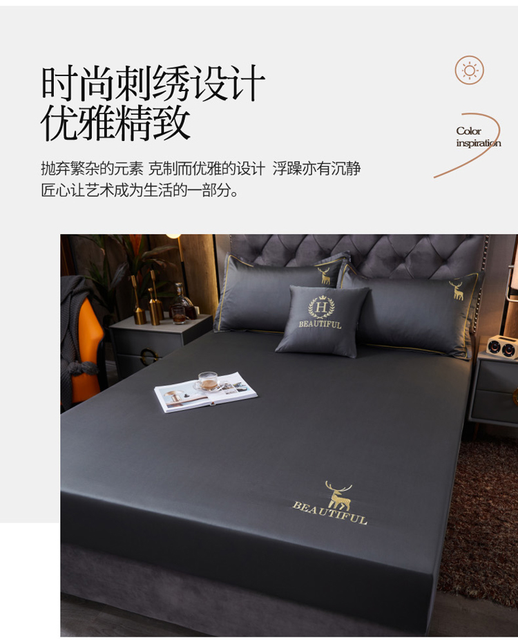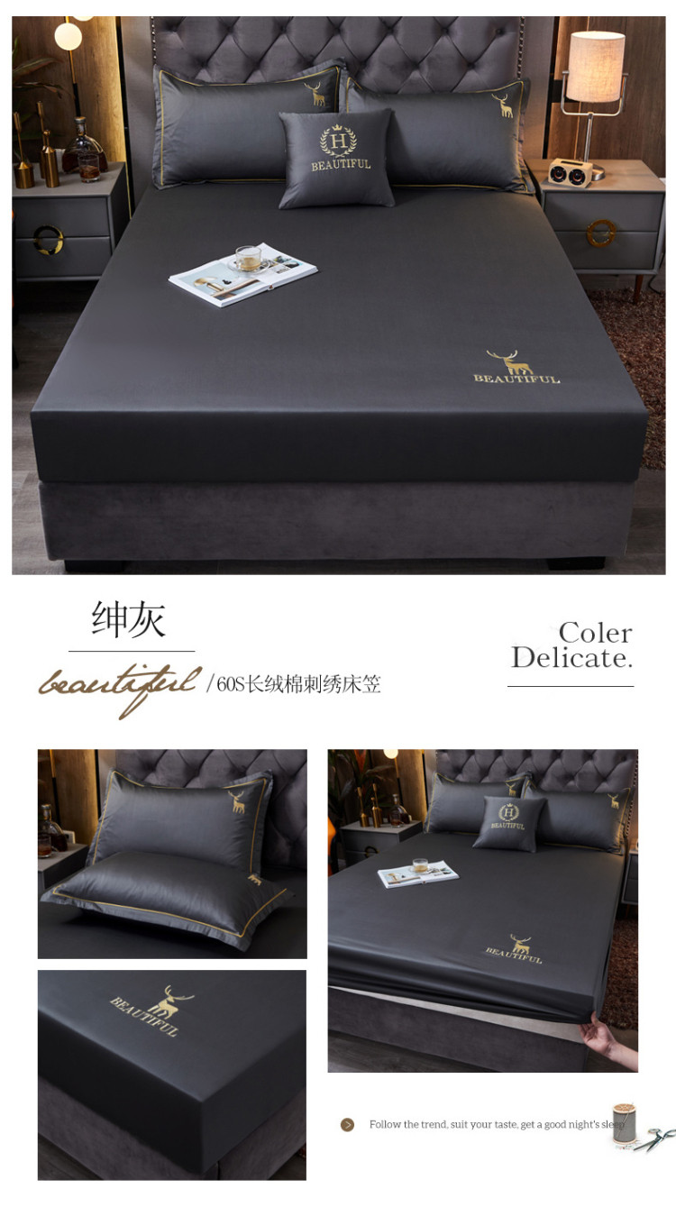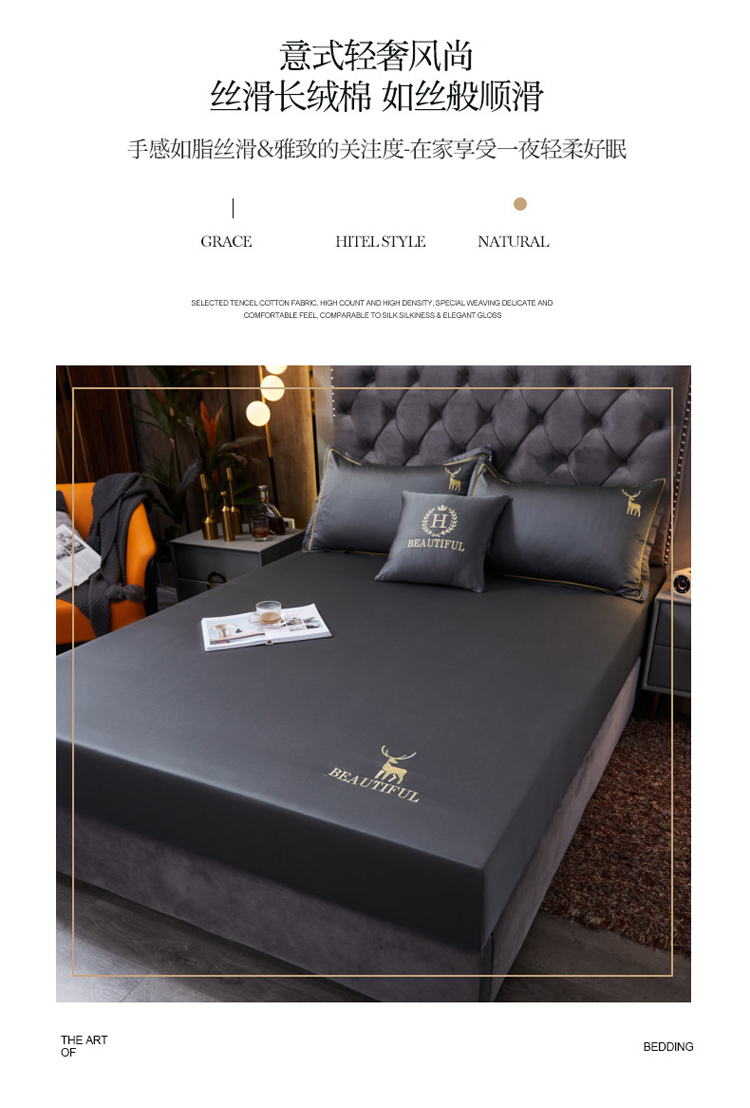 菊上 2021新款60长绒棉-单品床笠(幸福鹿系列)绅灰
