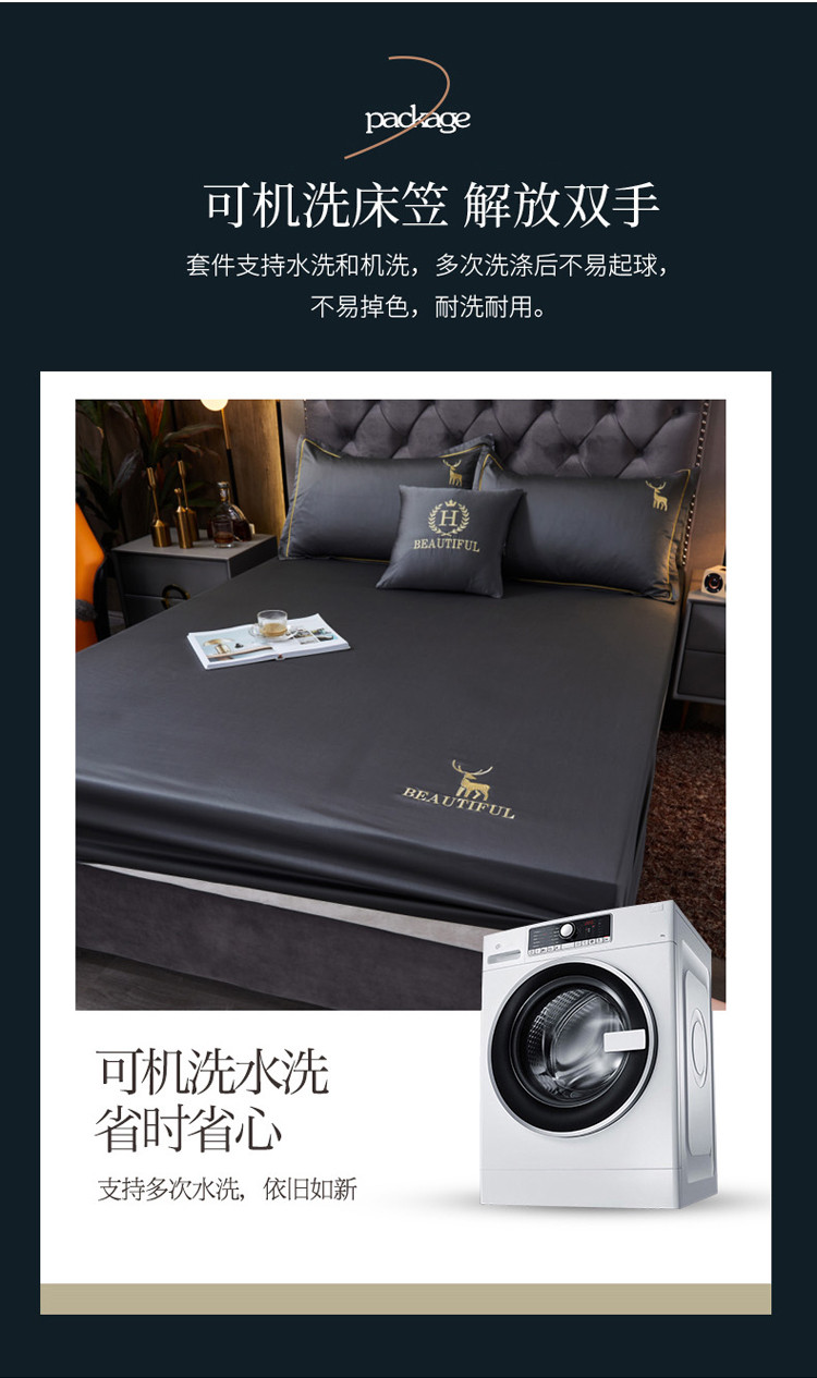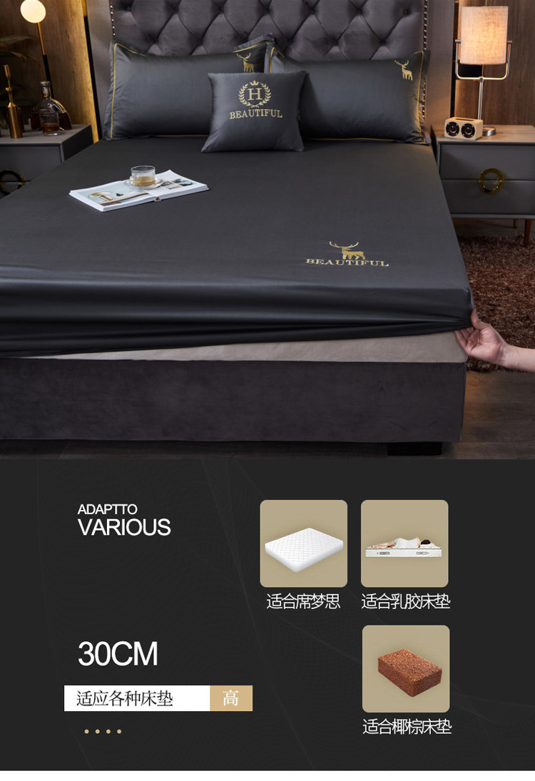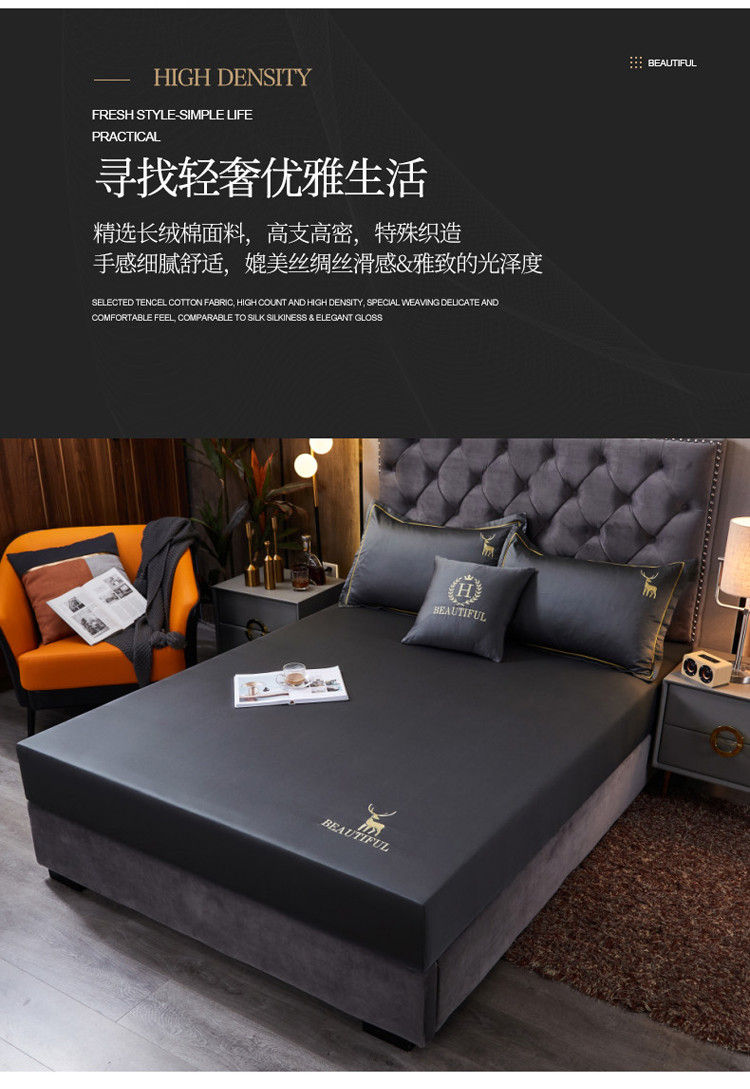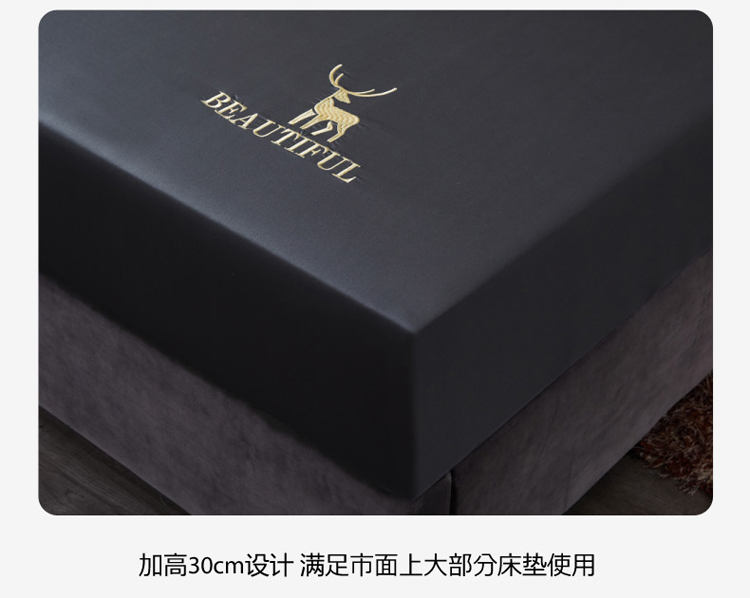 商品名称:菊上 2021新款60长绒棉-单品床笠(幸福鹿系列)绅灰