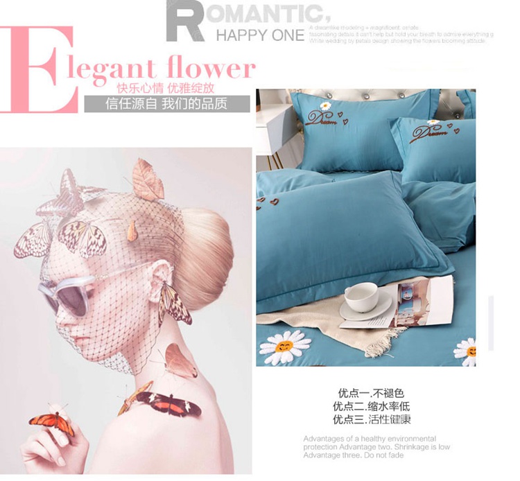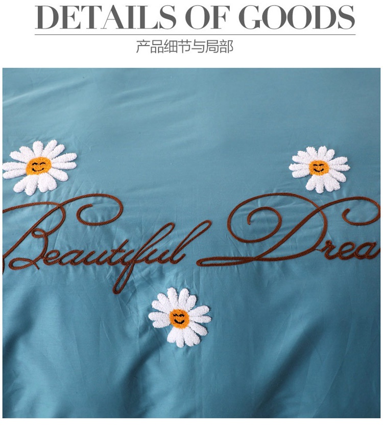 商品名称:晶缦家纺 美梦雏菊全棉13372毛巾绣四件套 美梦雏菊-湖蓝