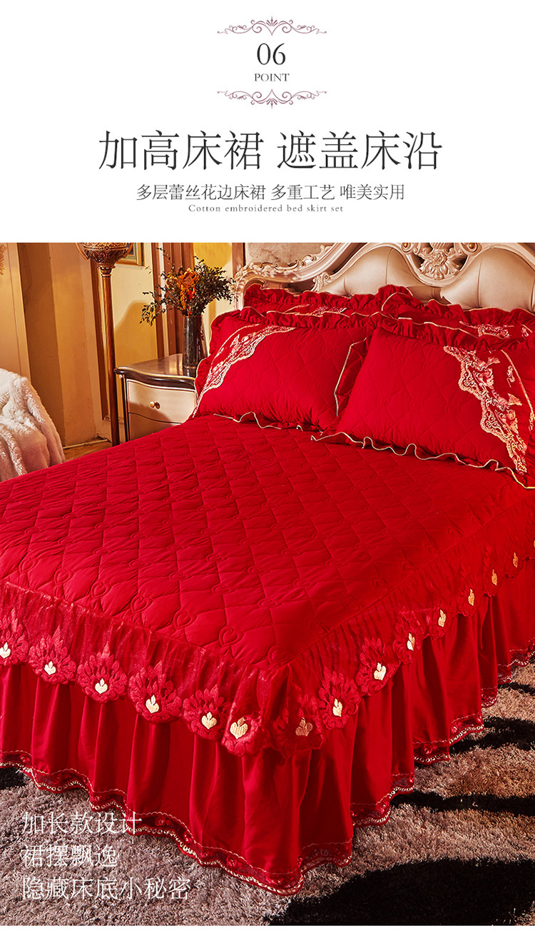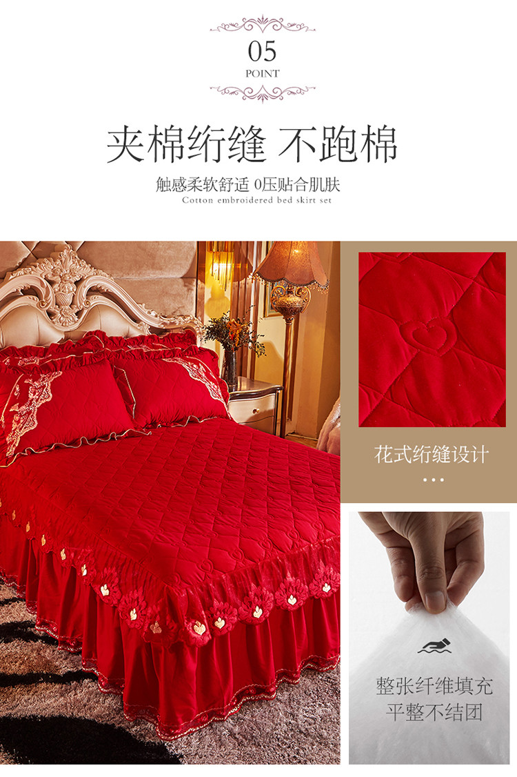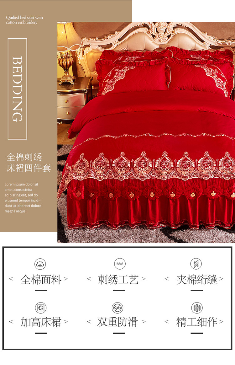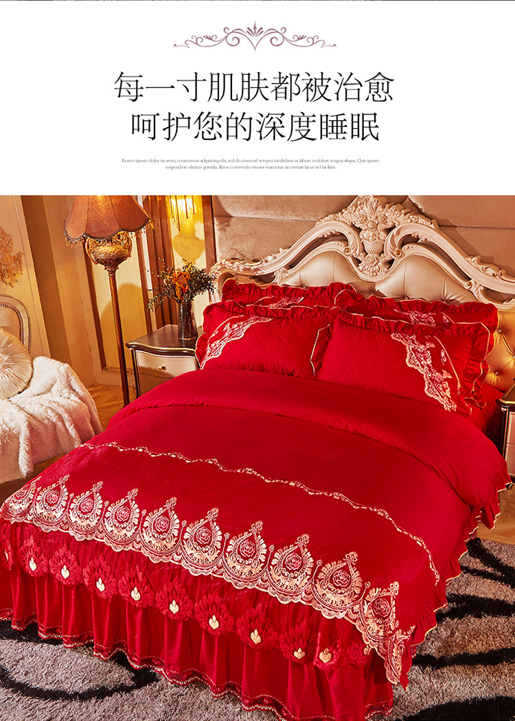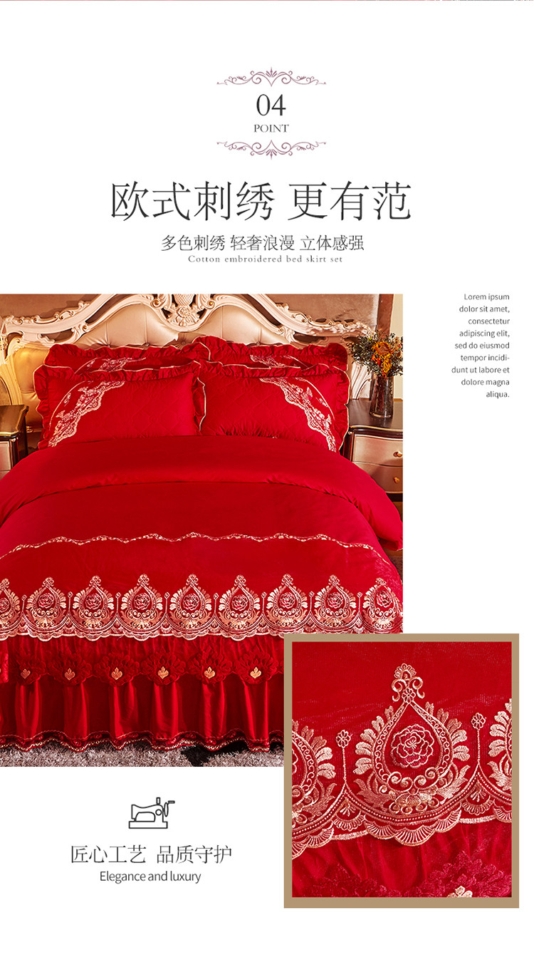 (总)宜凡家纺 2025新款婴儿绒压花全夹棉床裙四件套,韵雅-中国红,韵雅-黑天鹅