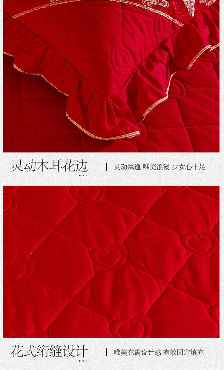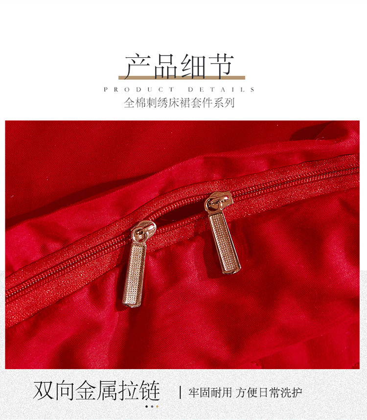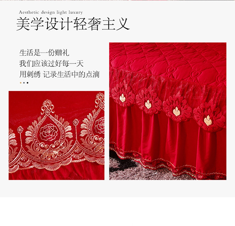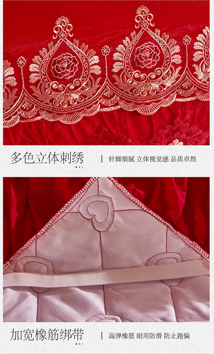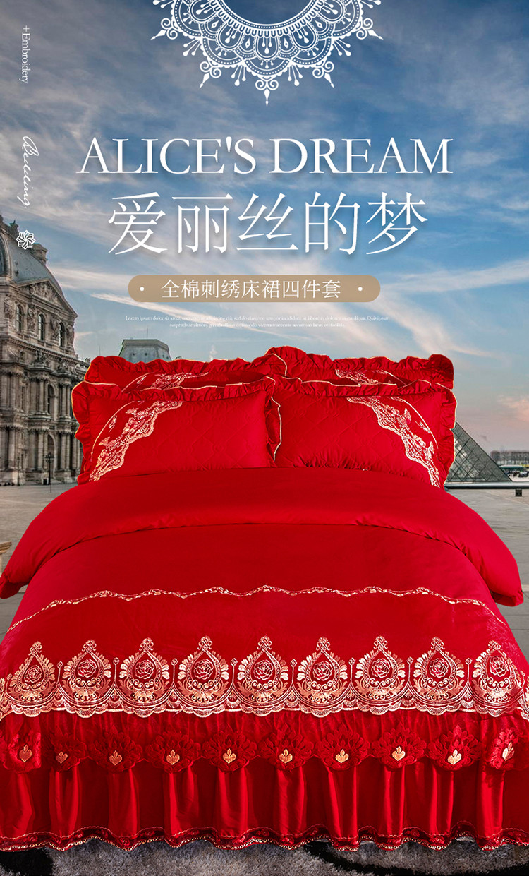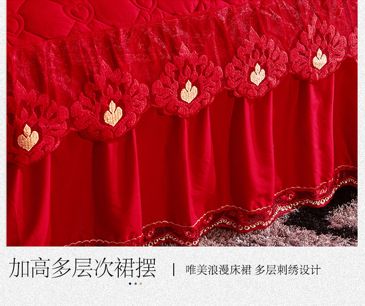 (总)宜凡家纺 2025新款婴儿绒压花全夹棉床裙四件套,韵雅-中国红,韵雅-黑天鹅