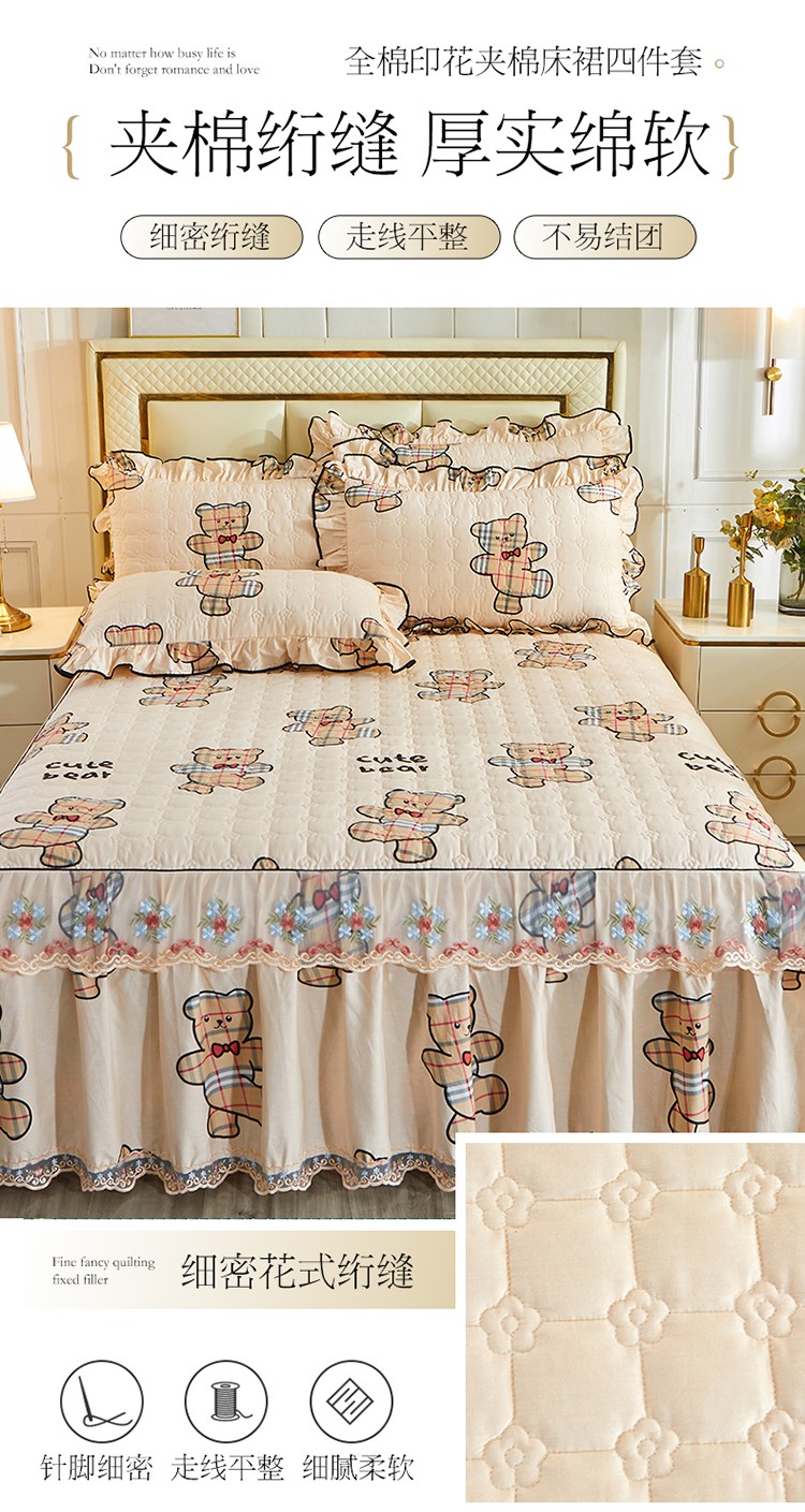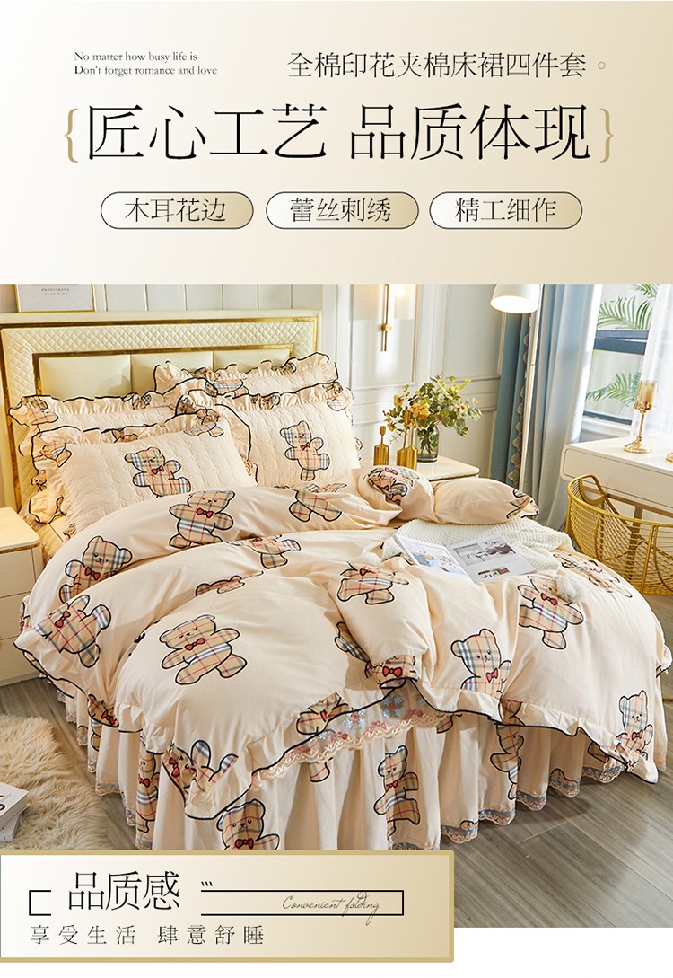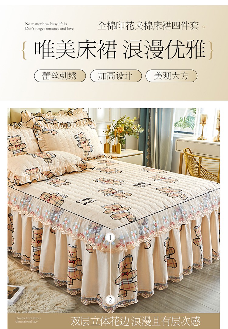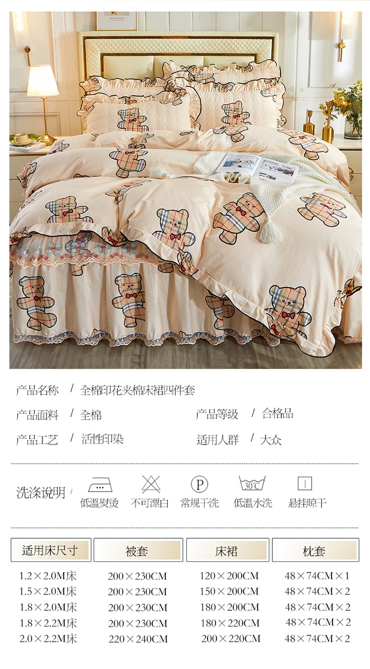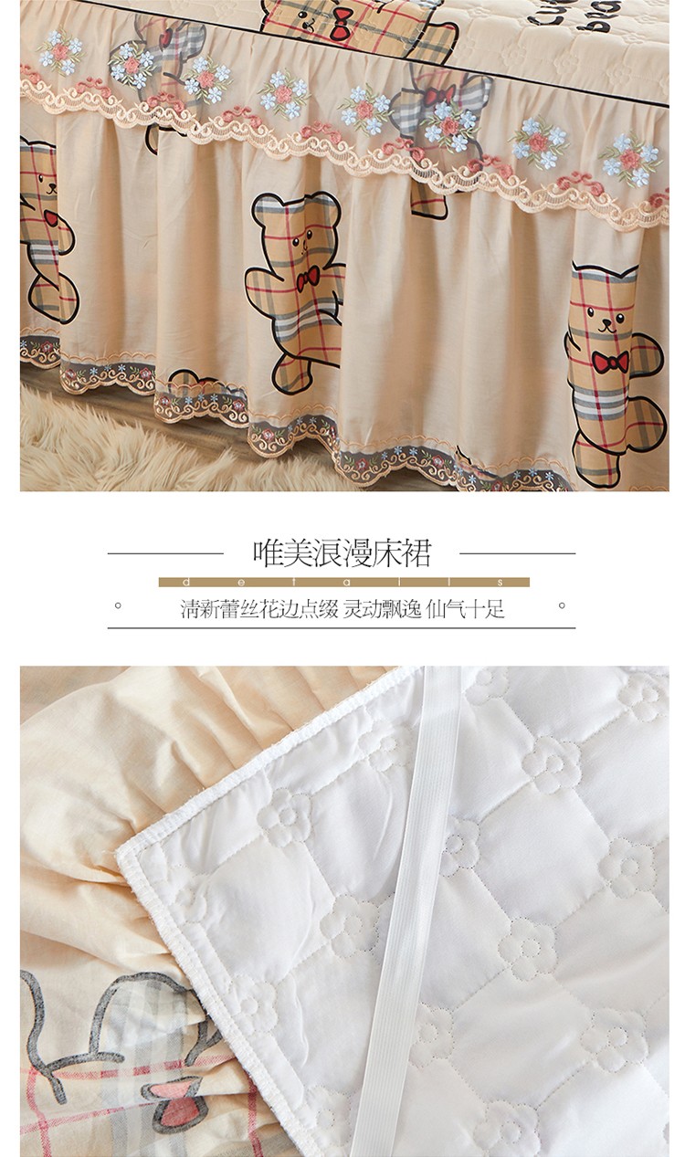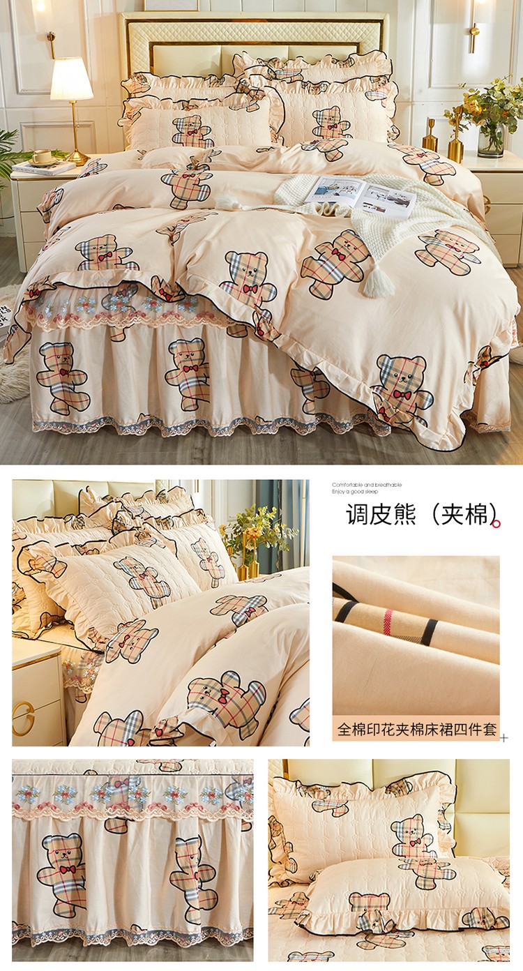 当前位置: 91家纺网 > 商品网购 > 床品套件 > 四件套 > 全棉普通四件套 > 宜凡 2021新款全棉印花夹棉床裙-床裙四件套 调皮熊