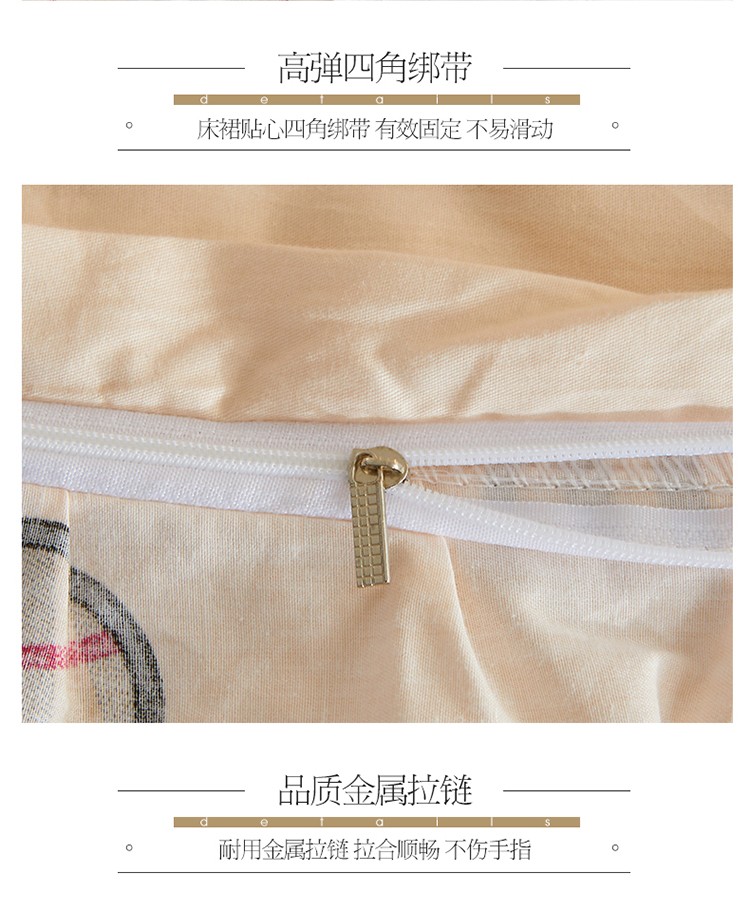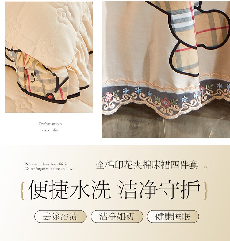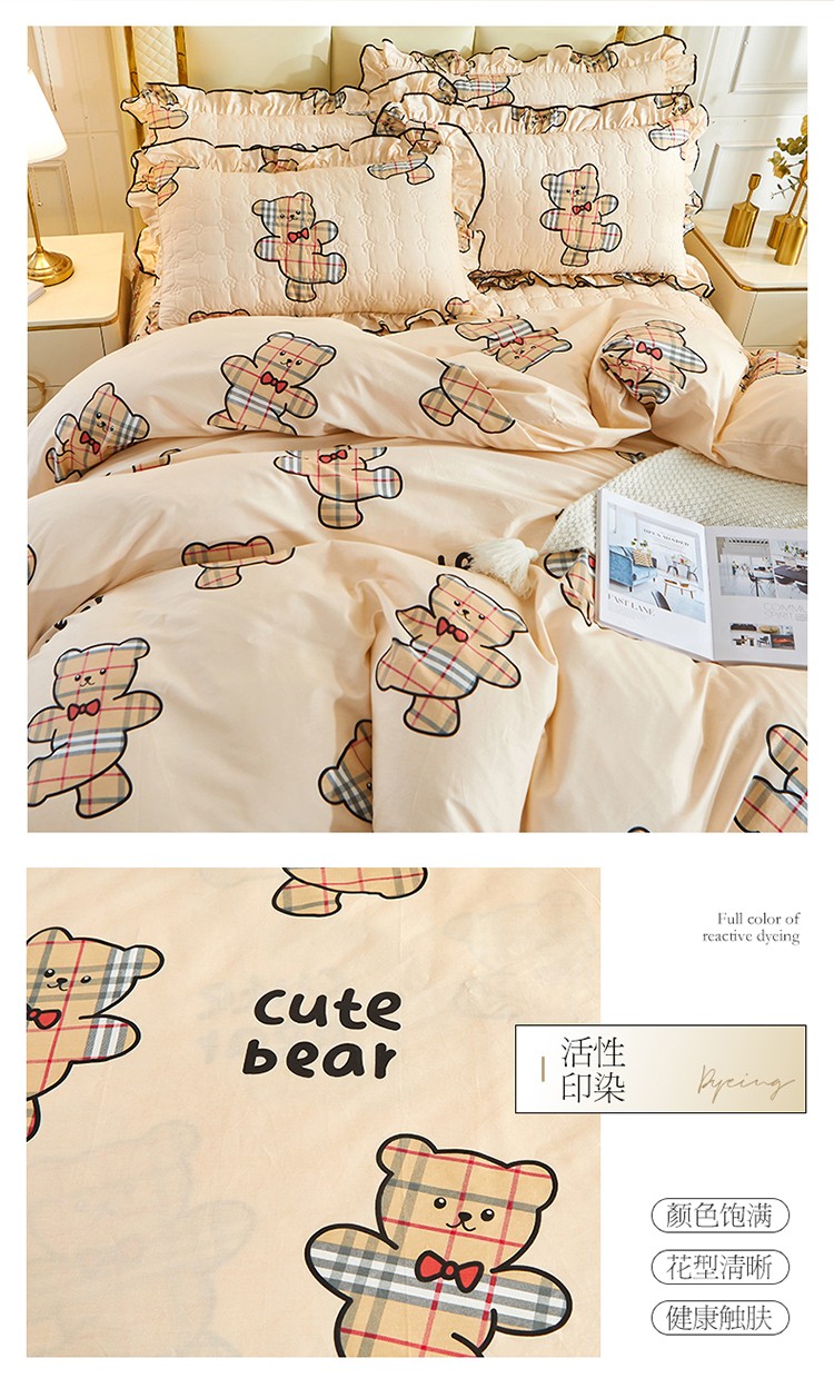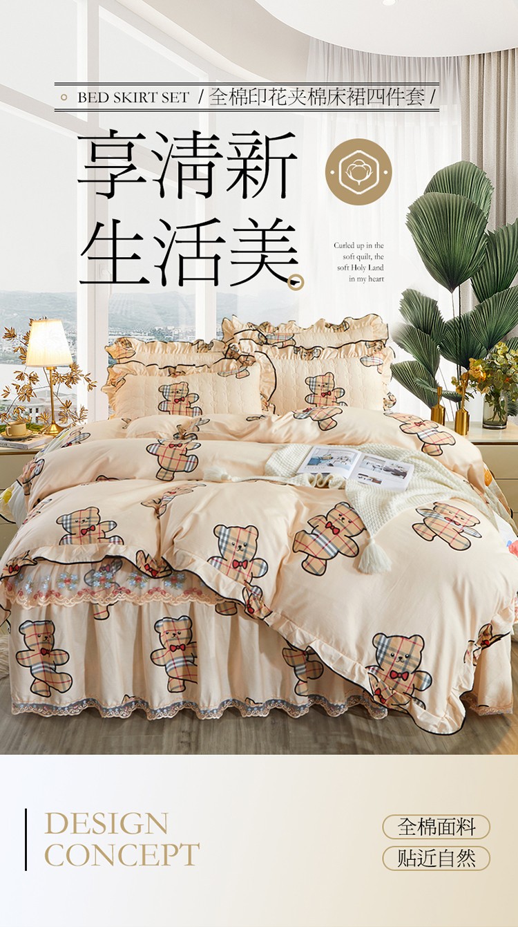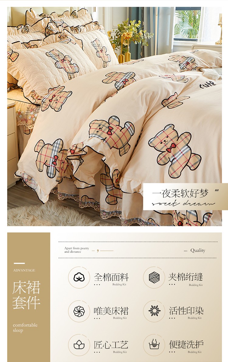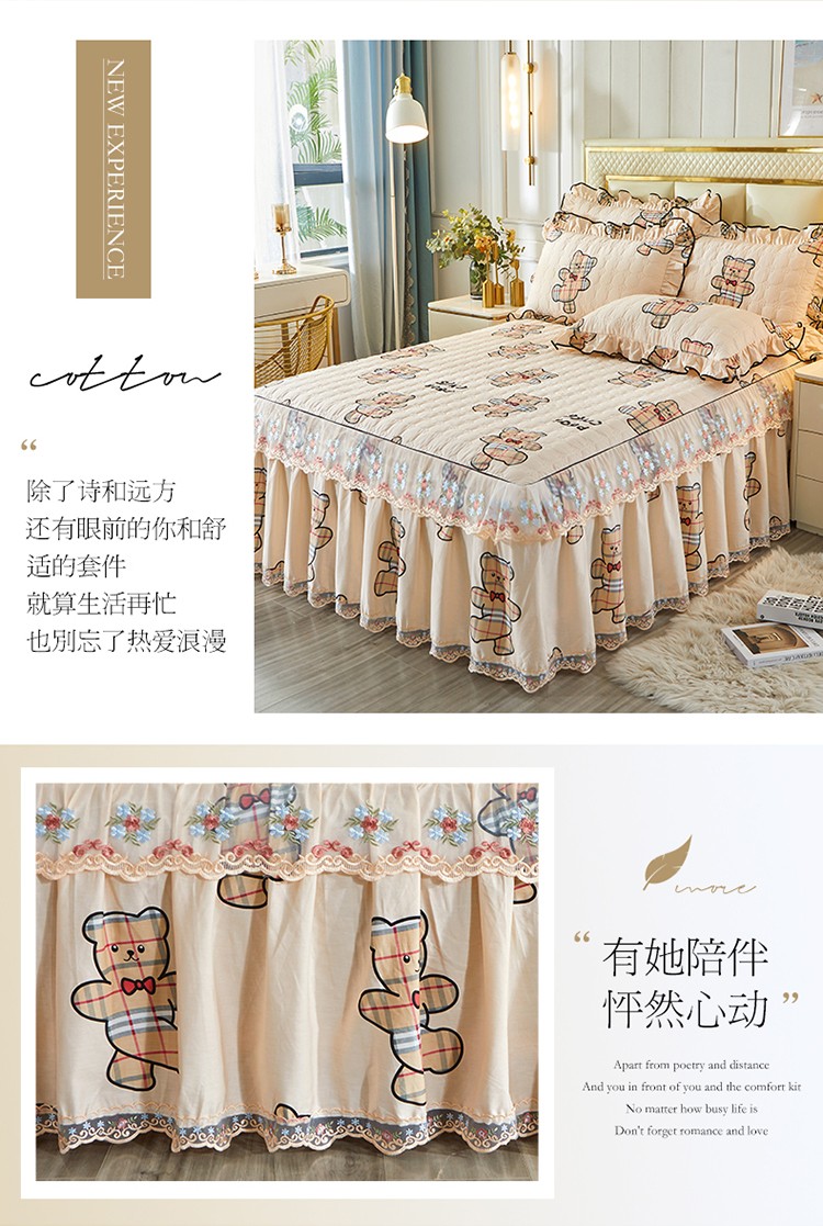 当前位置: 91家纺网 > 商品网购 > 床品套件 > 四件套 > 全棉普通四件套 > 宜凡 2021新款全棉印花夹棉床裙-床裙四件套 调皮熊