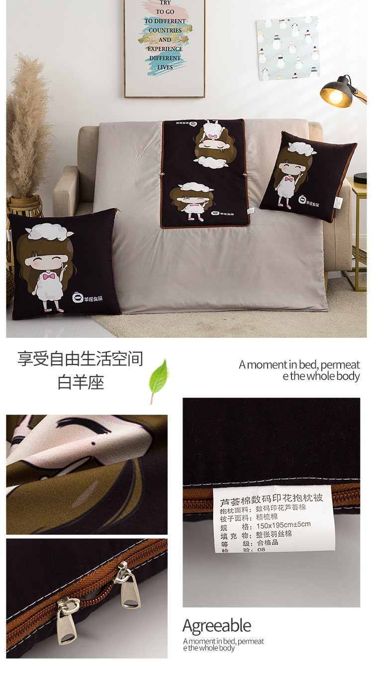 商品名称:宝马家纺 2022新款芦荟棉数码印花抱枕被 白羊座