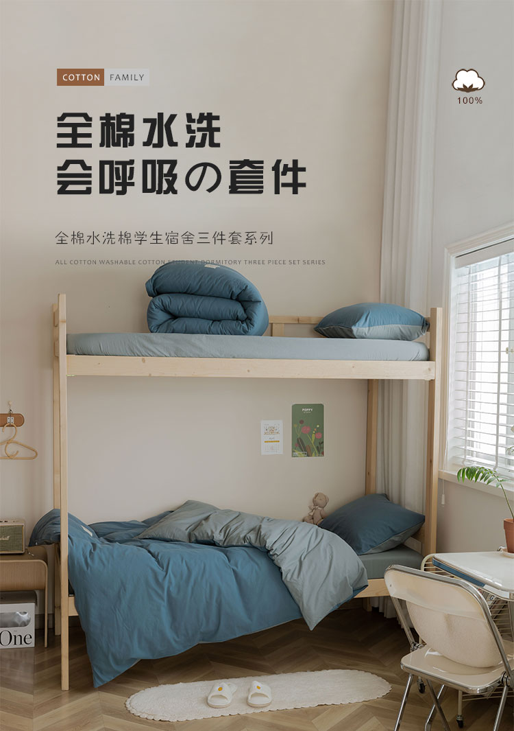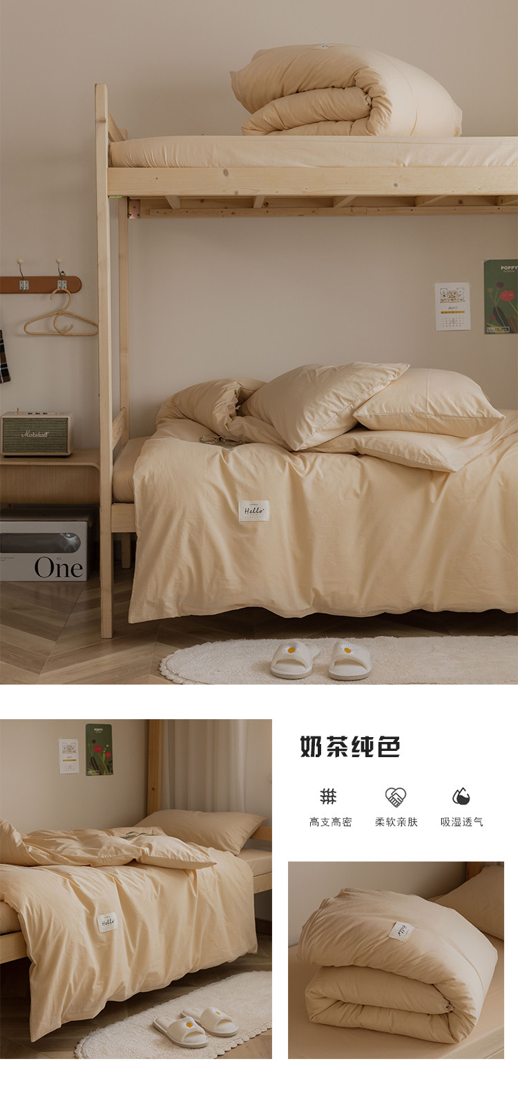 (总)寐眠 2021纯色全棉新疆棉水洗双拼学生三件套