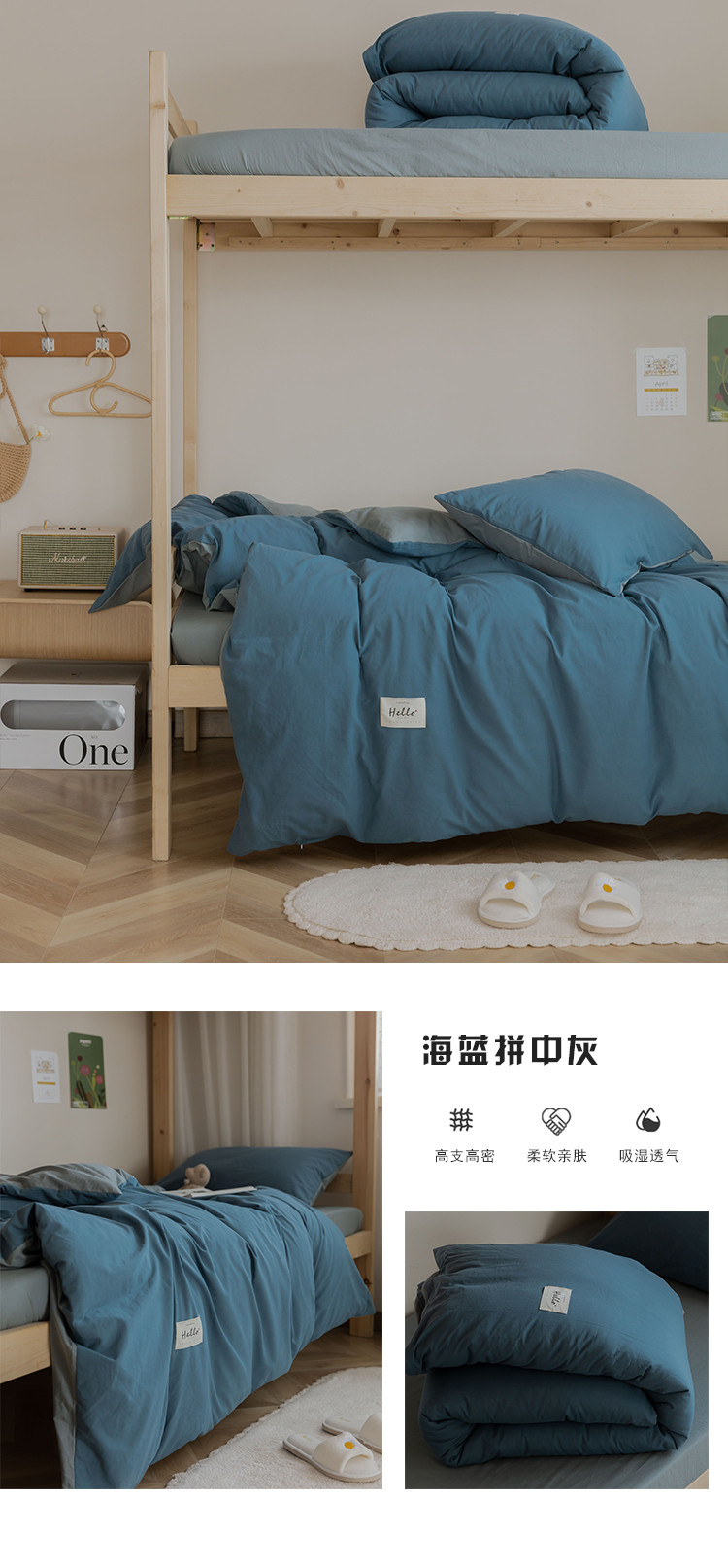 商品名称:(总)寐眠 2021纯色全棉新疆棉水洗双拼学生三件套