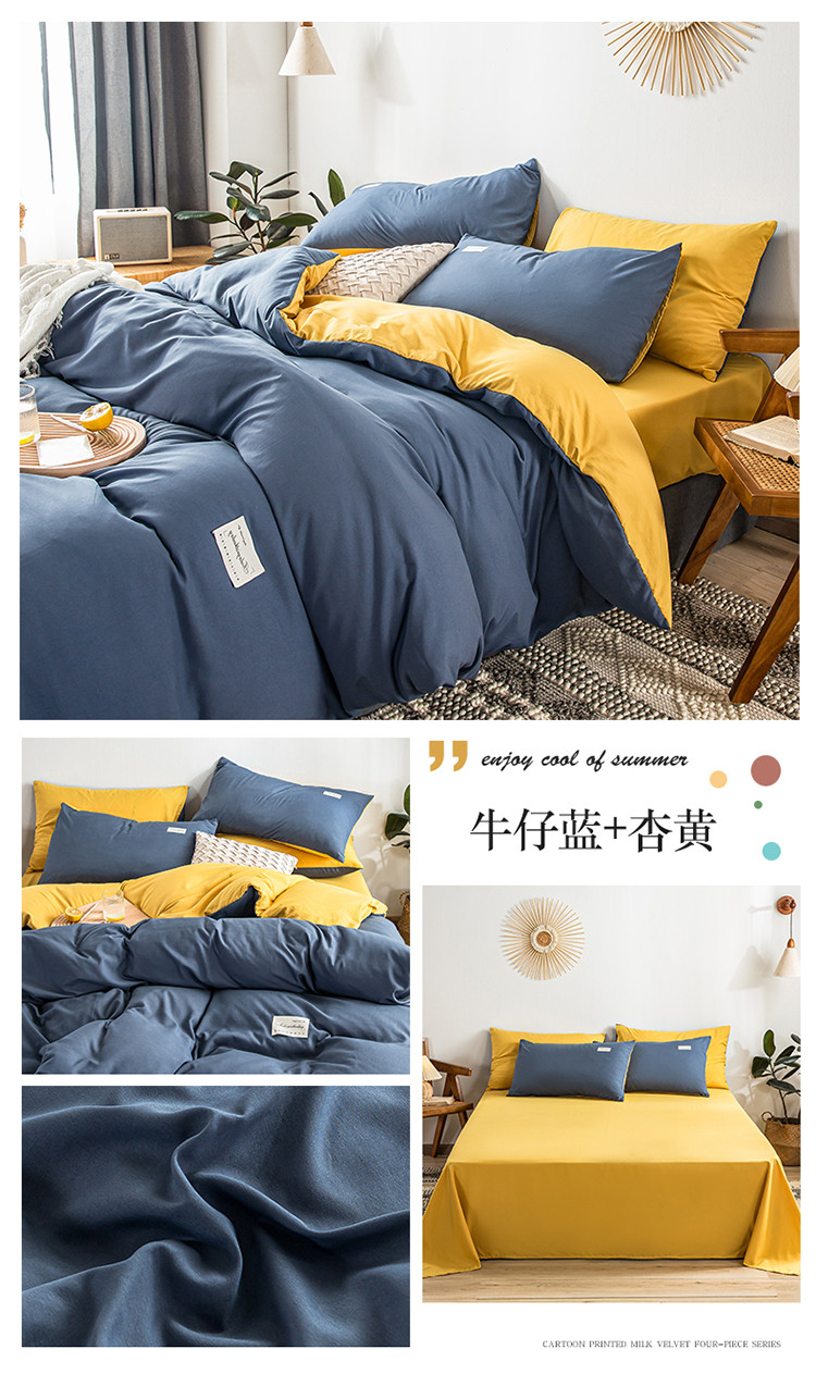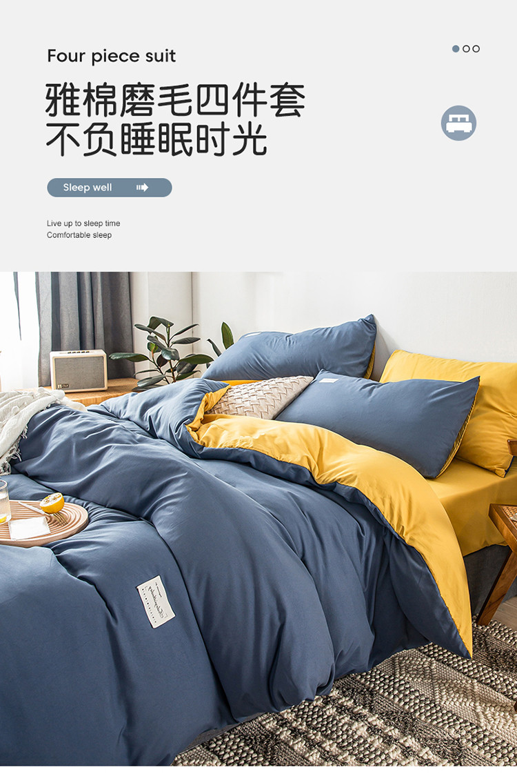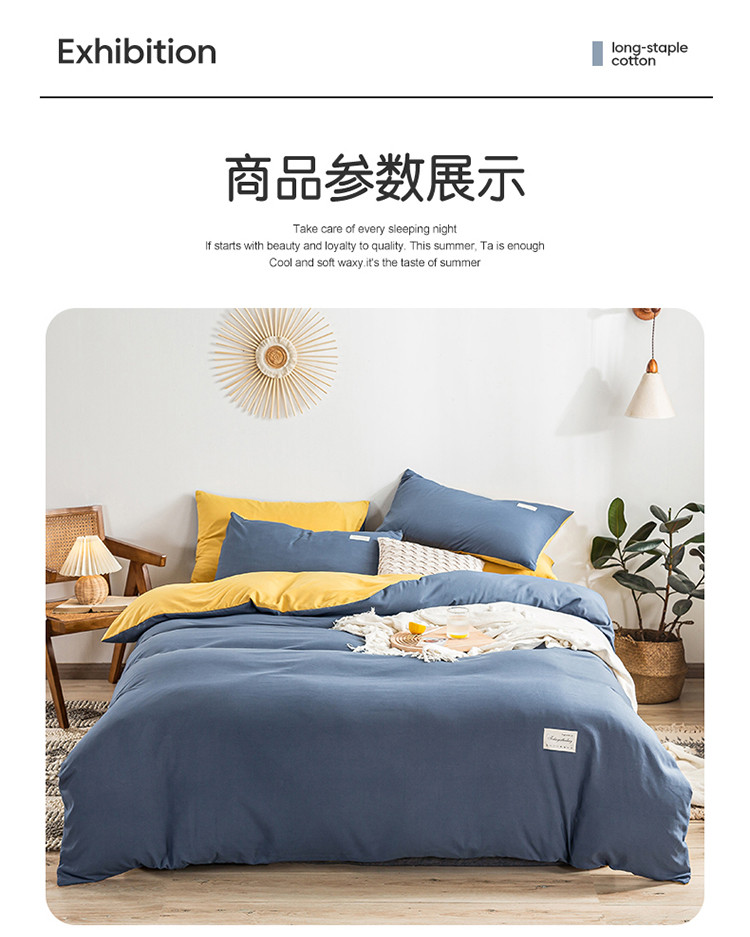当前位置: 91家纺网 > 商品网购 > 床品套件 > 四件套 > 长绒棉四件套 > 漫仙阁 2022新款纯色双拼四件套 牛仔蓝+杏黄