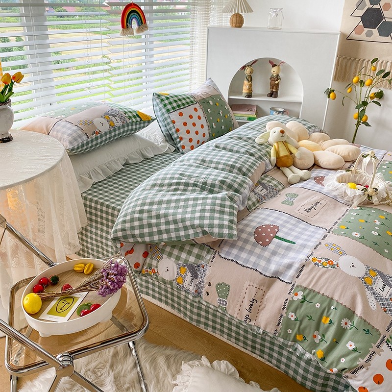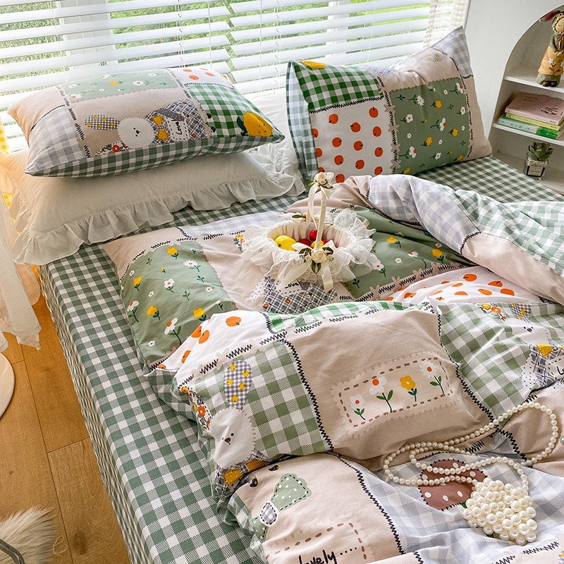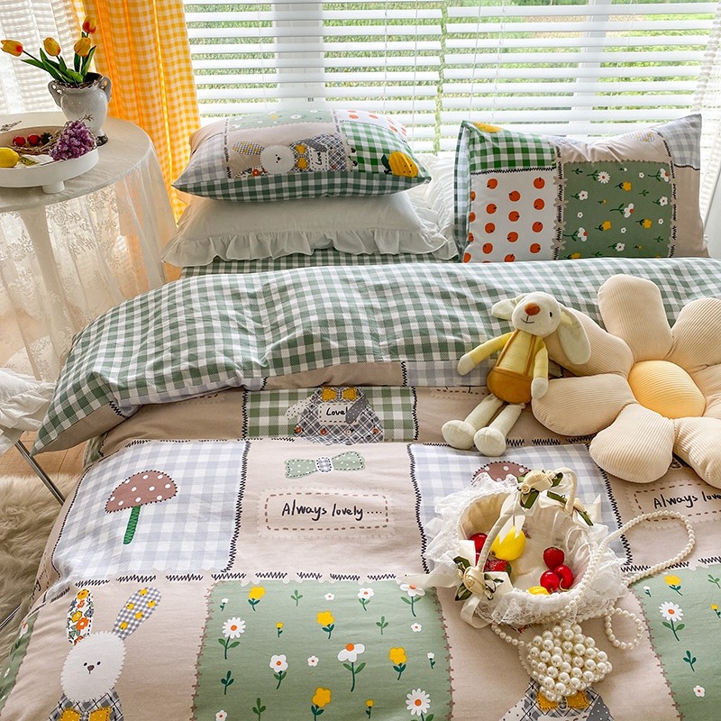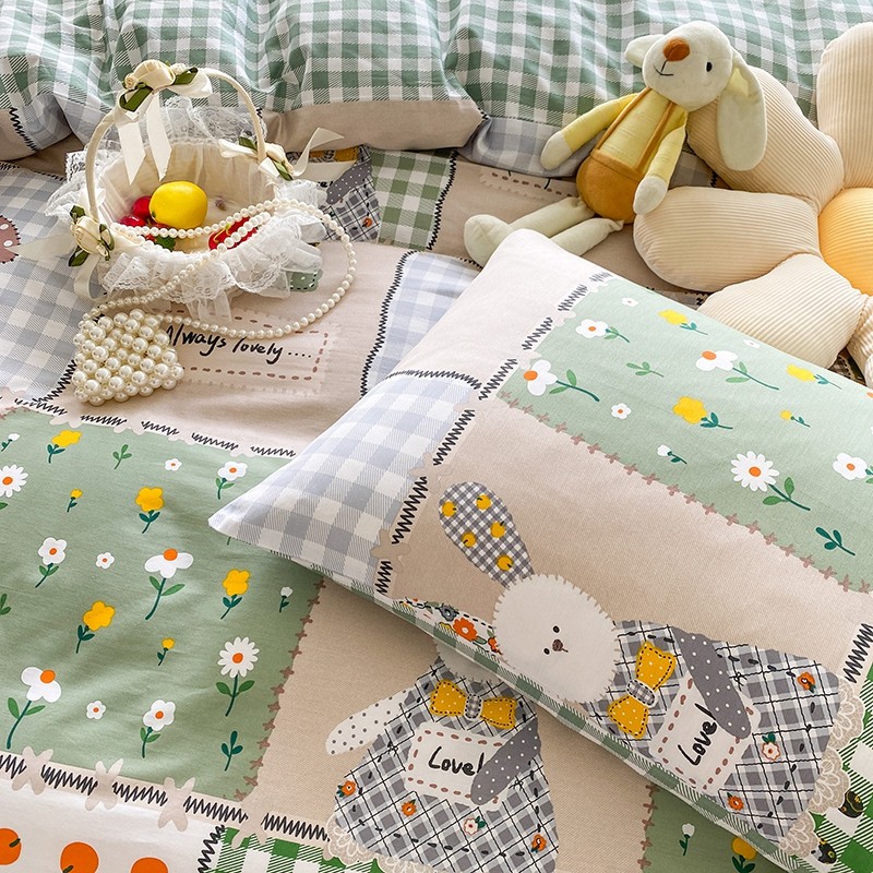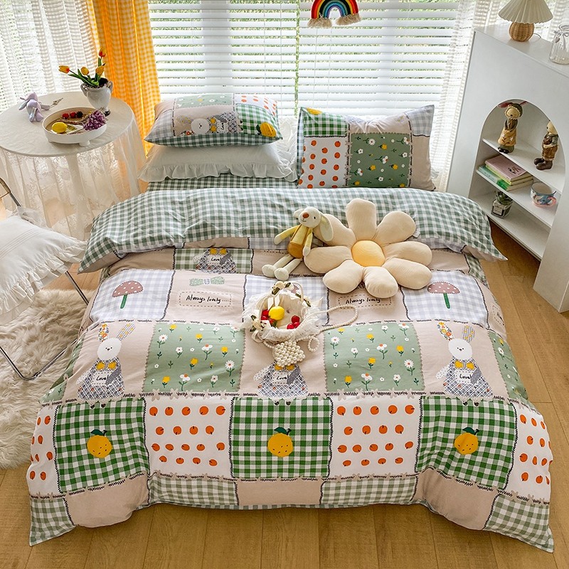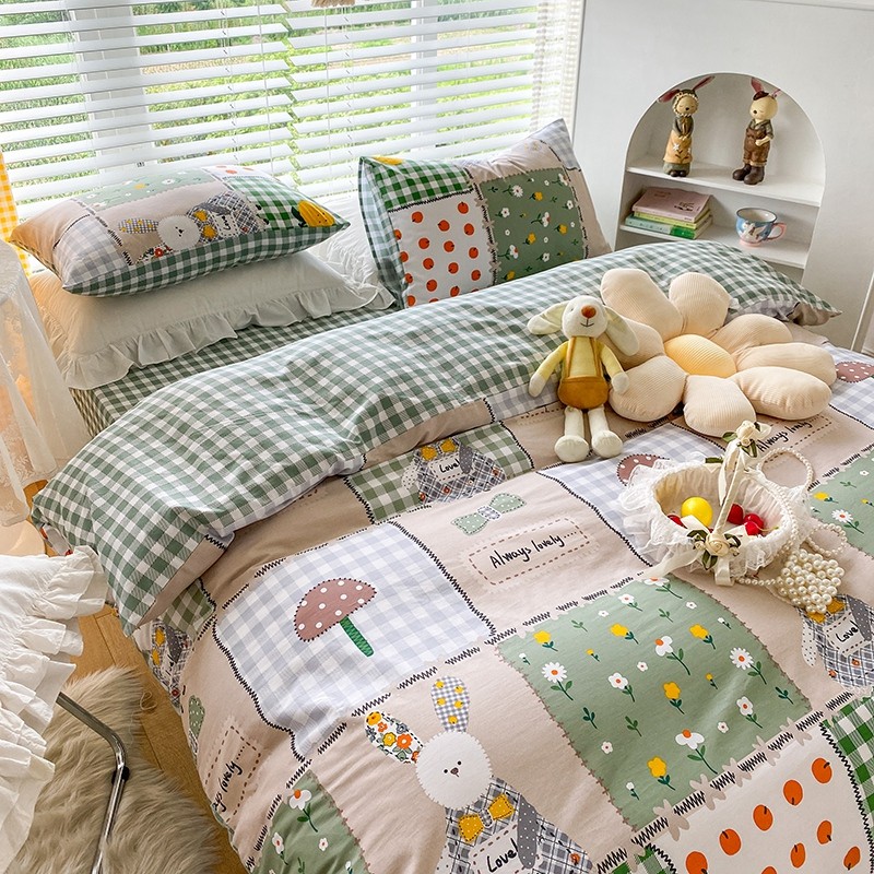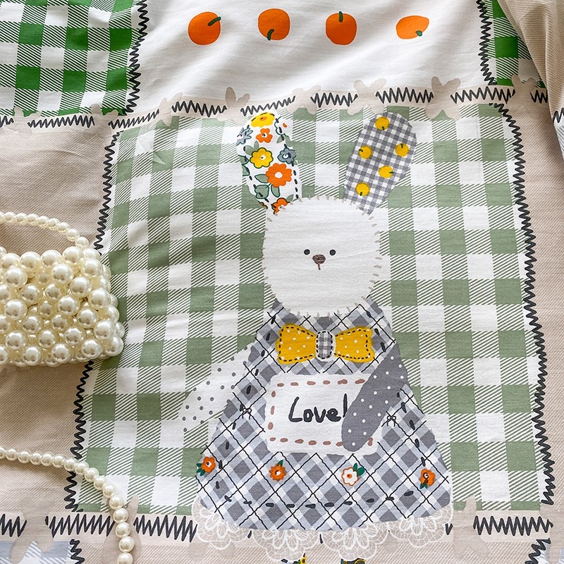 珺柔2021新款13070全棉印花四件套系列六格子兔兔