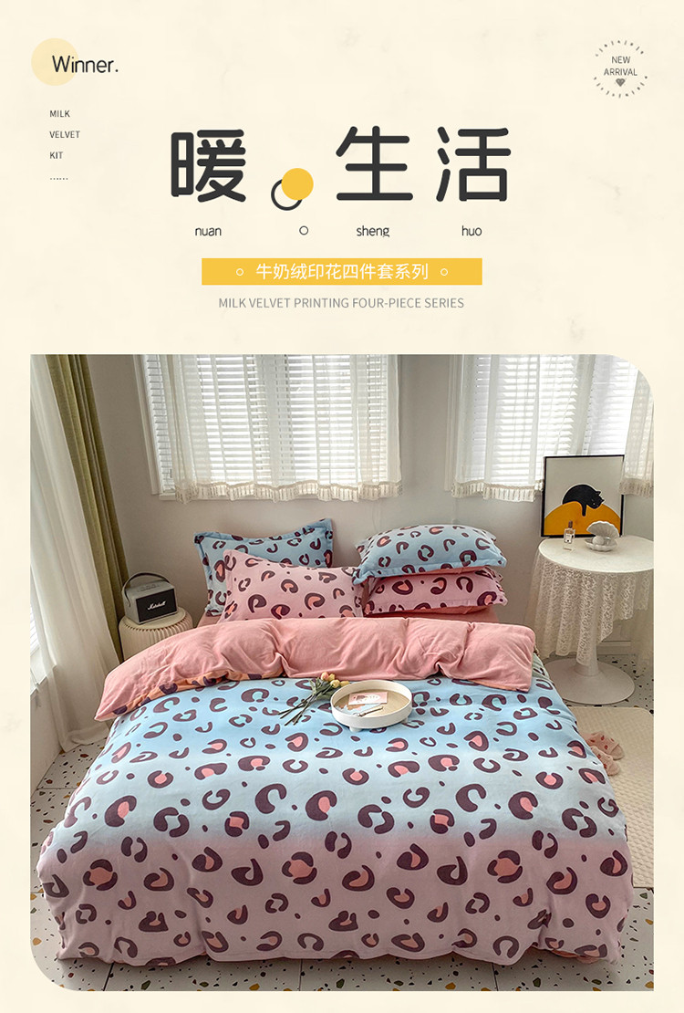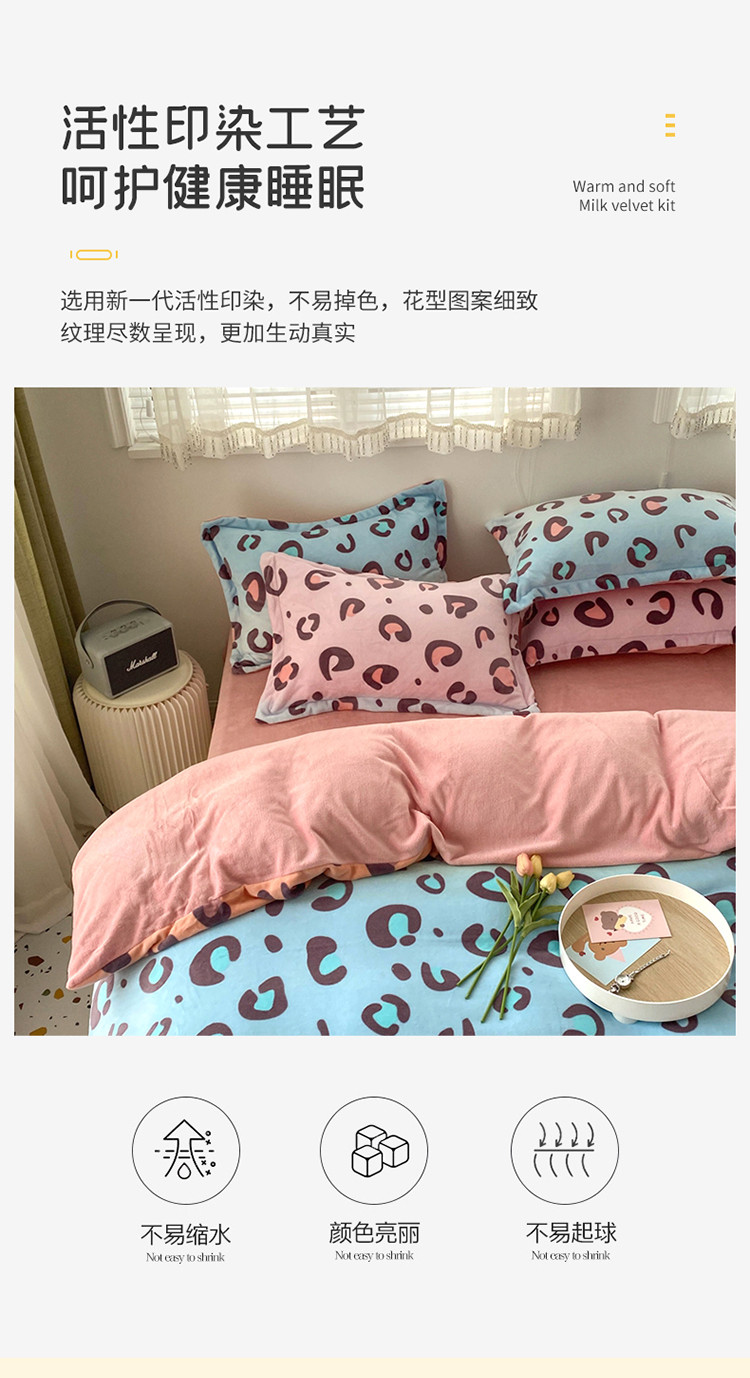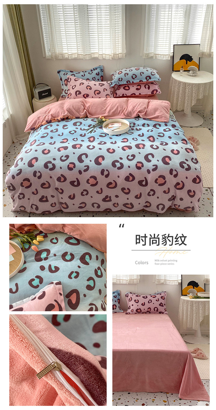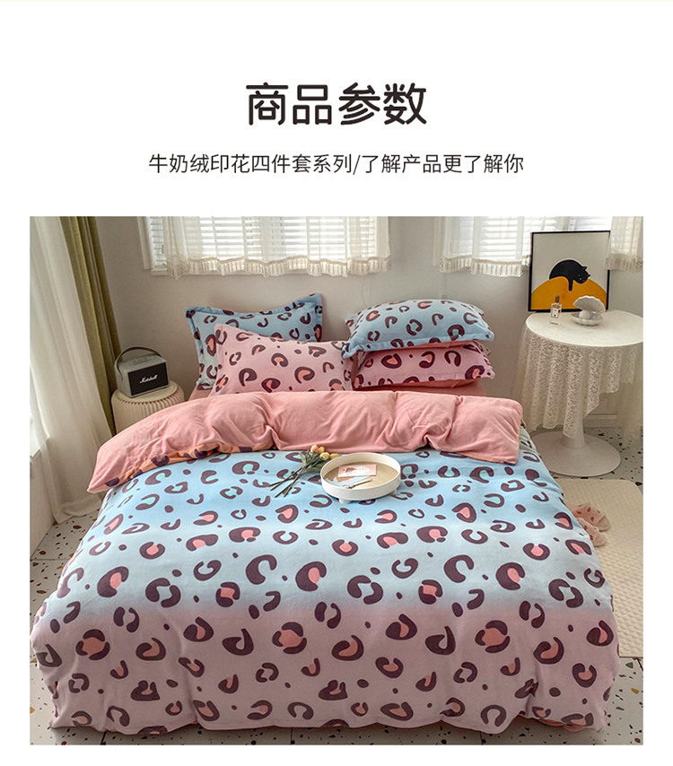 当前位置: 91家纺网 > 商品网购 > 床品套件 > 四件套 > 牛奶绒四件套 > 百寐 2021新款牛奶绒印花四件套 时尚豹纹