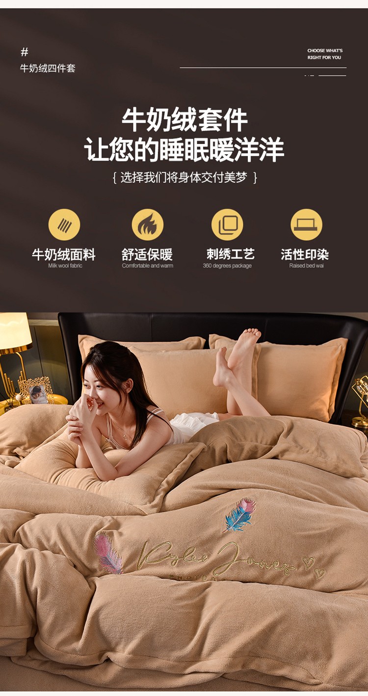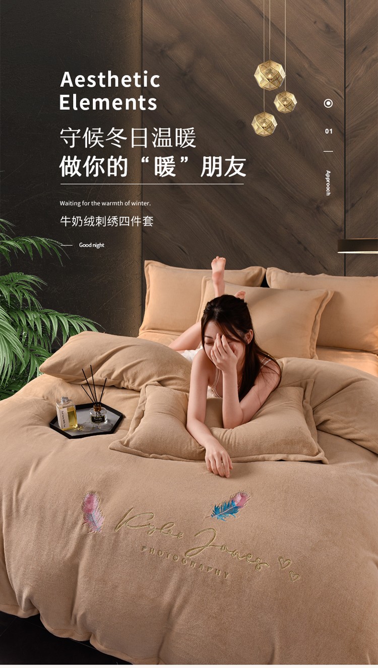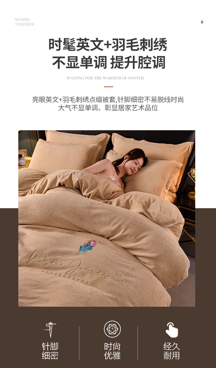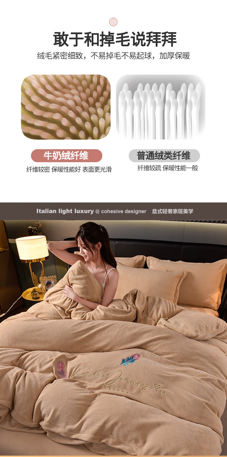 当前位置: 91家纺网 > 商品网购 > 床品套件 > 四件套 > 牛奶绒四件套 > 简爱 2025新款高克重简单款牛奶绒刺绣四件套 羽毛-浅驼