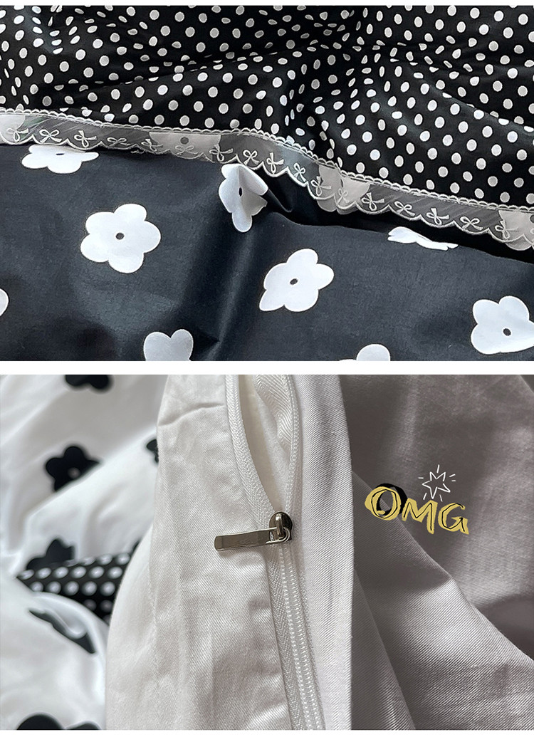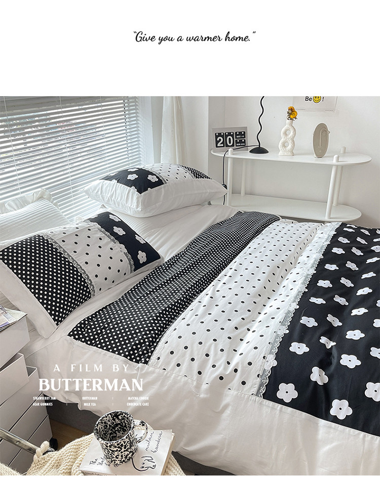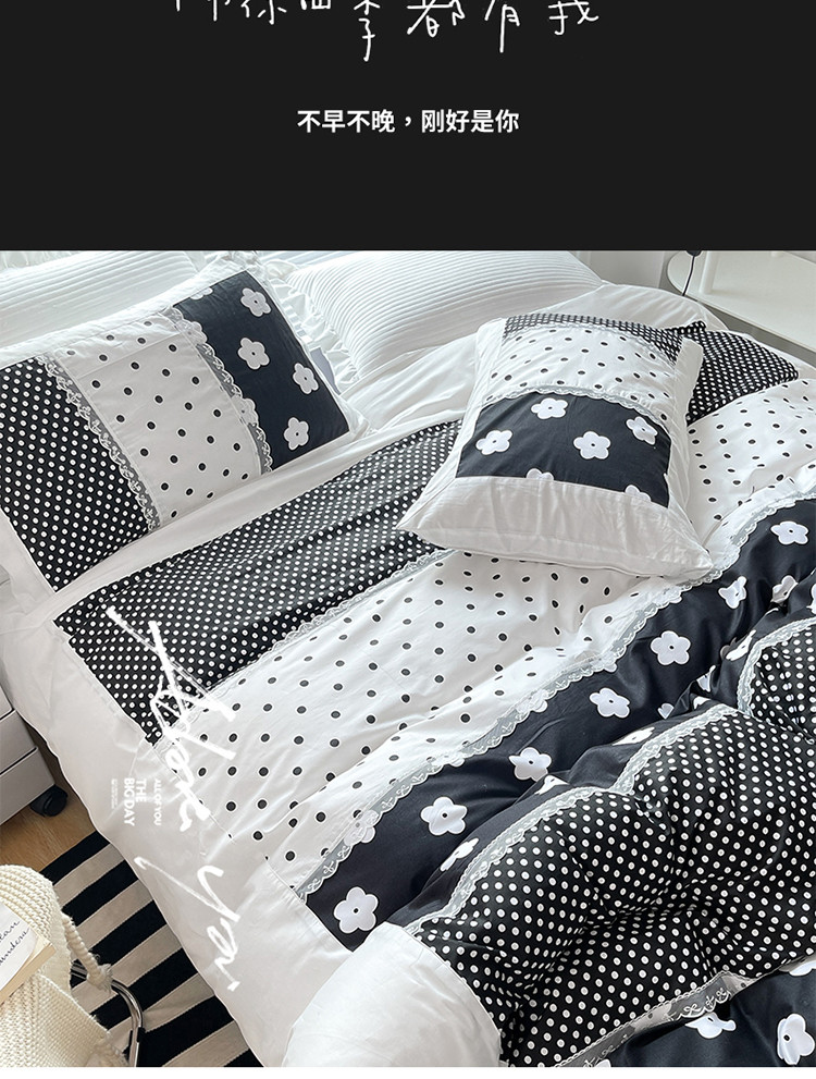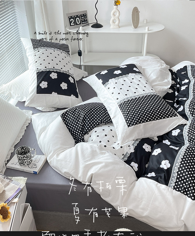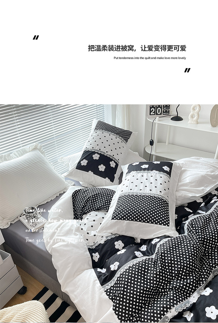 商品名称:婳庭 2021新款黑白拼接款四件套 山茶花-黑