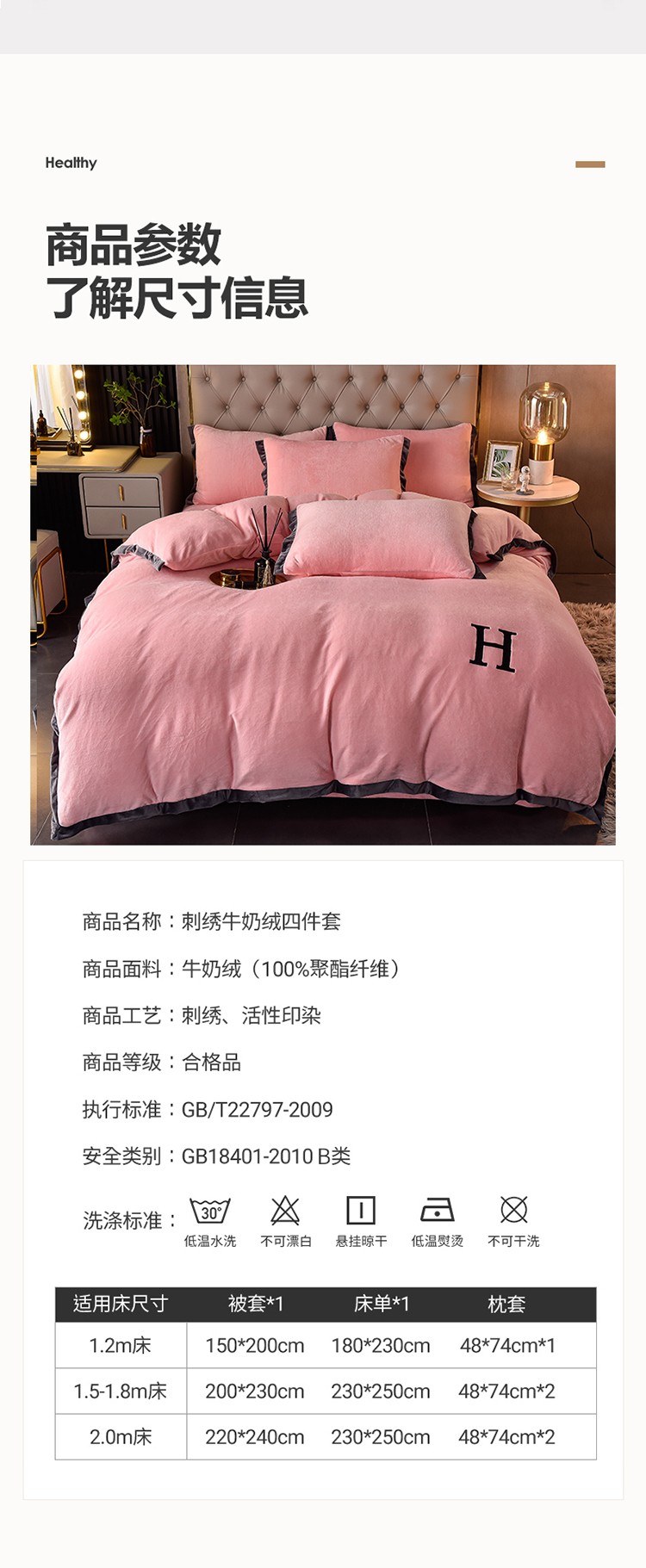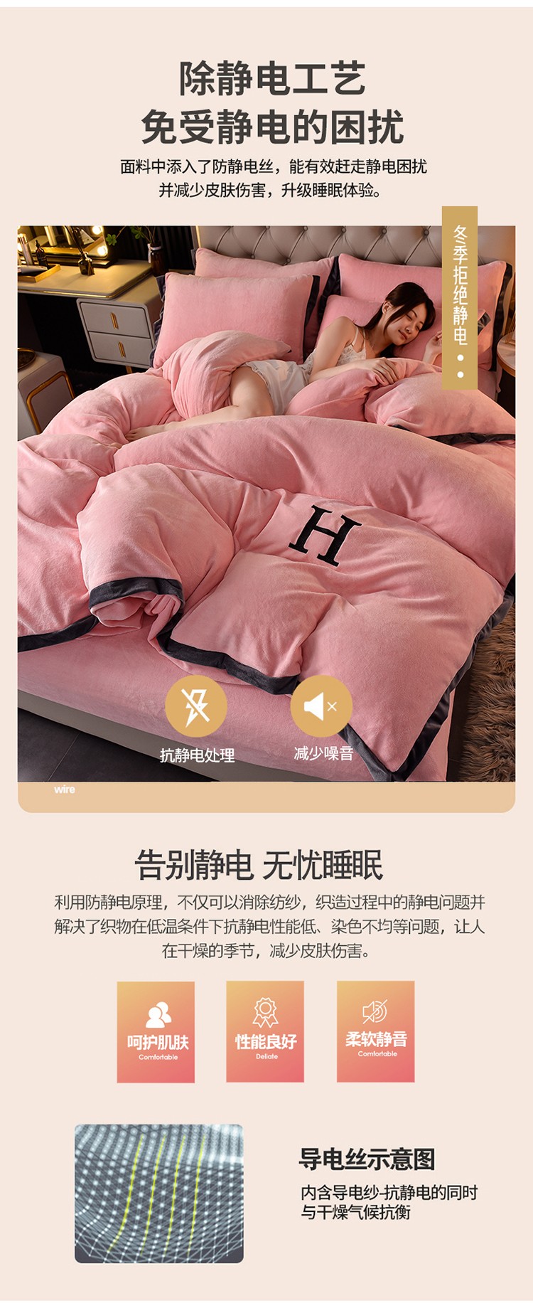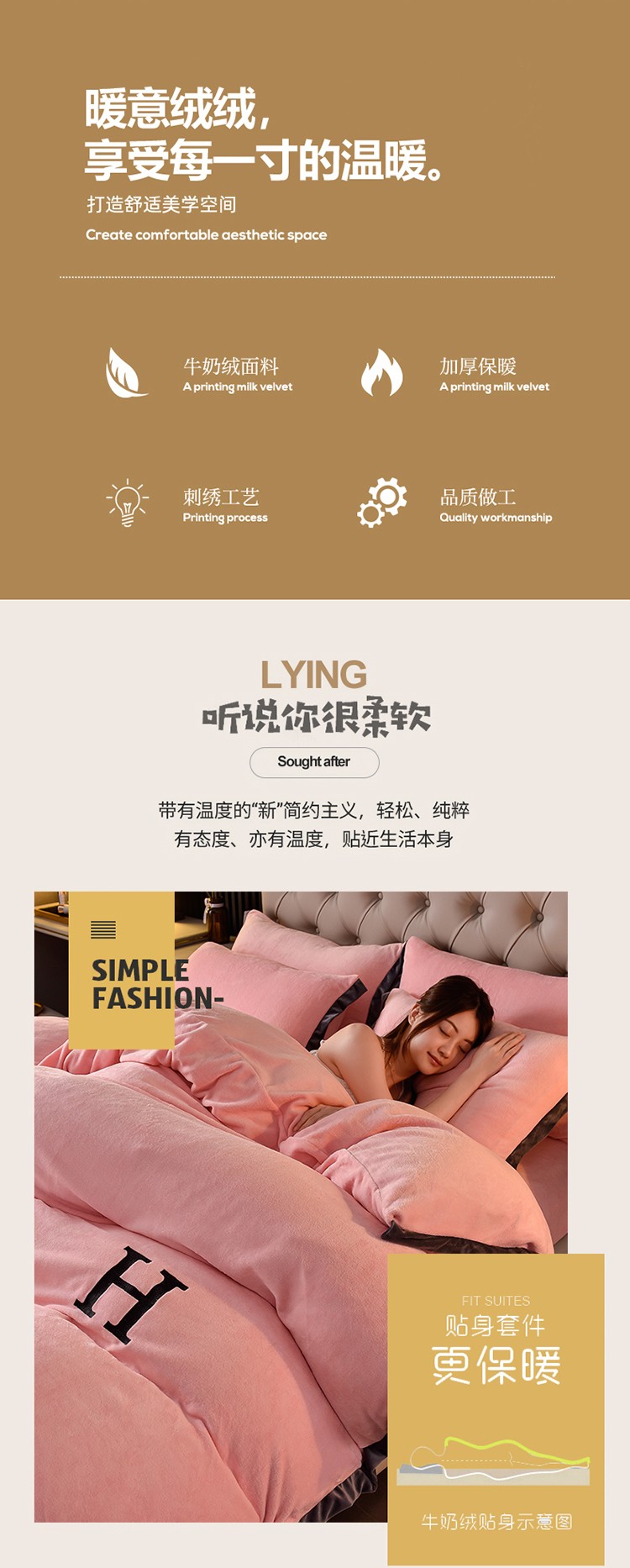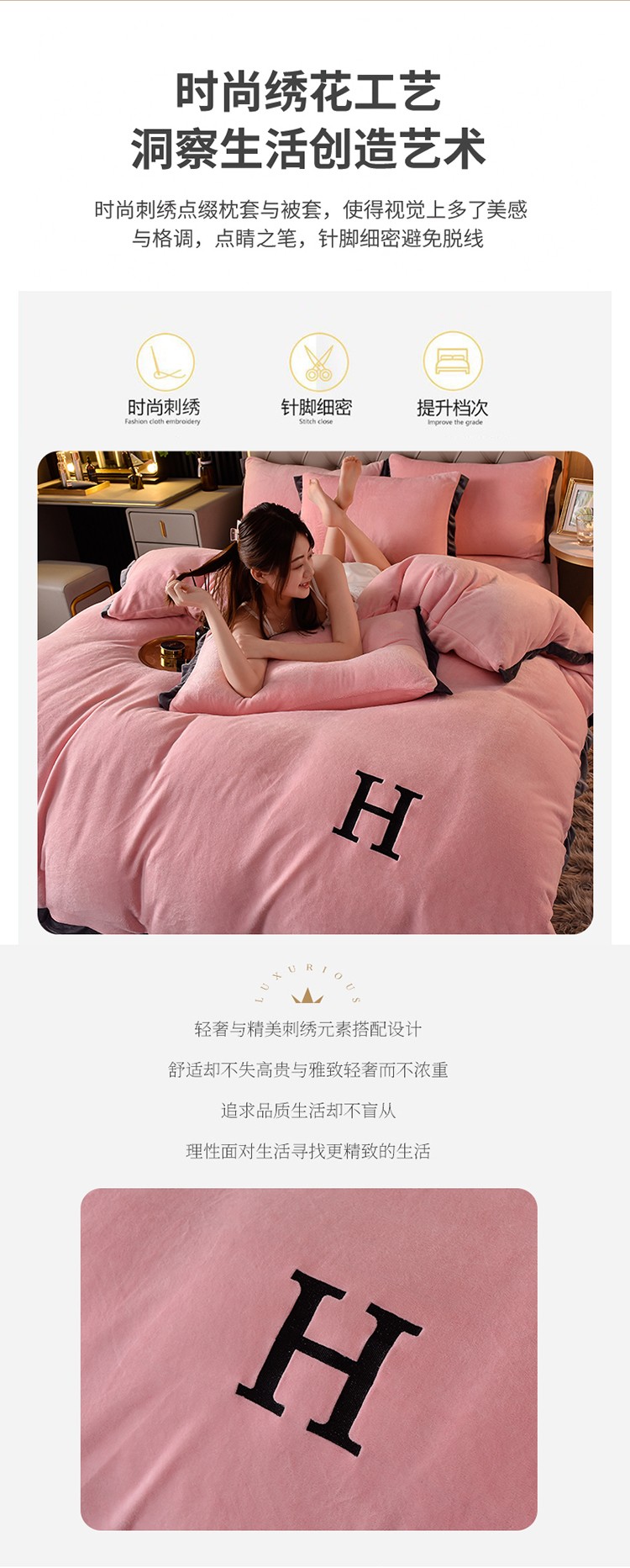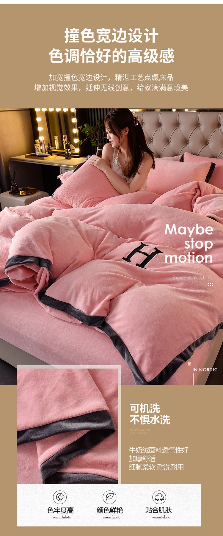 商品名称:简爱家纺2025款高克重牛奶绒拼角工艺四件套 H款-钱玉