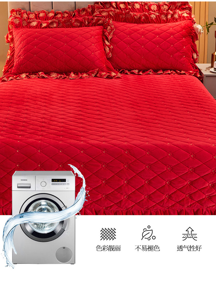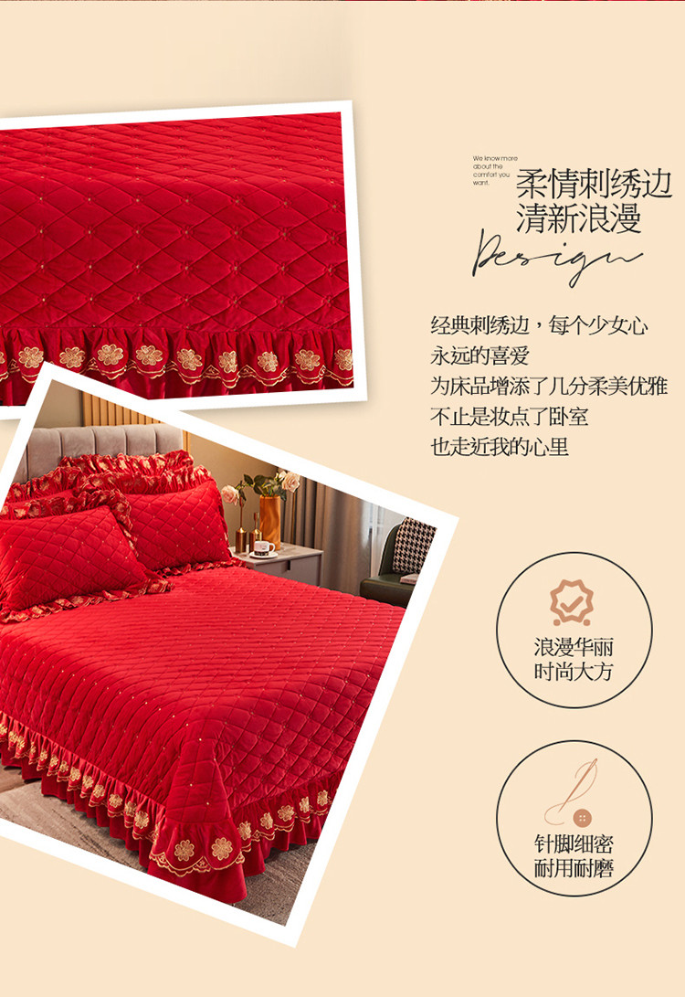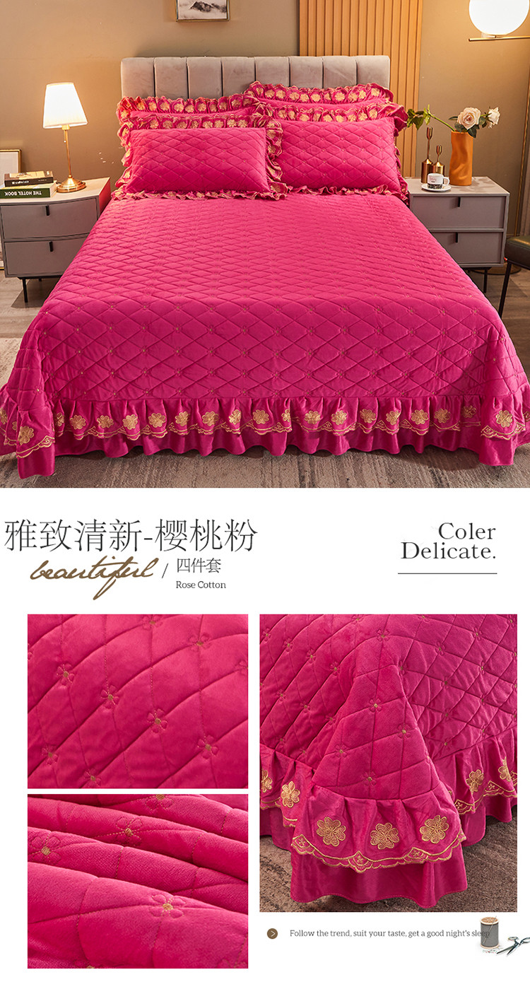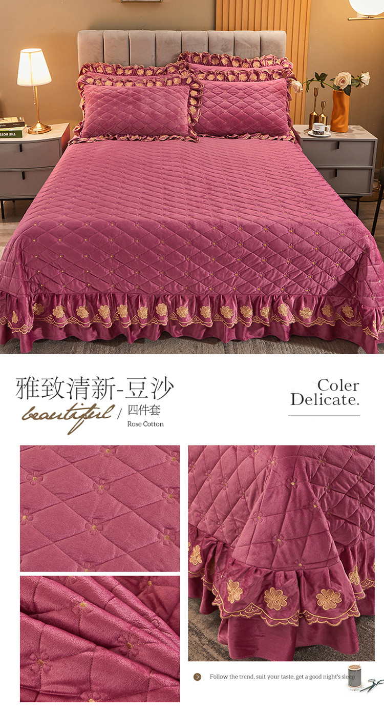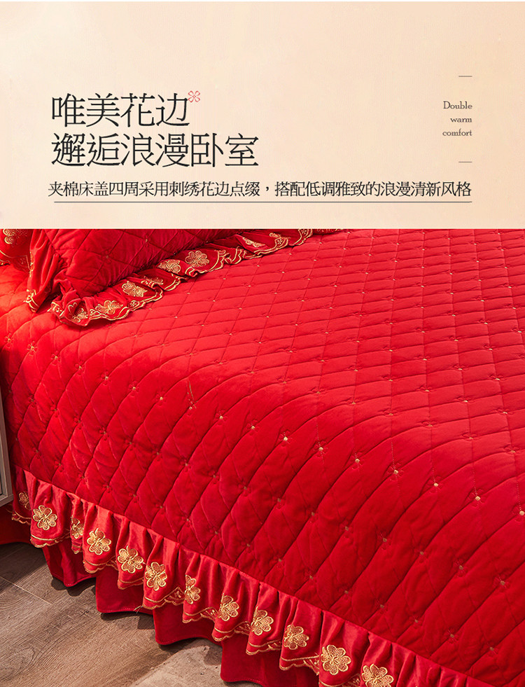 (总)恒爱 2022秋冬水晶绒翩翩花舞夹棉床裙四件套,大红色,豆沙红,橄榄绿,公主粉,桔色,咖啡色,孔雀绿,拉菲红,罗兰紫,玫红色,美人玉,米白色,米驼色,抹茶绿,浅灰色,紫色