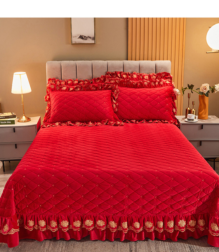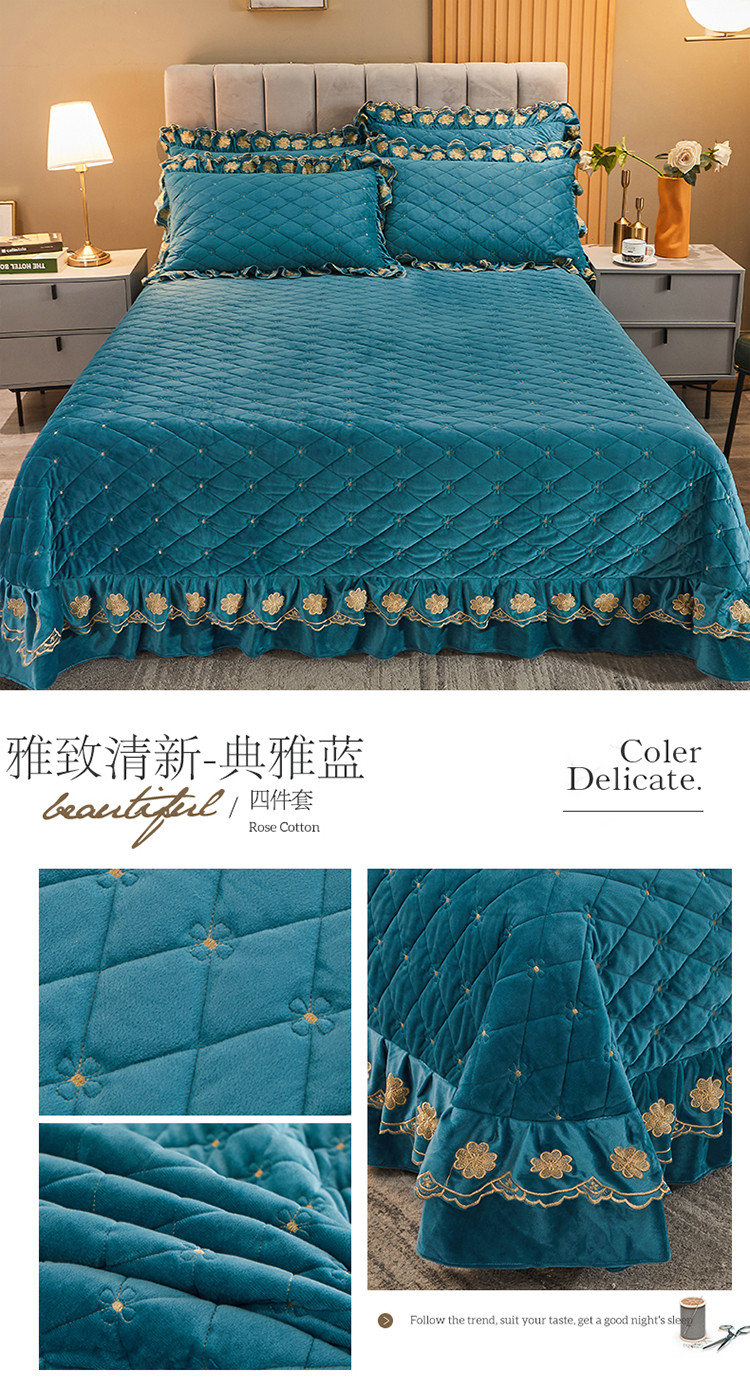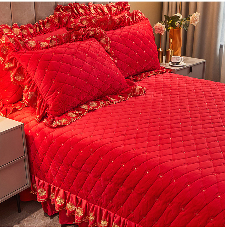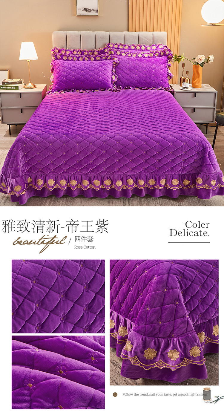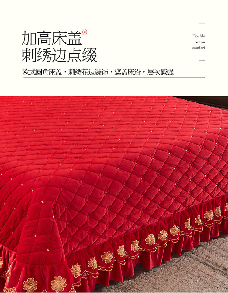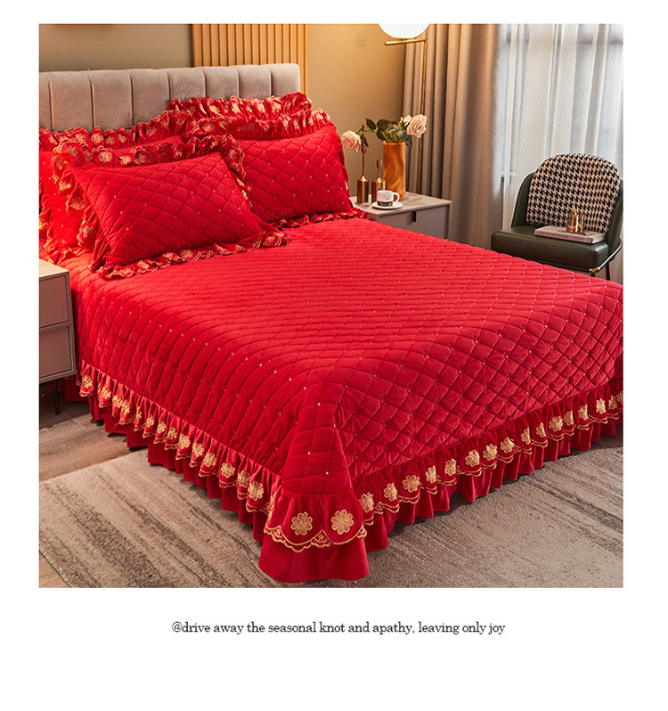 (总)恒爱 2022秋冬水晶绒翩翩花舞夹棉床裙四件套,大红色,豆沙红,橄榄绿,公主粉,桔色,咖啡色,孔雀绿,拉菲红,罗兰紫,玫红色,美人玉,米白色,米驼色,抹茶绿,浅灰色,紫色