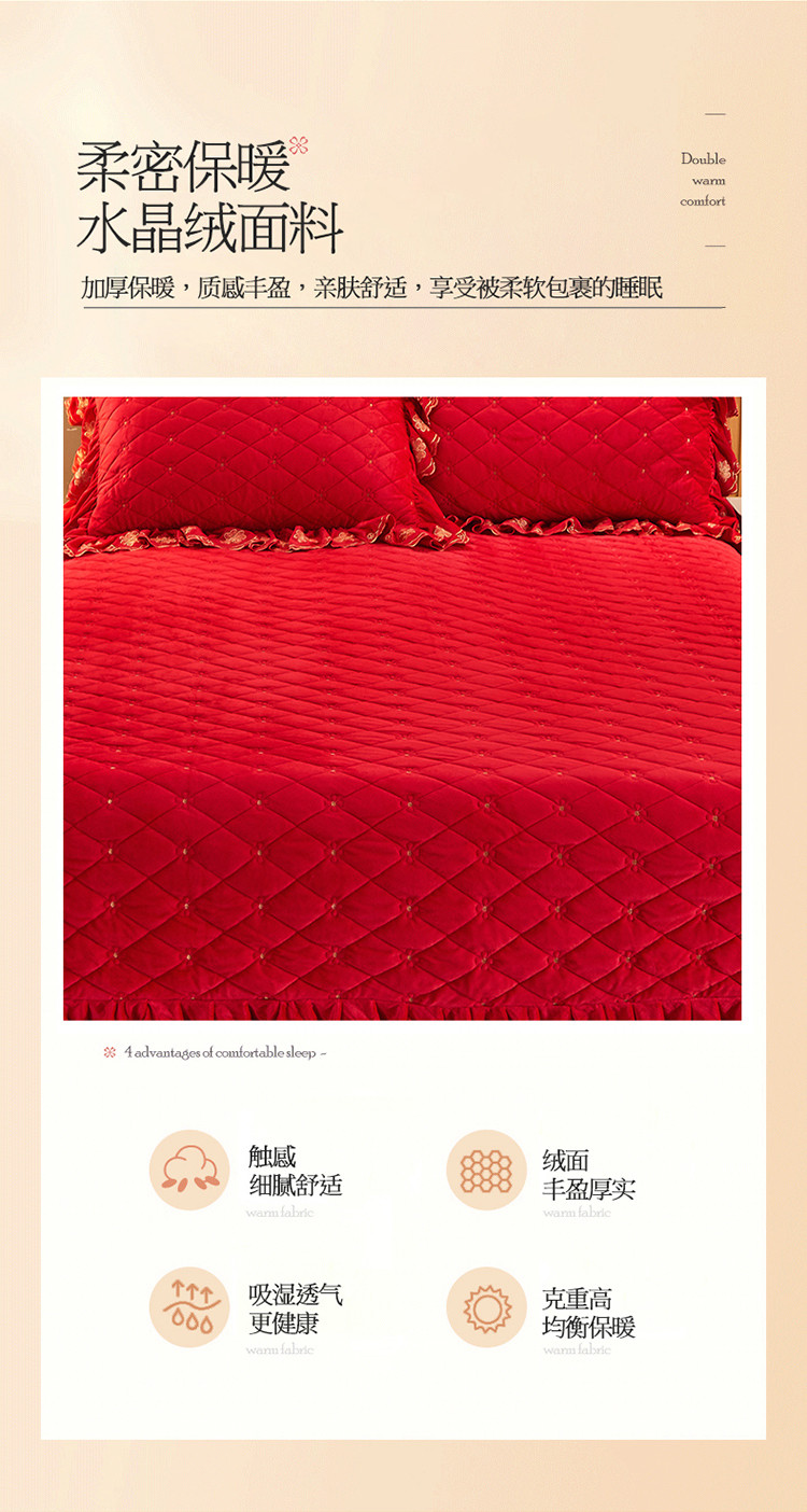 (总)恒爱 2022秋冬水晶绒翩翩花舞夹棉单床裙,大红色,豆沙红,橄榄绿,公主粉,桔色,咖啡色,孔雀绿,拉菲红,罗兰紫,玫红色,美人玉,米白色,米驼色,抹茶绿,浅灰色,紫色