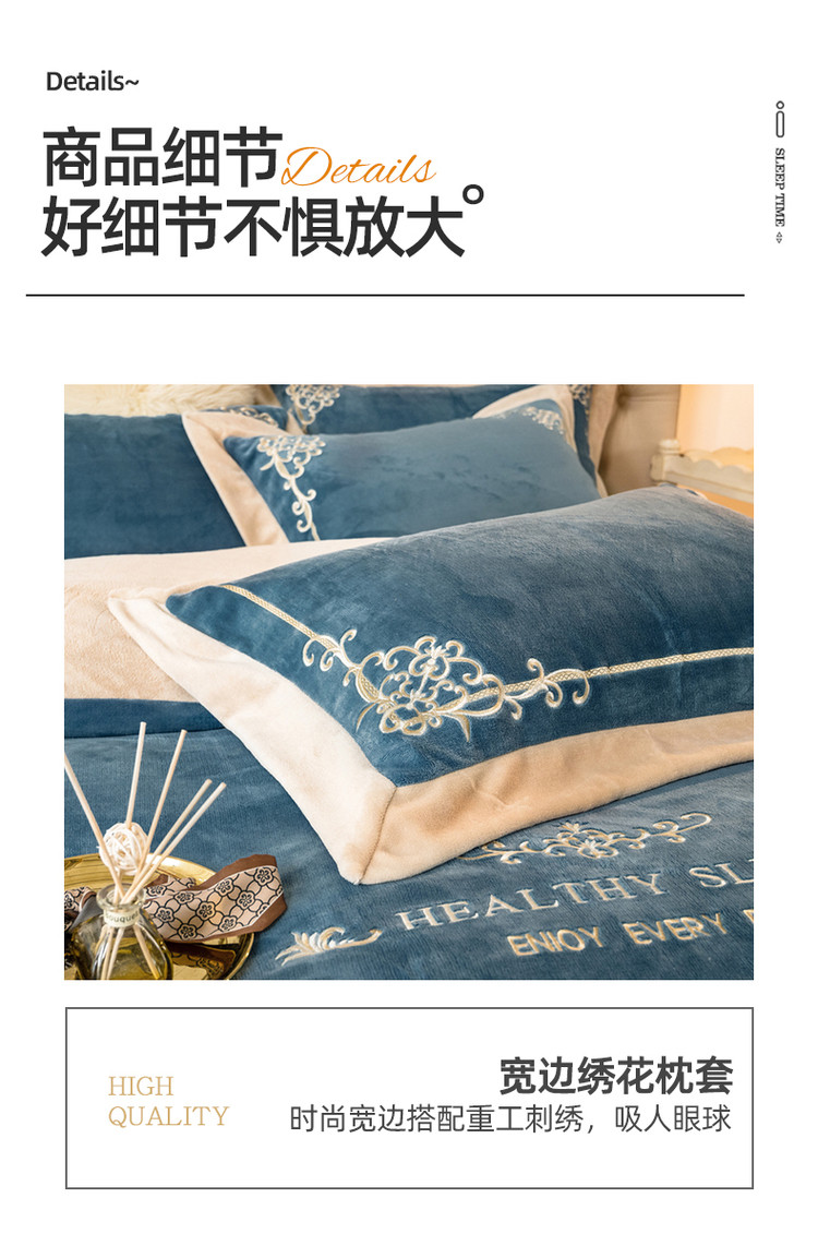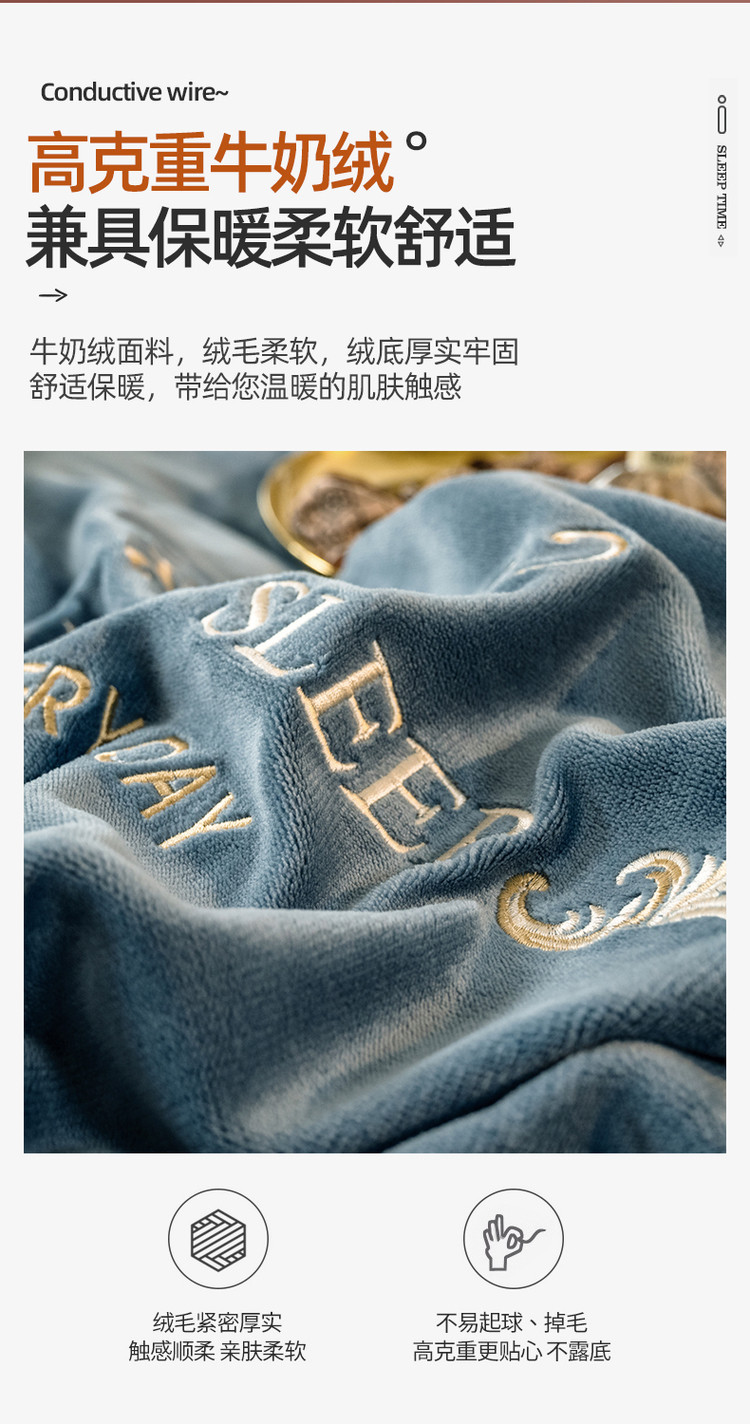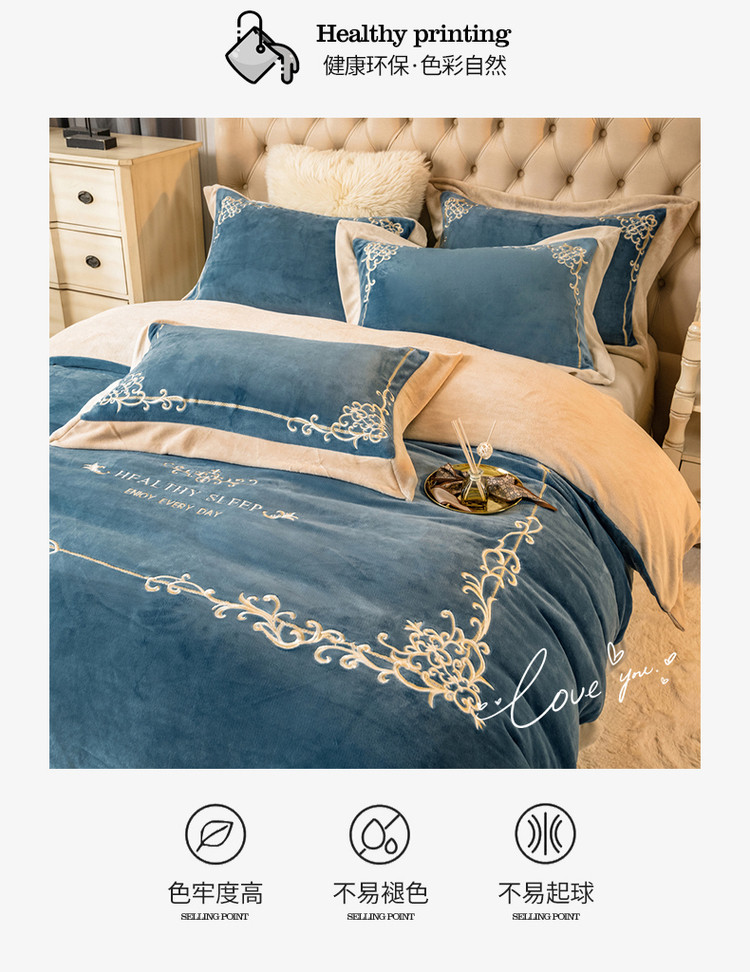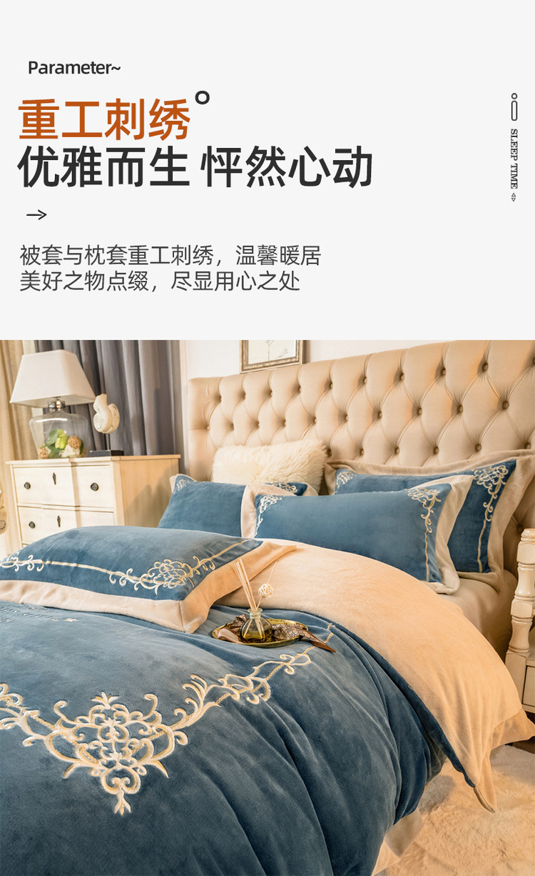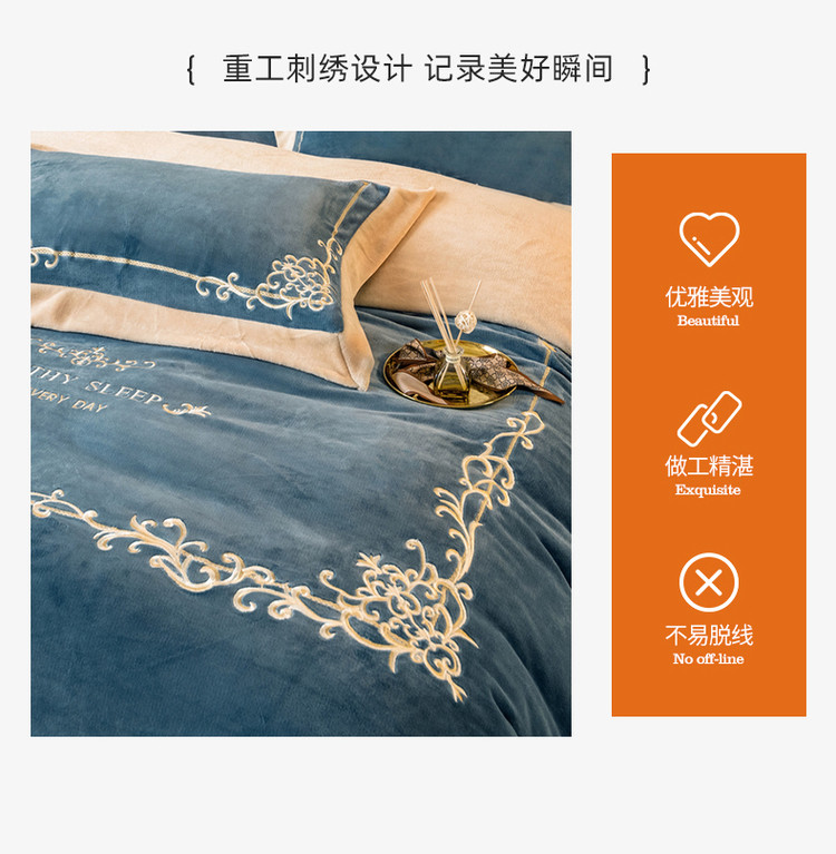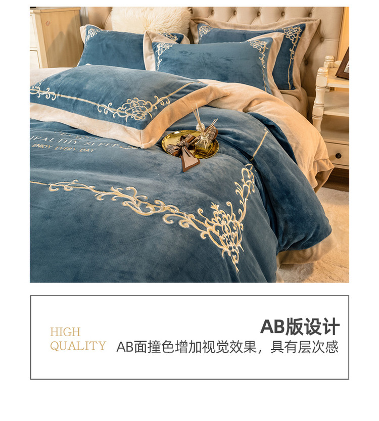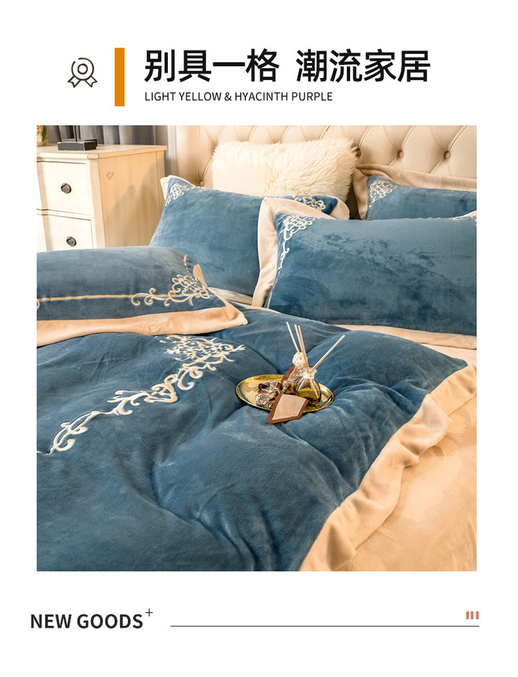 露梦家纺 2025新款加厚保暖牛奶绒刺绣款四件套-轻羽(风格二) 轻羽-秋波蓝,轻羽-秋波蓝