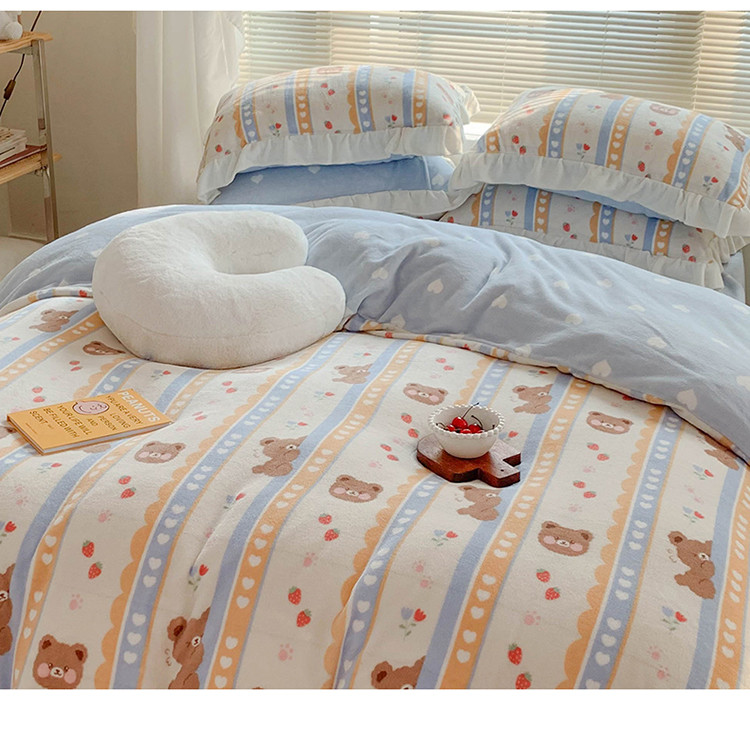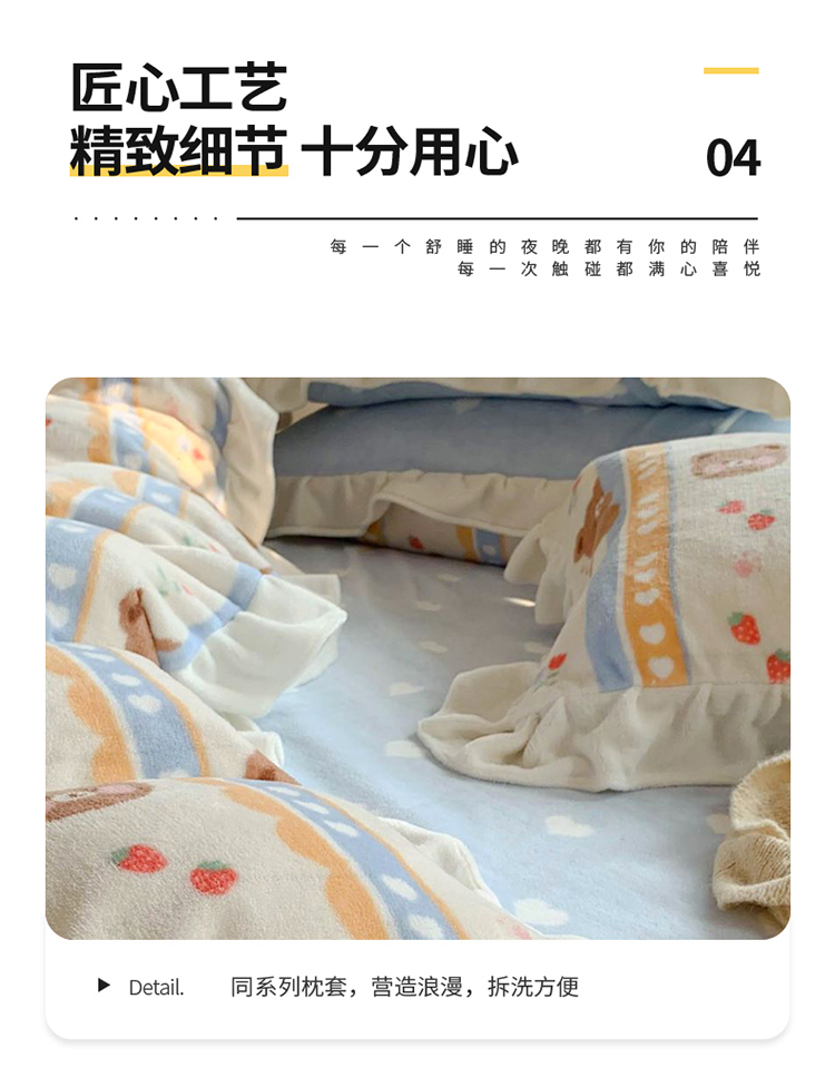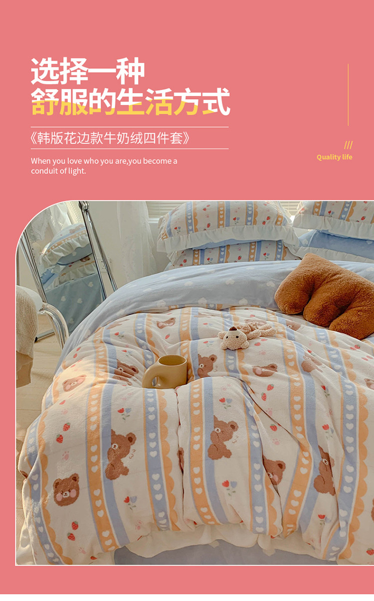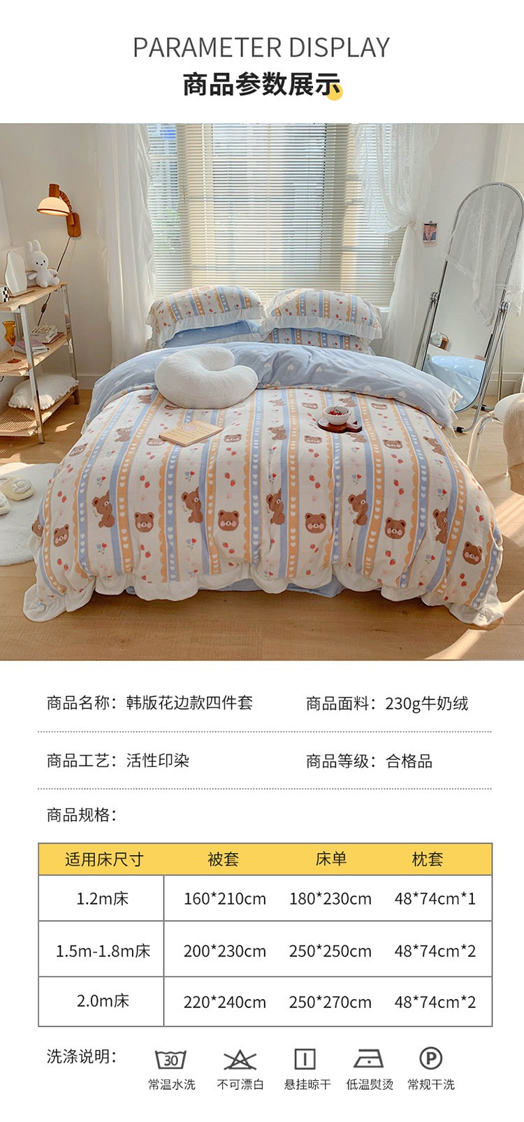 (总)眠屿家纺2021新款韩版ins牛奶绒花边款四件套