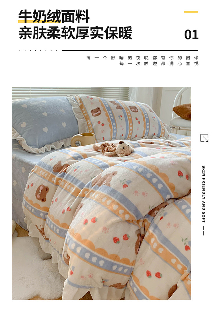 (总)眠屿家纺 2025新款加厚牛奶绒贴布绣四件套,棒球熊,动物朋友,欢乐音乐